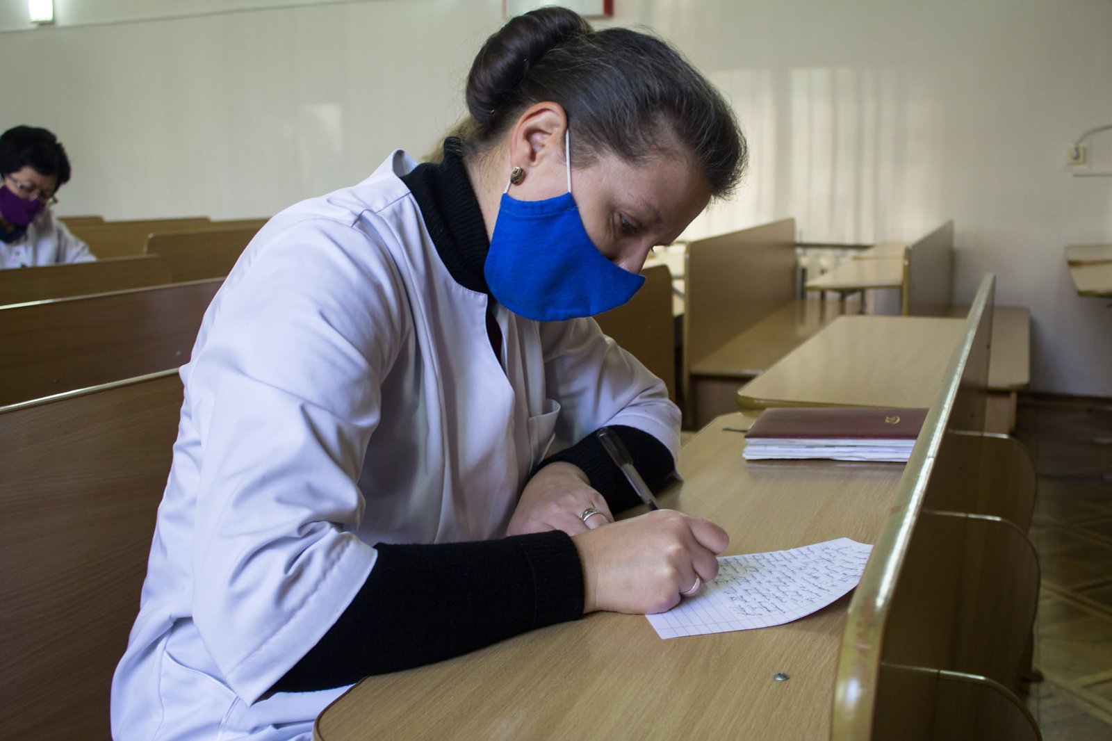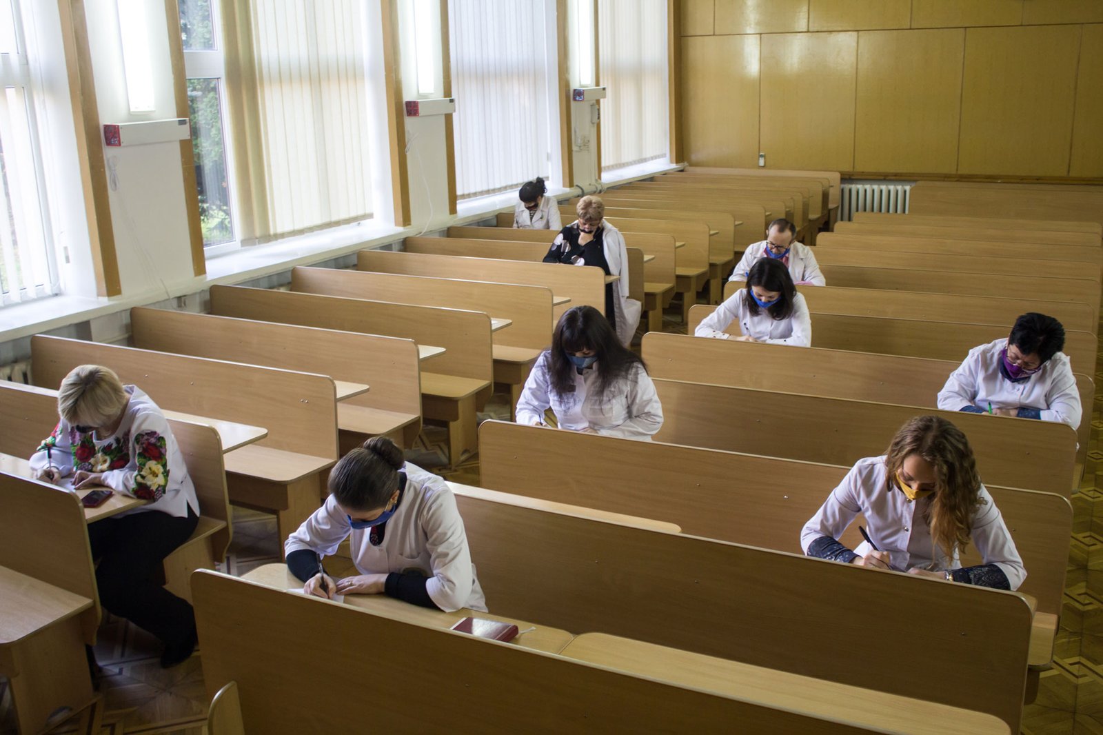 Традиційно до написання диктанту долучаються і представники Івано-Франківського базового медичного коледжу (Івано-Франківського медичного фахового коледжу). Однак пандемія коронавірусу внесла корективи: через карантинні обмеження студенти і окремі викладачі писали диктант дистанційно на платформі Zoom, а представники адміністрації, працівники і дехто з викладачів – у коледжі (звичайно, з дотриманням санітарно-епідемічних вимог і соціальної дистанції).