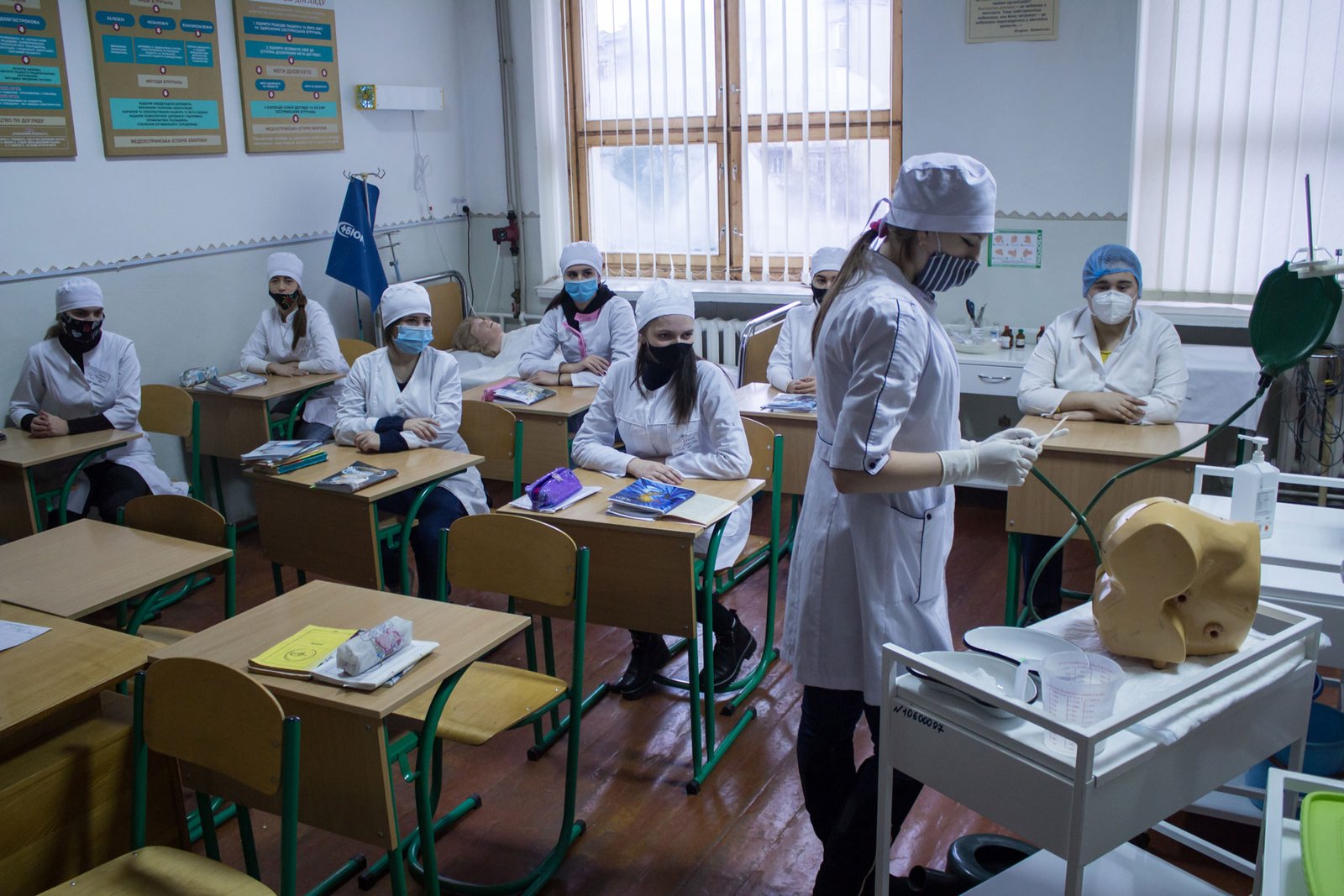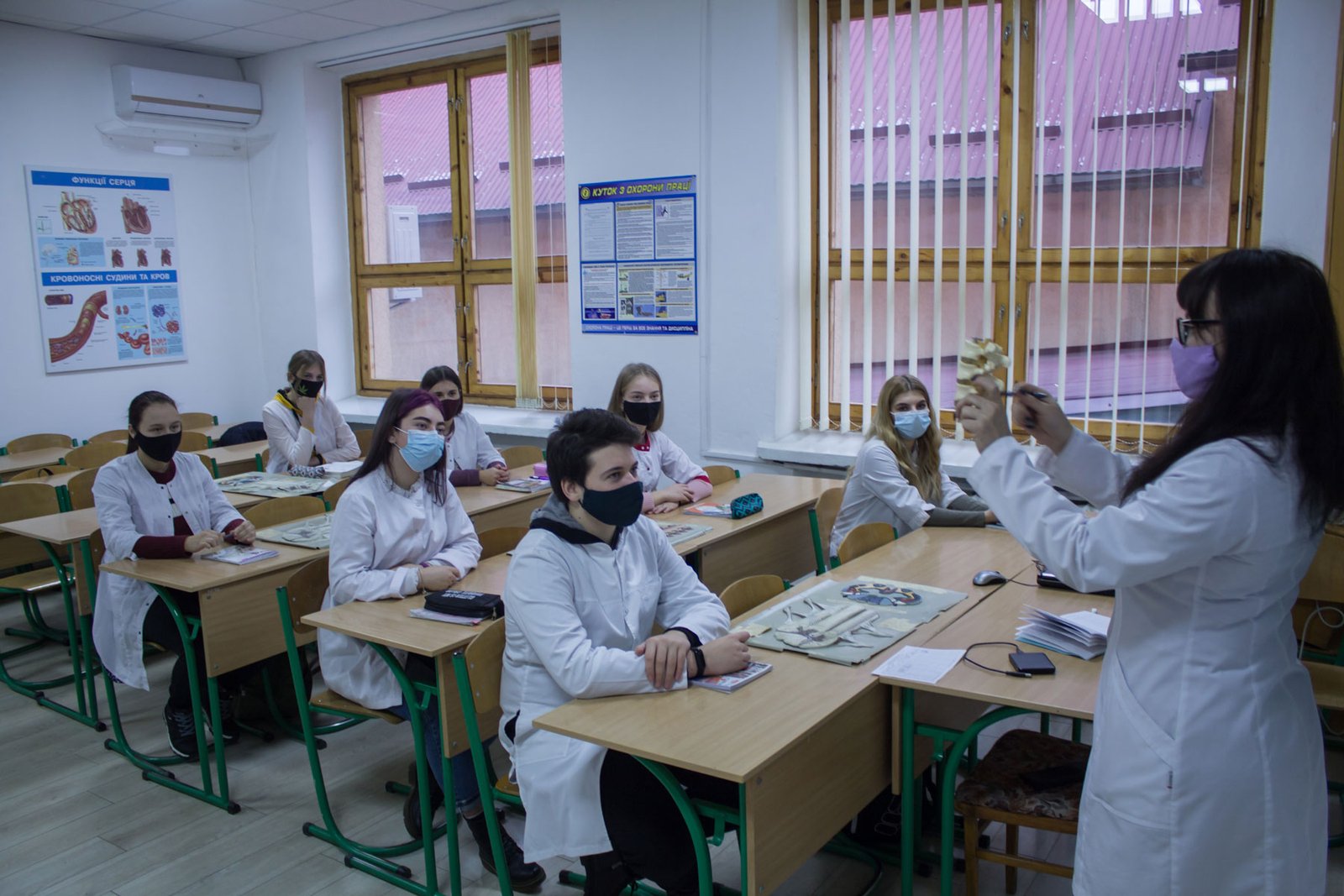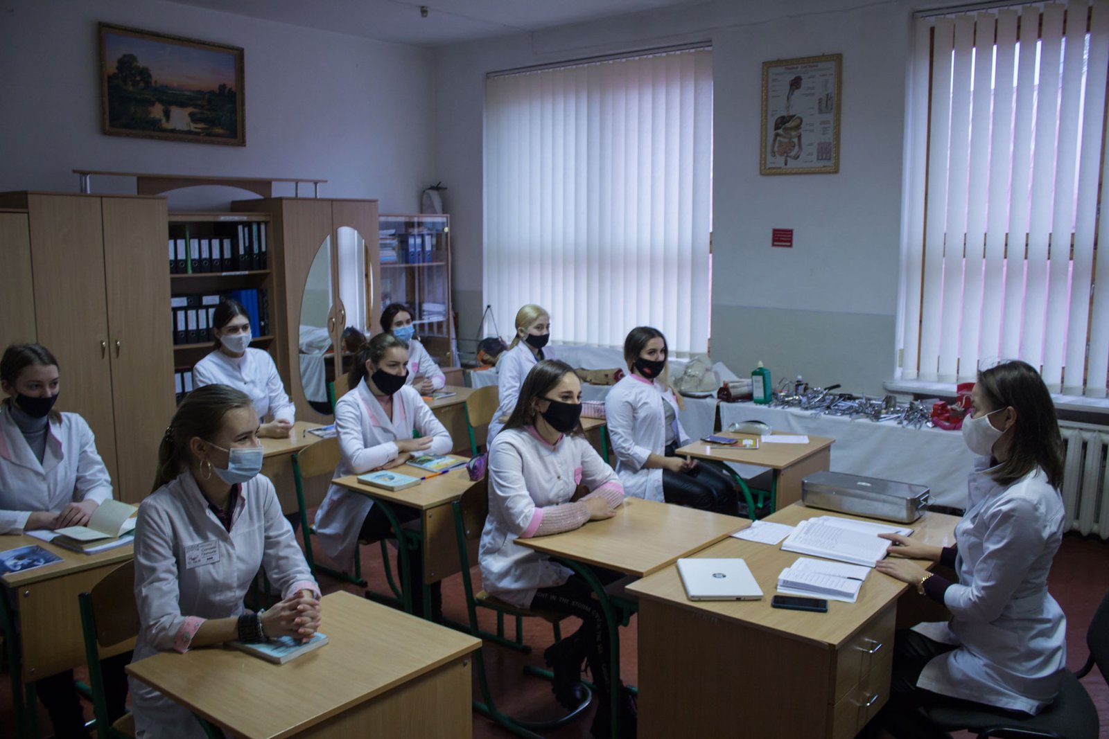 Першими з дистанційного навчання до аудиторного повернулися студенти IV курсу спеціалізацій «Лікувальна справа» і «Акушерська справа», які з 30 листопада прийшли на заняття в коледж, з 1 грудня до них долучилися студенти спеціалізації «Сестринська справа».