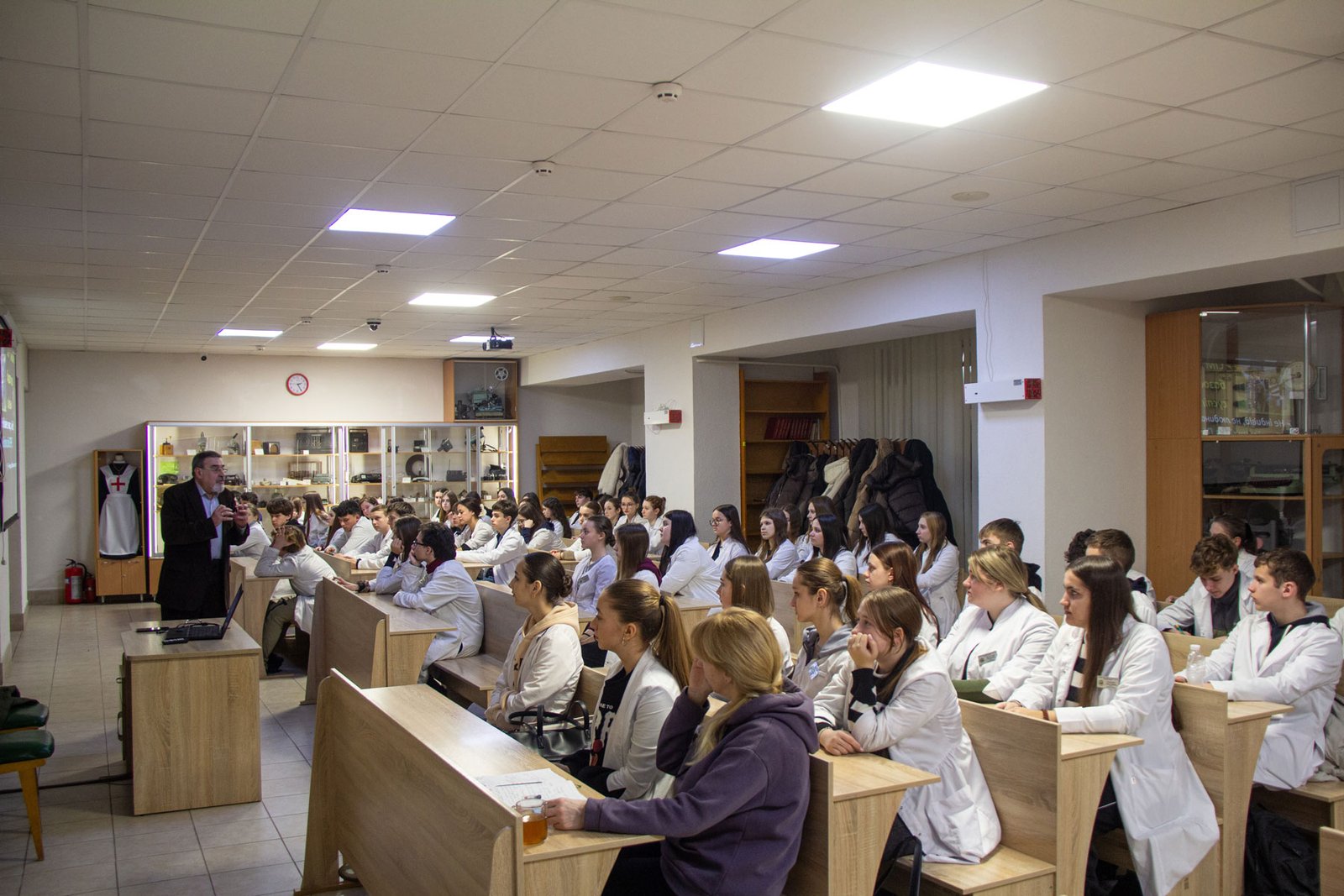 Протягом тижня під час виховних годин він спілкувався зі здобувачами освіти груп І-5 ОПП Лікувальна справа (куратор Олександр КРАВЕЦЬ), І-7 ОПП Акушерська справа (кураторка Вітослава ПИЧІЛЬ), І-1 ОПП Лікувальна справа (куратор Іван ЗЕМАН) і І-8 ОПП Сестринська справа (кураторка Леся МОСОРИН).