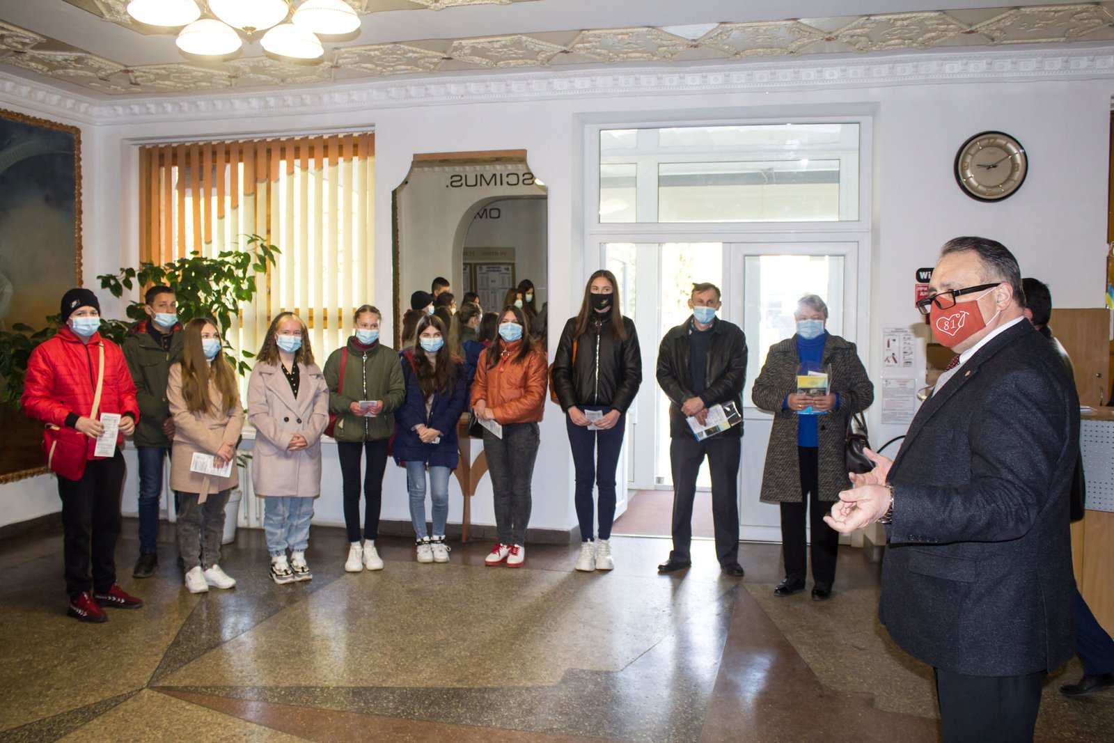 Одразу в холі їх зустріли директор ІФМФК Володимир Васильович Стасюк та заступниця директора з виховної роботи Наталія Валеріївна Мальованчук.