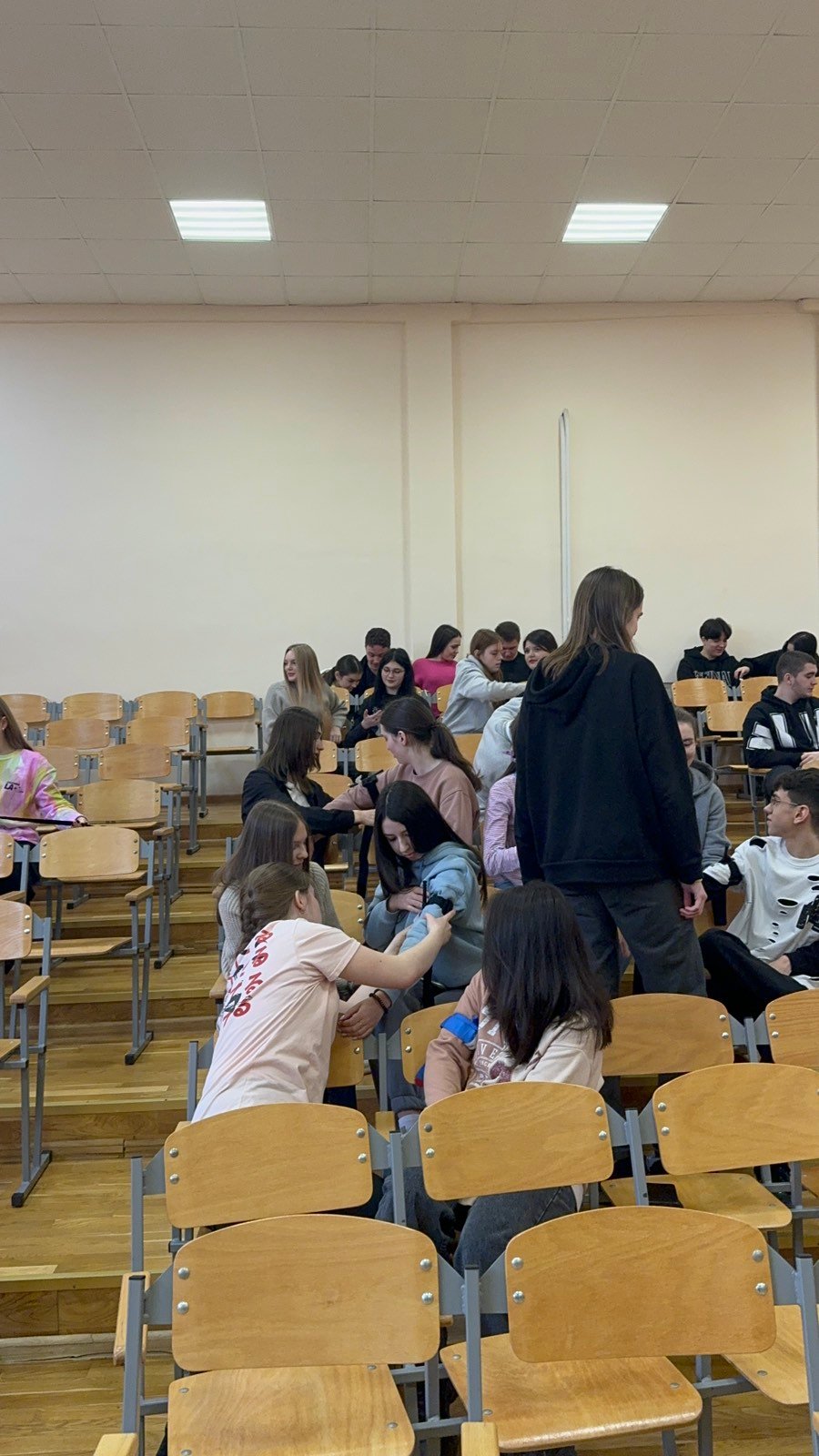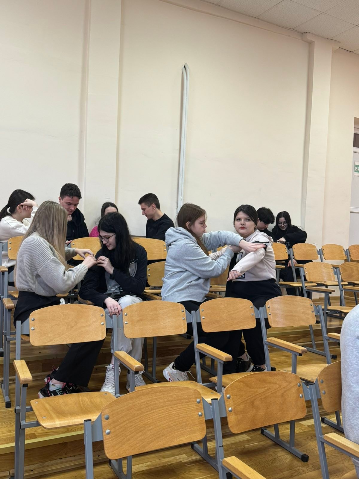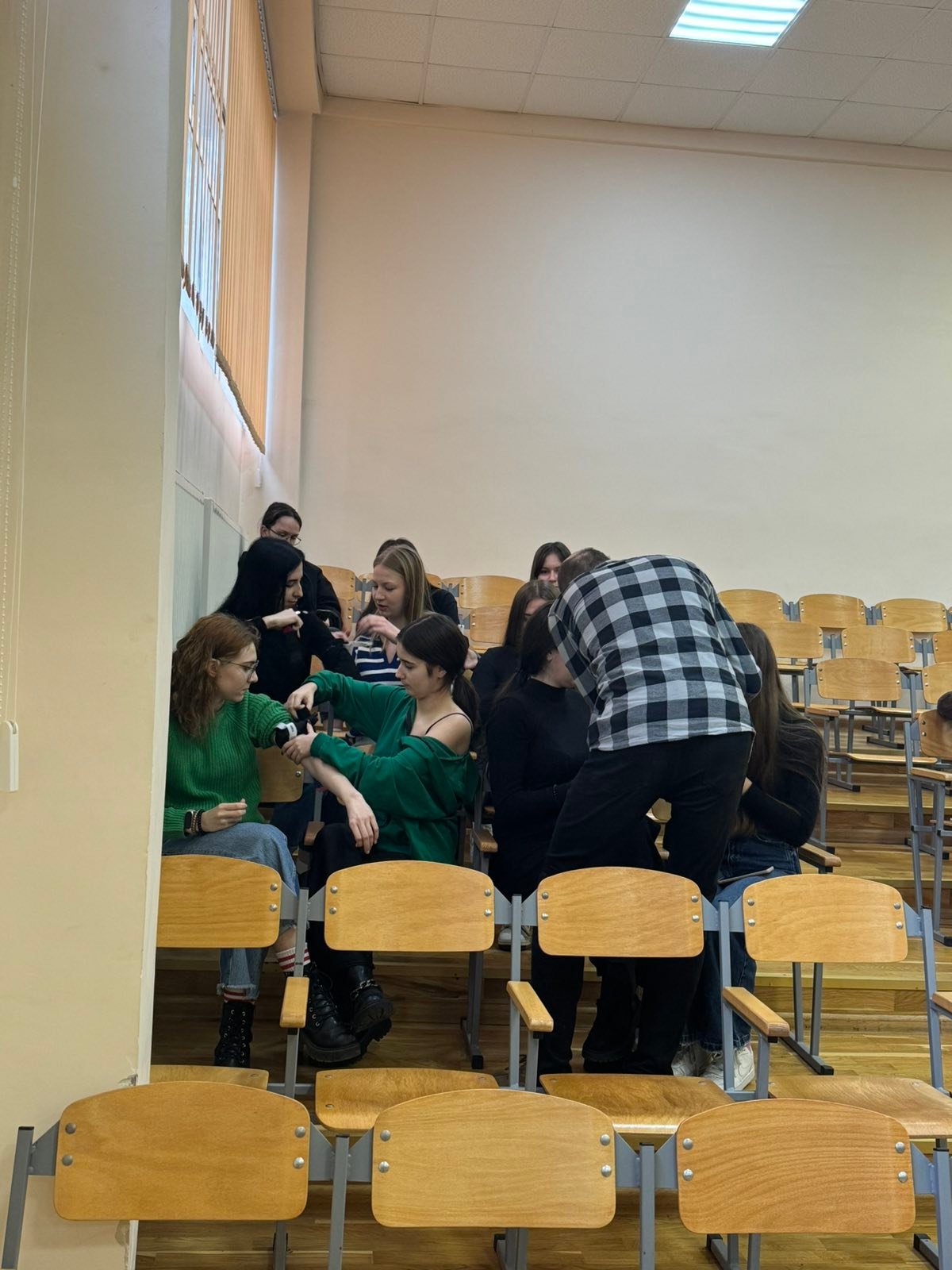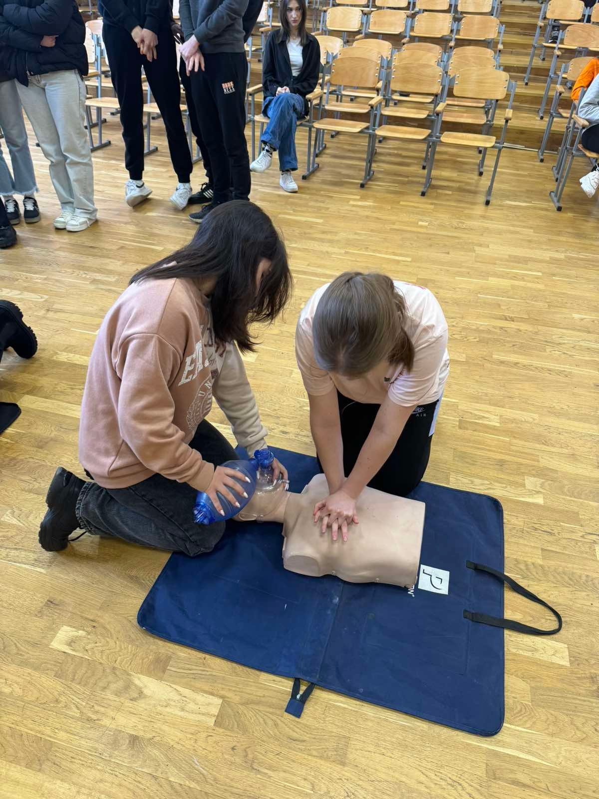 Перше заняття в ліцеї № 18 провів викладач хірургічних дисциплін, інструктор військово-медичної допомоги формату TCCC Володимир Миколайович Яцків, а допомагали йому студенти ІФМФК. Під час тренінгу успішно відпрацювали навички зупинки критичних кровотеч, а також ефективної допомоги потерпілому без ознак життя. Ліцеїстам розказали і показали непрямий масаж серця, дихальну реанімацію, мішком Амбу, роботу з АЗД.