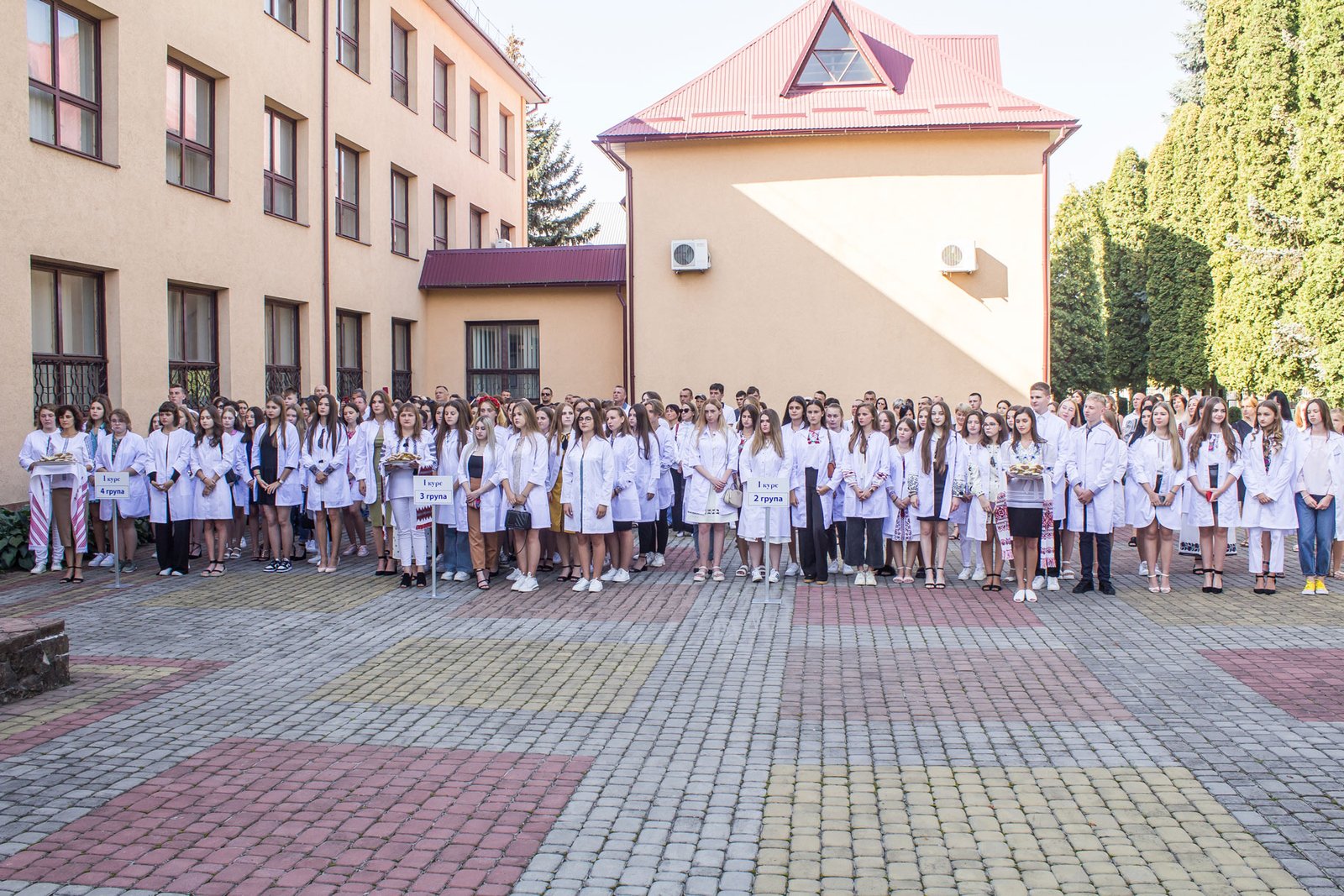 Саме для цих 238 студентів та для їхніх батьків сьогоднішні урочистості стали початком навчання в найстарішому на Прикарпатті медичному освітньому закладі, який під час їхнього навчання, у 2024-му, відзначатиме 85-річчя. З міркувань безпеки офіціоз був зведений до мінімуму: Гімн України, одягання білих халатів, символічне вручення залікової книжки і студентського квитка, духовний гімн «Боже великий, єдиний».