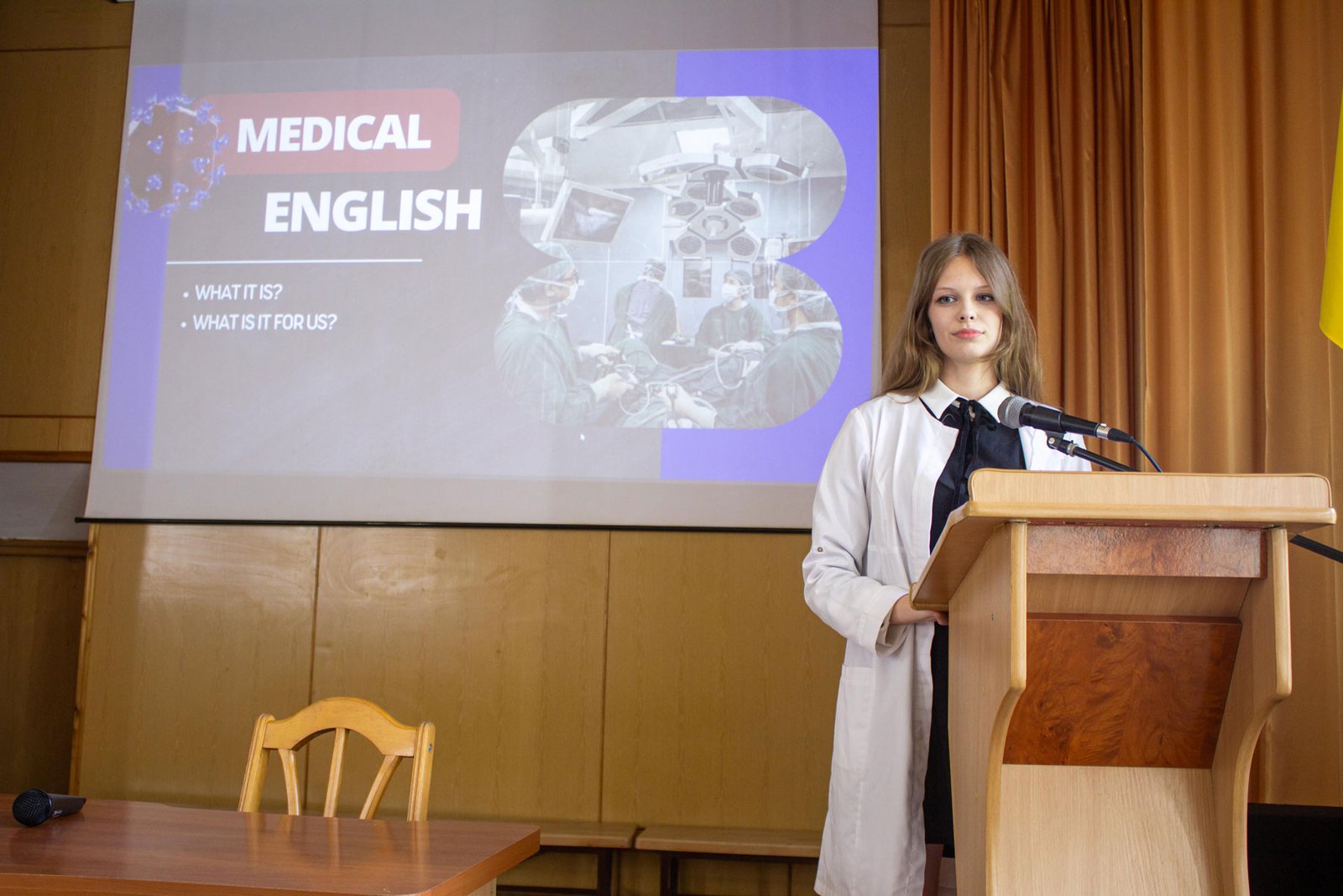 Практичне спрямування (зв’язок з освітніми дисциплінами) мав виступ студентки групи ІІ-6 Поліни Бондаренко “Англомовні терміни в сучасній медичній англійській мові” (керівниця Ольга Загайкевич).