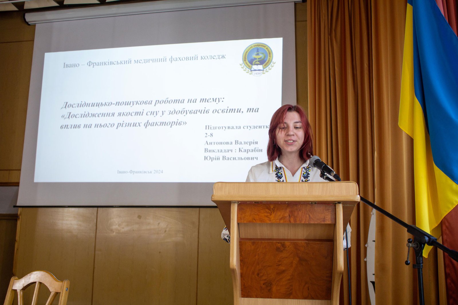 12 червня в актовій залі коледжу зібралися здобувачі освіти другого курсу ОПП Сестринська справа та Лікувальна справа, керівники студентських наукових робіт, викладачі. Одні розповідали про результати своїх розвідок, інші з цікавістю слухали. Мультимедійний супровід забезпечував повніше і дохідливіше розкриття кожної студентської роботи.