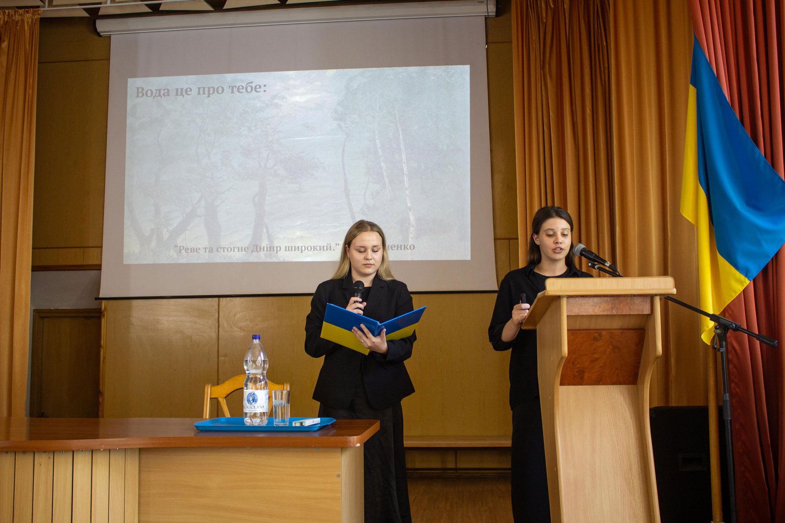 Катерина Фрезюк працювала ще над однією темою. Разом з Веронікою Сосніч (теж група ІІ-3) підготували на студентську конференцію роботу “Краса і магія води” (керівниці Тетяна Рябова і Любов Облогіна).