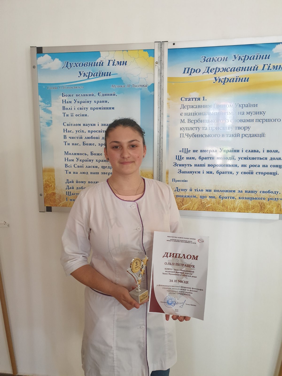 Щиро вітаємо студентку II курсу 3 групи спеціалізації «Сестринська справа» Ольгу Петращук, бажаємо подальших креативних, оригінальних, цікавих, сучасних ідей та знахідок у галузі фотомистецтва.