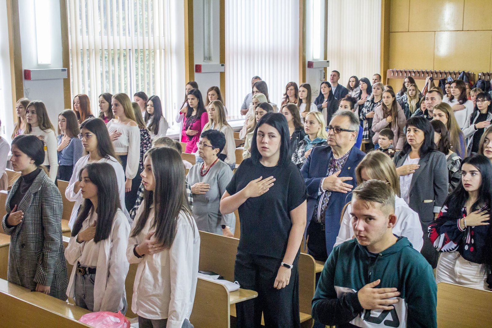 Це навчання для них розпочалося з урочистої посвяти в студенти, яка проходила в актовій залі коледжу за участі студентів, батьків, адміністрації ІФМФК, але з мінімумом офіціозу. Розпочалася посвята зі спільного виконання Гімну України. Вела захід заступниця директора з виховної роботи Наталія Валеріївна Мальованчук.