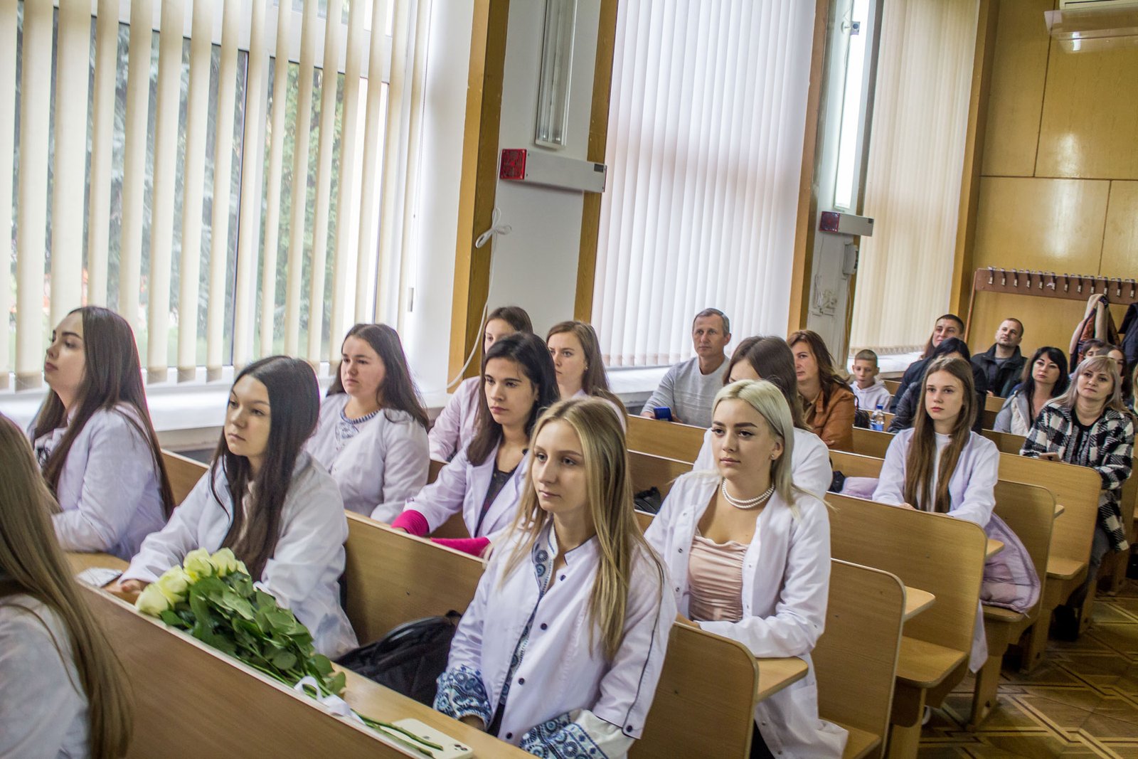 За традицією елементами посвяти стали одягання білих халатів, символічне вручення залікової книжки і студентського квитка – як обіцянка сумлінно вчитися, відповідально ставитися до своїх обов’язків, примножувати славу одного з найавторитетніших в Україні закладів фахової передвищої освіти, який через два роки, під час їхнього навчання у коледжі, відзначатиме 85-річчя з часу створення. Перше знайомство – з керівничкою 7 акушерської групи Марією Дмитрівною Ільків, а для студентів, які поповнять сестринські і фельдшерські групи – з завідувачкою відділення загальноосвітньої підготовки Мирославою Василівною Вацебою.