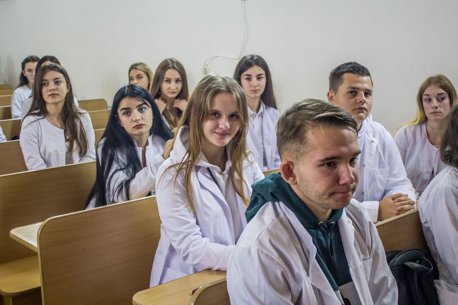 Керівник закладу освіти розповів також про гуртожиток, який функціонує за готельним принципом – зараз живуть студенти ІІ і ІV курсів, а потім приїдуть студенти І і ІІІ курсів. Кімнати в гуртожитку – лише для спання, а для навчання – укриття на нульовому корпусі. На території коледжу – тільки українська мова, оскільки «це державний заклад і державна мова українська», а внутрішньо переміщеним особам, які є серед цьогорічних студентів, допоможуть (кому необхідно) перейти з мови московських окупантів на рідну мову, яка у нас одна. А ще на території коледжу заборонене куріння – «медики не повинні мати такої шкідливої звички».