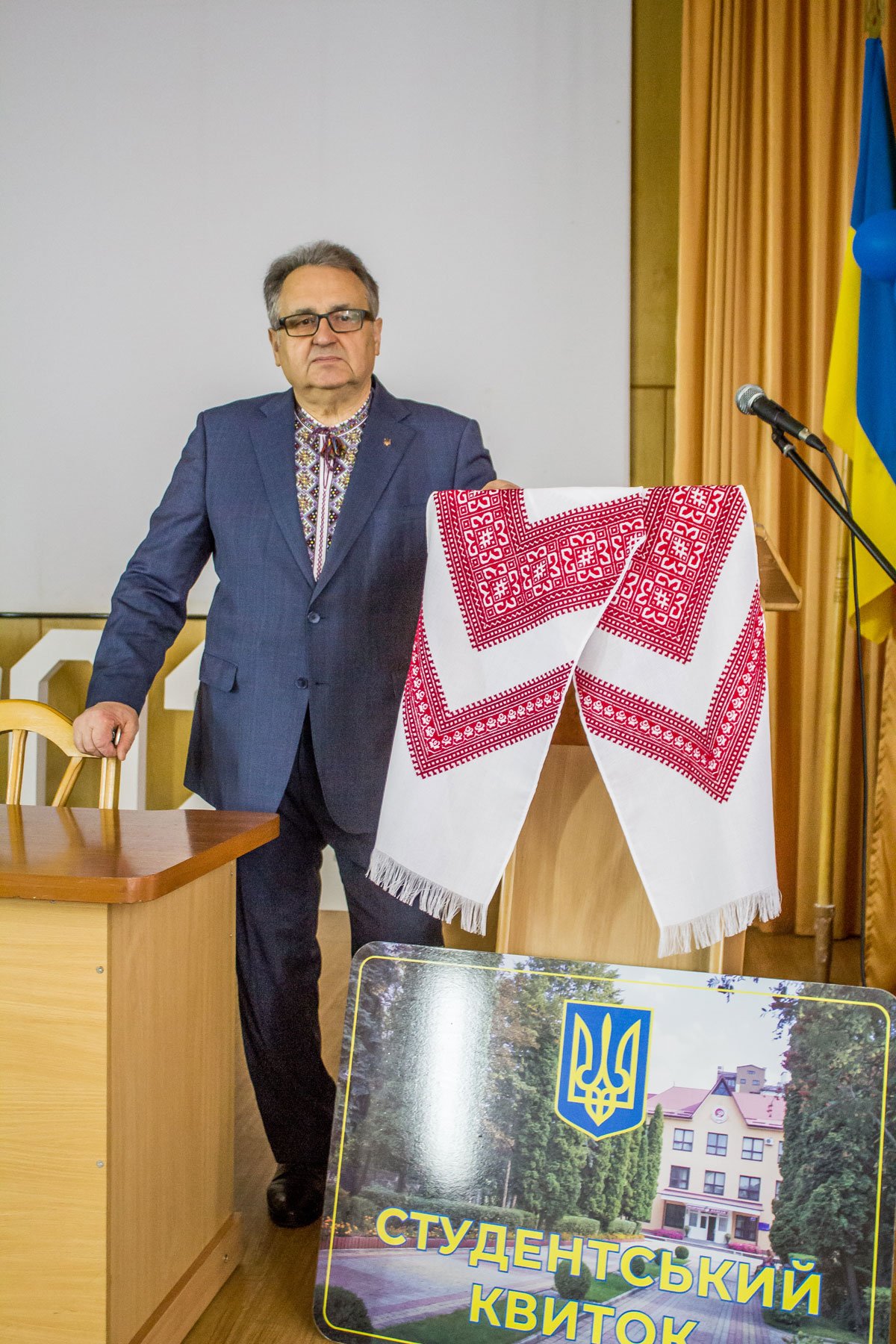 Зі словами вітань до студентів звернувся директор ІФМФК, колишній його випускник Володимир Васильович Стасюк. Він від імені адміністрації коледжу, викладачів, старшокурсників привітав усіх з початком нової сторінки майбутнього цікавого професійного життя. Наголосивши, що студенти вибрали найблагороднішу галузь знань – медицину, побажав успіхів в її оволодінні і закликав пам’ятати про високе покликання медичного працівника. Директор побажав усім міцного здоров’я, успіхів у житті і навчанні, мирного неба, перемоги над московською ордою.