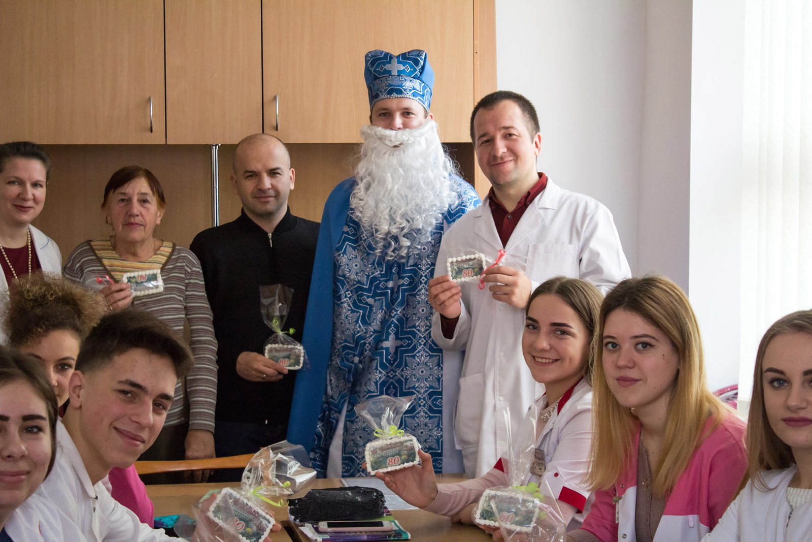 І саме цього дня, напередодні 80-річного ювілею нашого навчального закладу в гості до студентів, викладачів та працівників завітав добрий і Святий Миколай, який привітав усіх із святом, побажав миру, здоров’я, сімейного затишку, успіхів у навчанні та роздав подарунки. Всі присутні відчули величезну радість, піднесений настрій і чудеса, які приносить Святий Миколай.