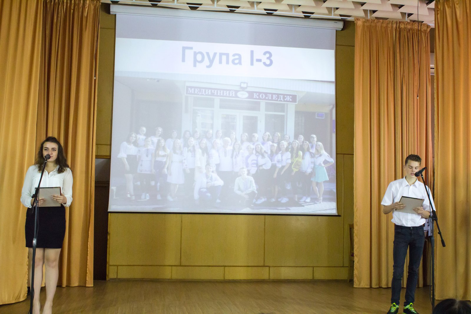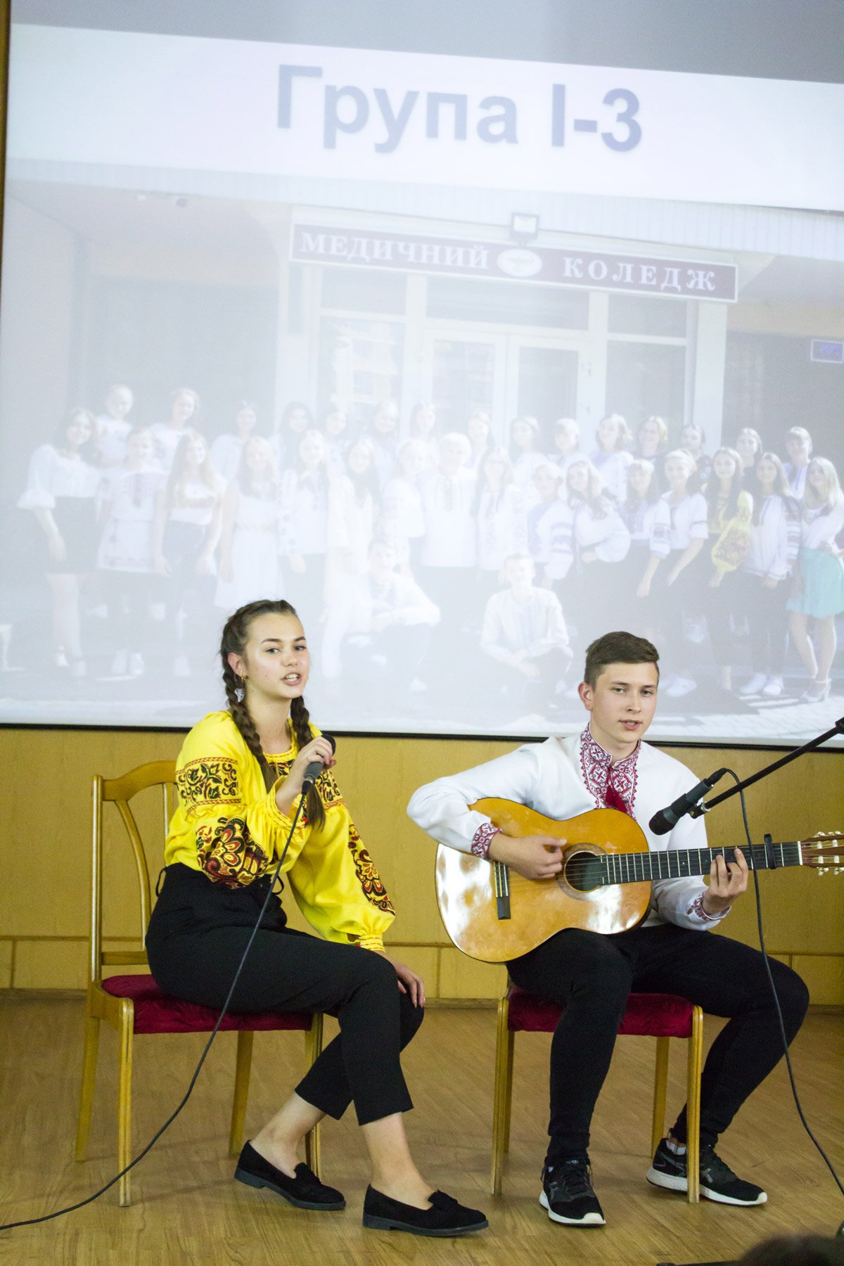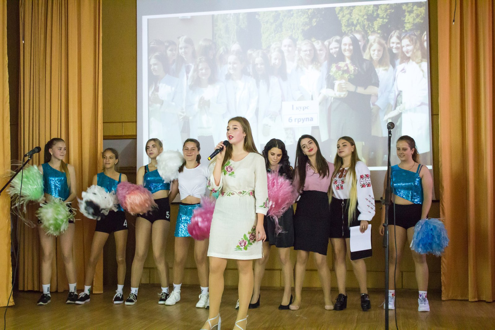 Відкрила презентацію груп нового набору студентка третього курсу спеціалізації «Сестринська справа» Марина Доровських, яка виконала пісню на слова М. Карпенка та музику Д. Г. Циганкова «А я люблю Прикарпаття».