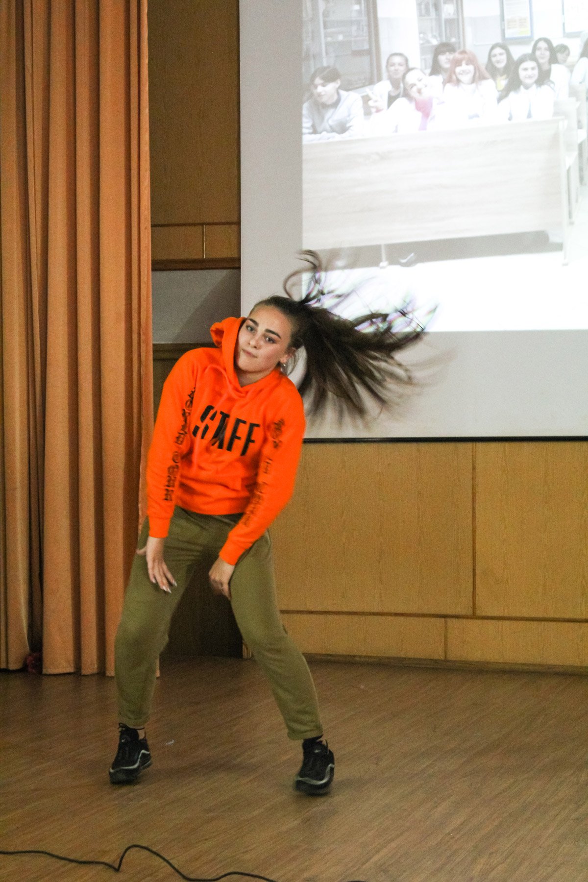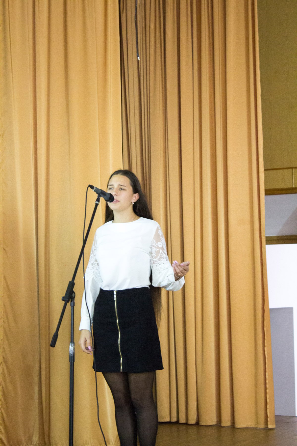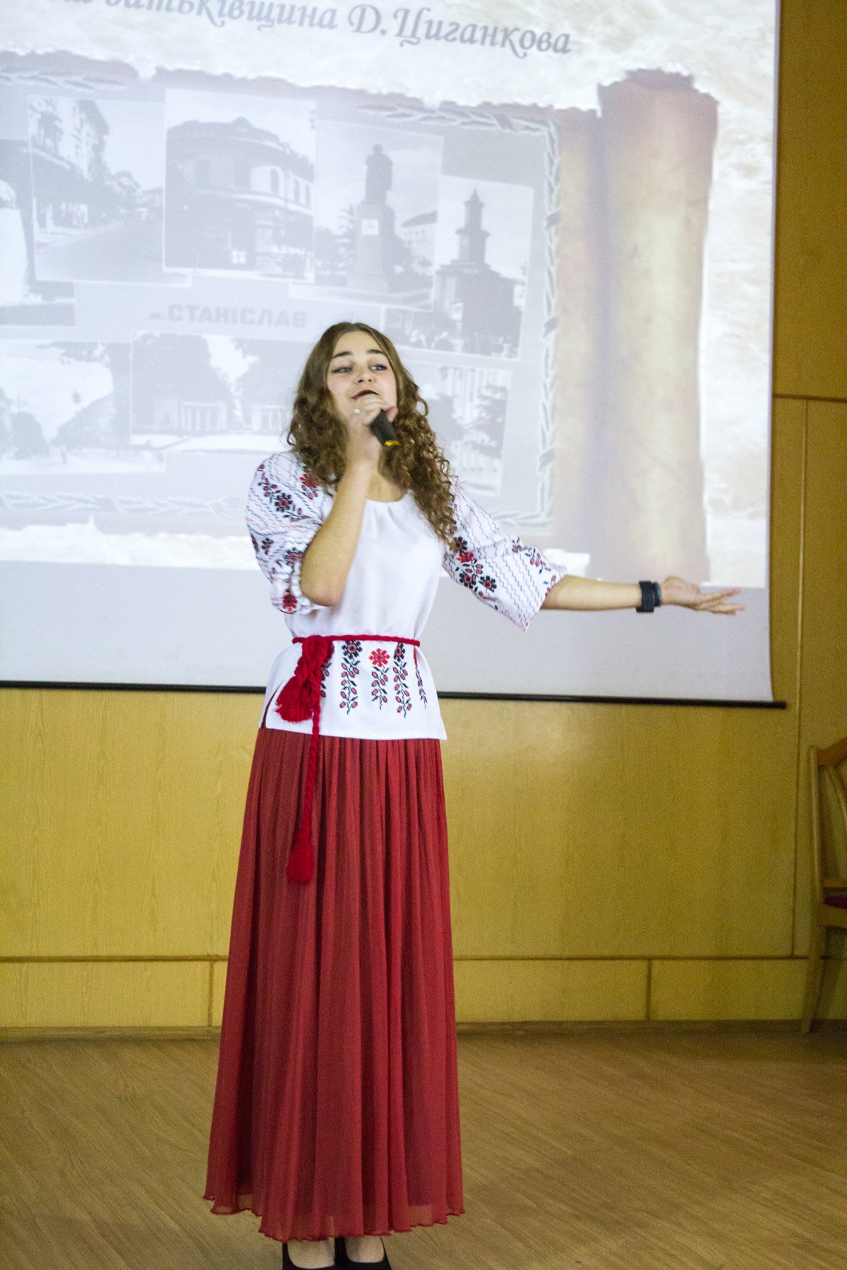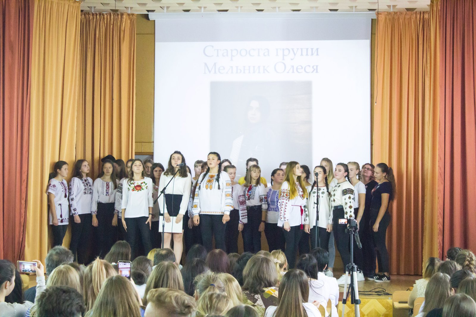 Відкрила презентацію груп нового набору студентка третього курсу спеціалізації «Сестринська справа» Марина Доровських, яка виконала пісню на слова М. Карпенка та музику Д. Г. Циганкова «А я люблю Прикарпаття».