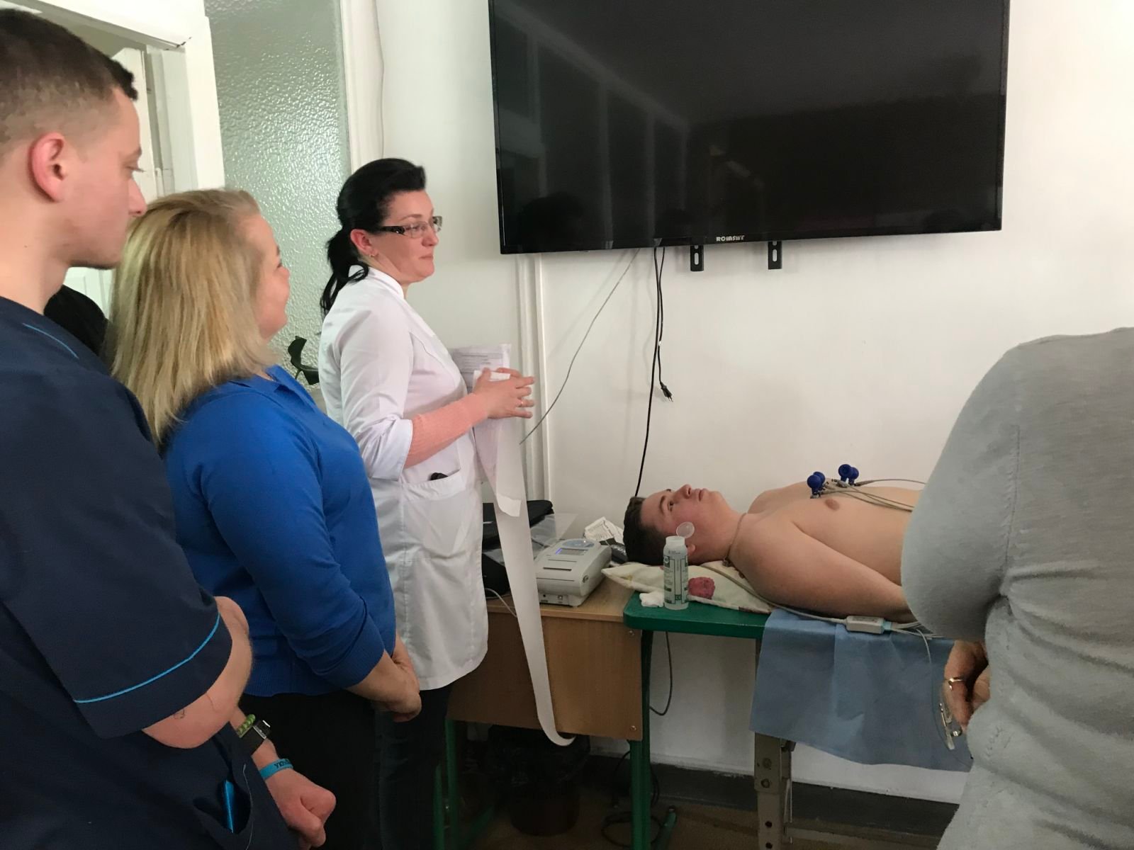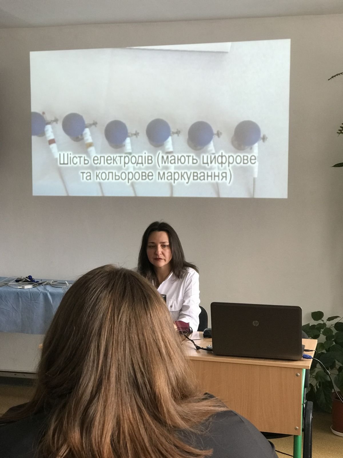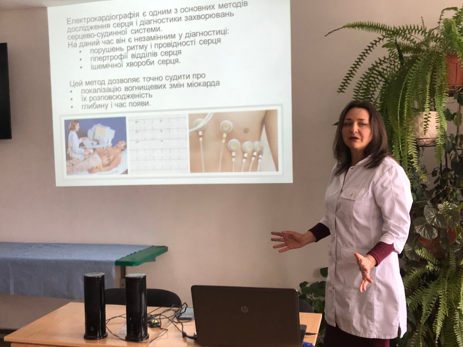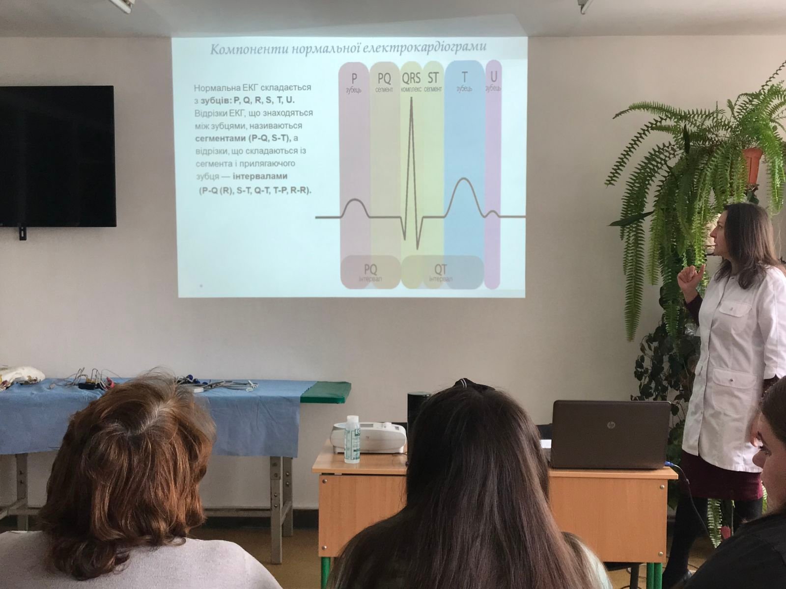 З методикою знімання електрокардіограми та підготовкою пацієнта до проведення, основами аналізу електрокардіограми учасників тренінгу ознайомила викладачка циклової комісії терапевтичних дисциплін Ірина Василівна Вібла – викладачка вищої категорії, викладачка-методистка, лікарка вищої кваліфікаційної категорії.