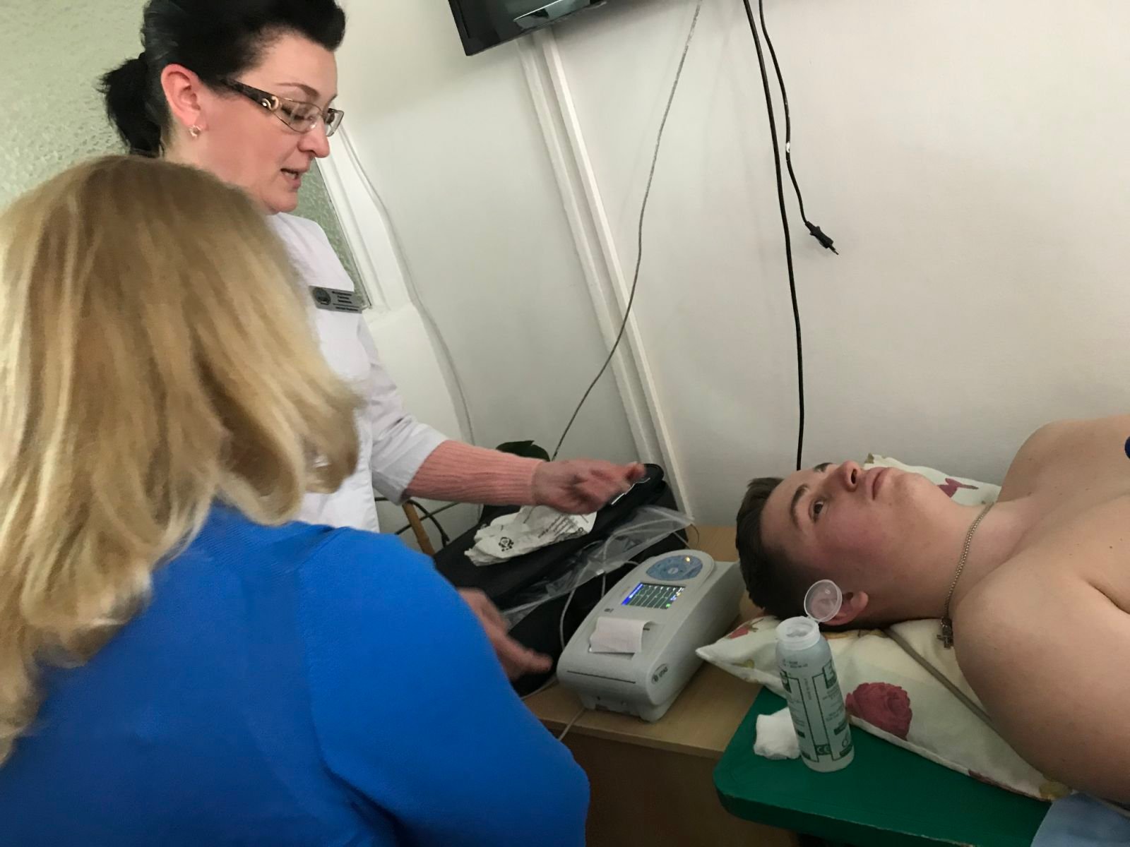 Учасники тренінгу працювали у малих групах, відпрацьовували навички знімання електрокардіограми, вчилися визначати ритм та частоту серцевих скорочень, джерело збудження, проводили оцінку функції провідності, аналізували зубці та комплекси ЕКГ під керівництвом завідувачки медичного пункту коледжу Галини Іванівни Федоришин та медичної сестри відділення функціональної і ультразвукової діагностики КНП «Обласна клінічна лікарня» Івано-Франківської обласної ради Олени Дмитрівни Івасюк. Лікарка цього ж відділення Ольга Миколаївна Гричинюк звернула увагу учасників тренінгу на можливі помилки при зніманні ЕКГ, провела характеристику змін на ЕКГ при захворюваннях серця.