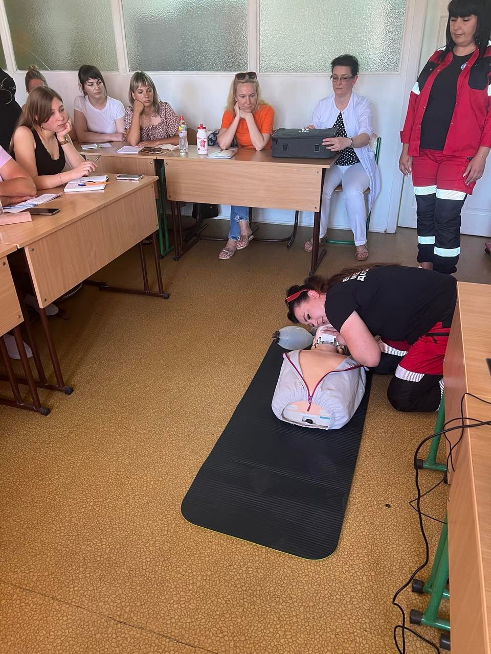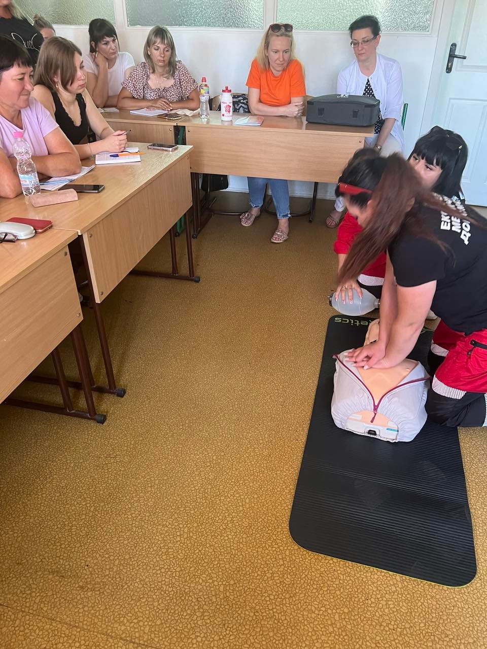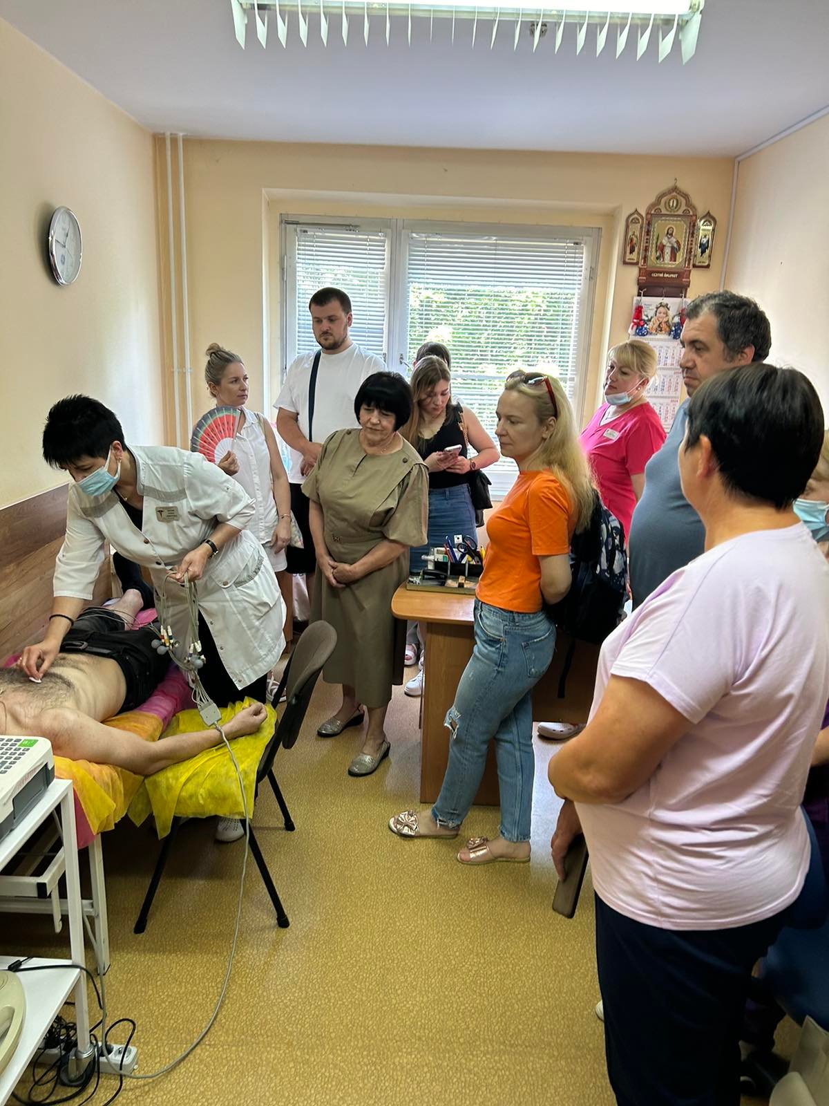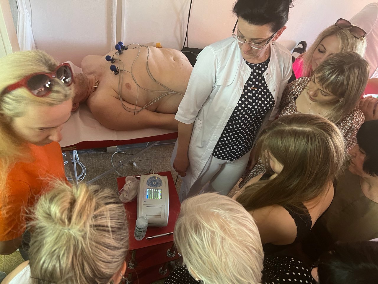 Лікар відділення функціональної і ультразвукової діагностики КНП «Обласна клінічна лікарня» ІФОР Гричинюк Ольга Миколаївна акцентувала увагу слухачів на можливих помилках при зніманні ЕКГ, провела характеристику змін на ЕКГ при захворюваннях серця. А старший фельдшер Тисменицького відділення КНП «Обласний клінічний центр ЕМД та МК Івано-Франківської обласної ради» Гербуд Ірина Миронівна та фельдшер Паливода Руслана Василівна відпрацювали з учасниками тренінгу навички знімання електрокардіограми в умовах «швидкої», тактику дій медиків у разі діагностування у пацієнта гострого коронарного синдрому, у т.ч. проведення СЛР.