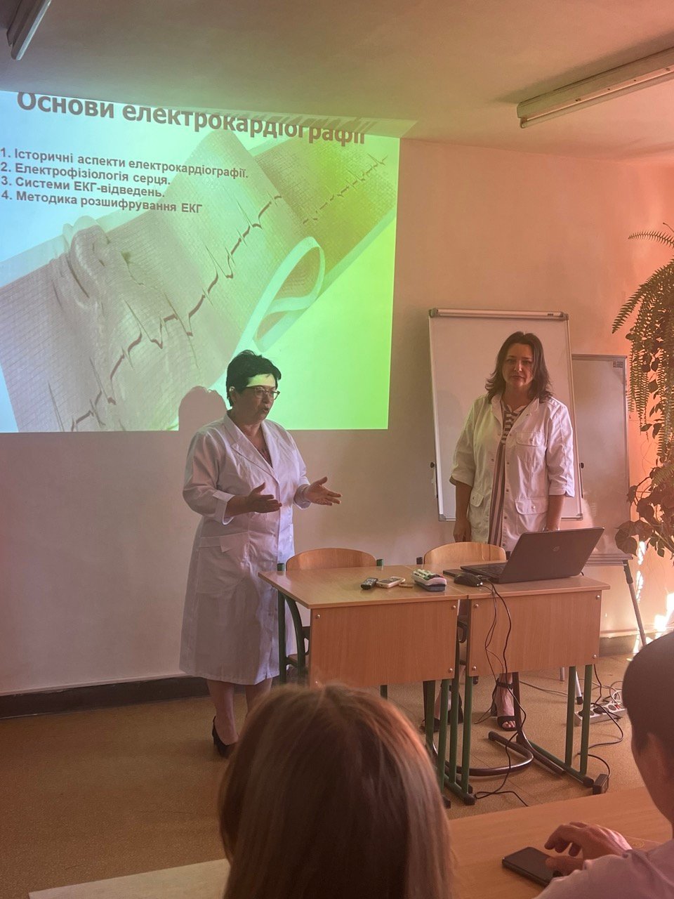Учасники тренінгу вивчали методику знімання електрокардіограми та підготовку пацієнта до проведення, основи аналізу електрокардіограми (тренер - викладач циклової комісії терапевтичних дисциплін, викладач вищої категорії, викладач-методист, лікар вищої кваліфікаційної категорії Ірина Василівна Вібла), відпрацьовували у малих групах навички знімання електрокардіограми, вчились визначити ритм та частоту серцевих скорочень, джерело збудження, проводили оцінку функції провідності, аналізували зубці та комплекси ЕКГ (тренер - завідувачка медичним пунктом коледжу, сестра медична вищої кваліфікаційної категорії Федоришин Галина Іванівна).