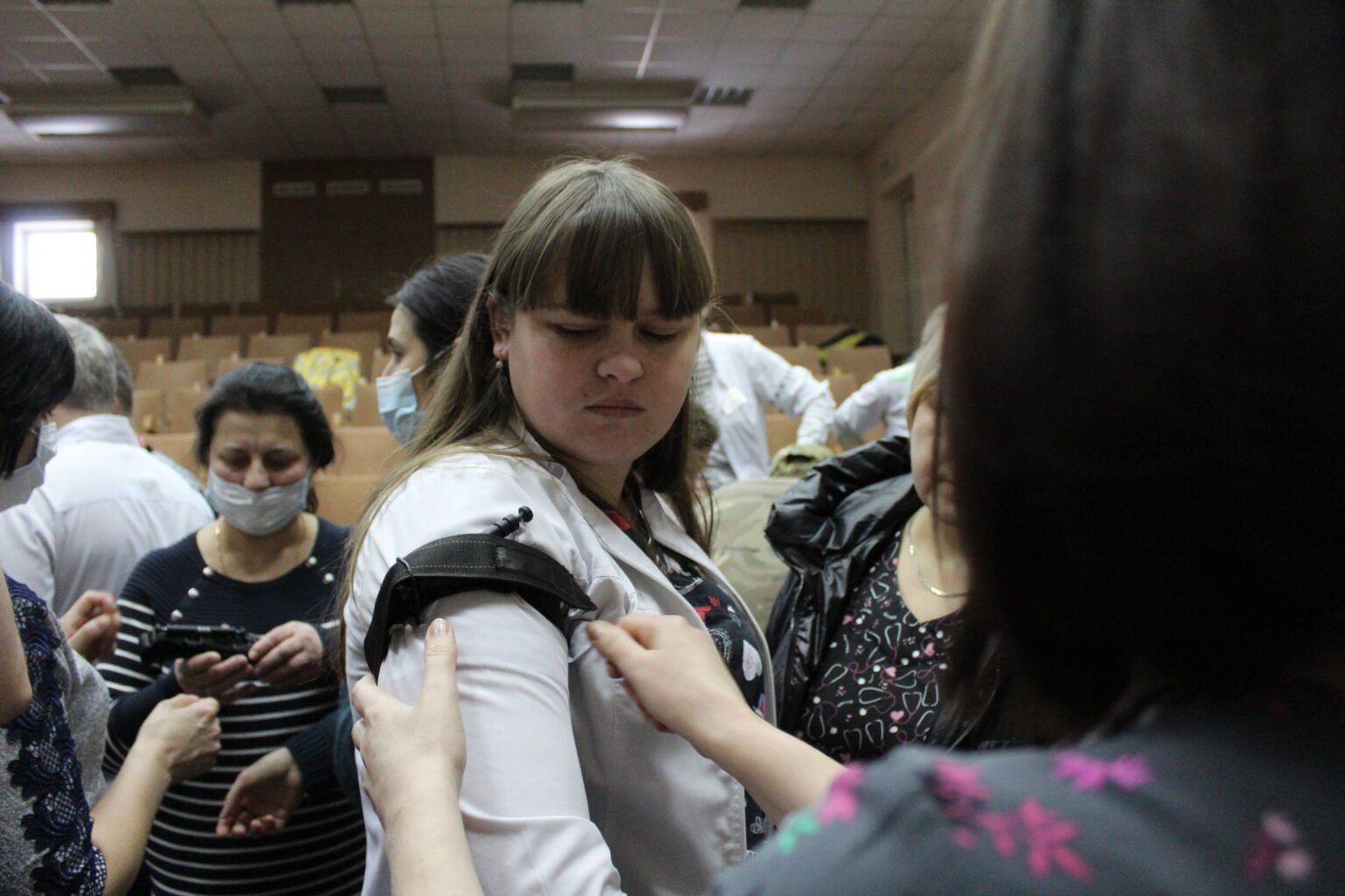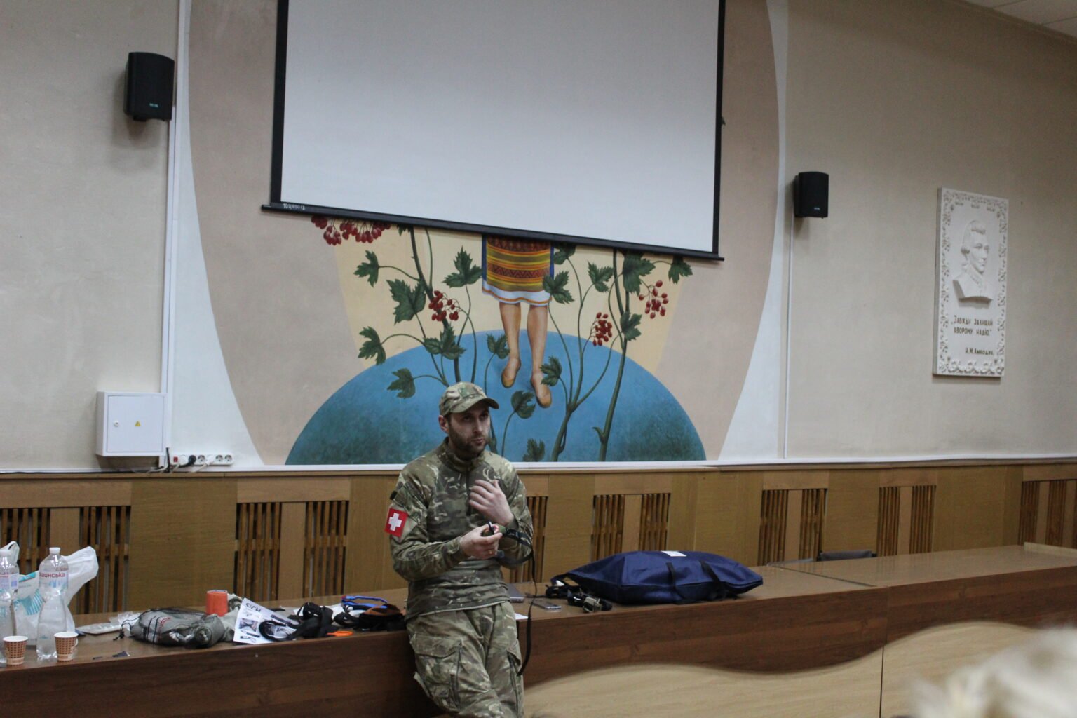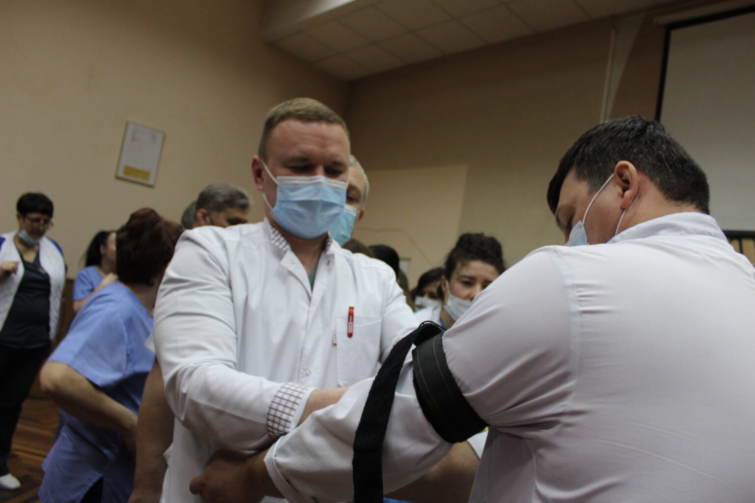 Медикам перинатального центру розповіли та показали, як надати першу допомогу при пошкодженні кровоносних магістральних судин, як правильно затягувати турнікет та джгут Есмарха, як зупиняти кров бинтом Celox та гідрогелевими пов’язками, як користуватись Ізраїльським бандажем та інше.