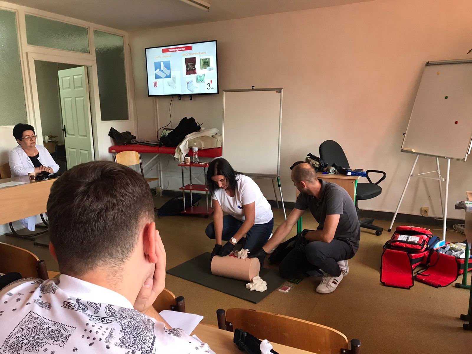 П’ятнадцять медичних сестер закладів охорони здоров’я області ознайомилися з основними протоколами TCCC, алгоритмом MARCH та оволоділи практичними навичками надання допомоги в умовах військових дій для цивільних людей: проведення швидкого огляду, сортування, евакуації; зупинки критичних кровотеч за допомогою джгутів турнікетів, проведення тугої тампонади рани, накладання тиснучої пов’язки; роботи з бандажами та ІПП; користування військовою індивідуальною аптечкою, об’єм та вид допомоги на кожному етапі; надання допомоги при пошкодженнях грудної клітки, судомних нападах, опіках, удавленні (прийом Геймліха).