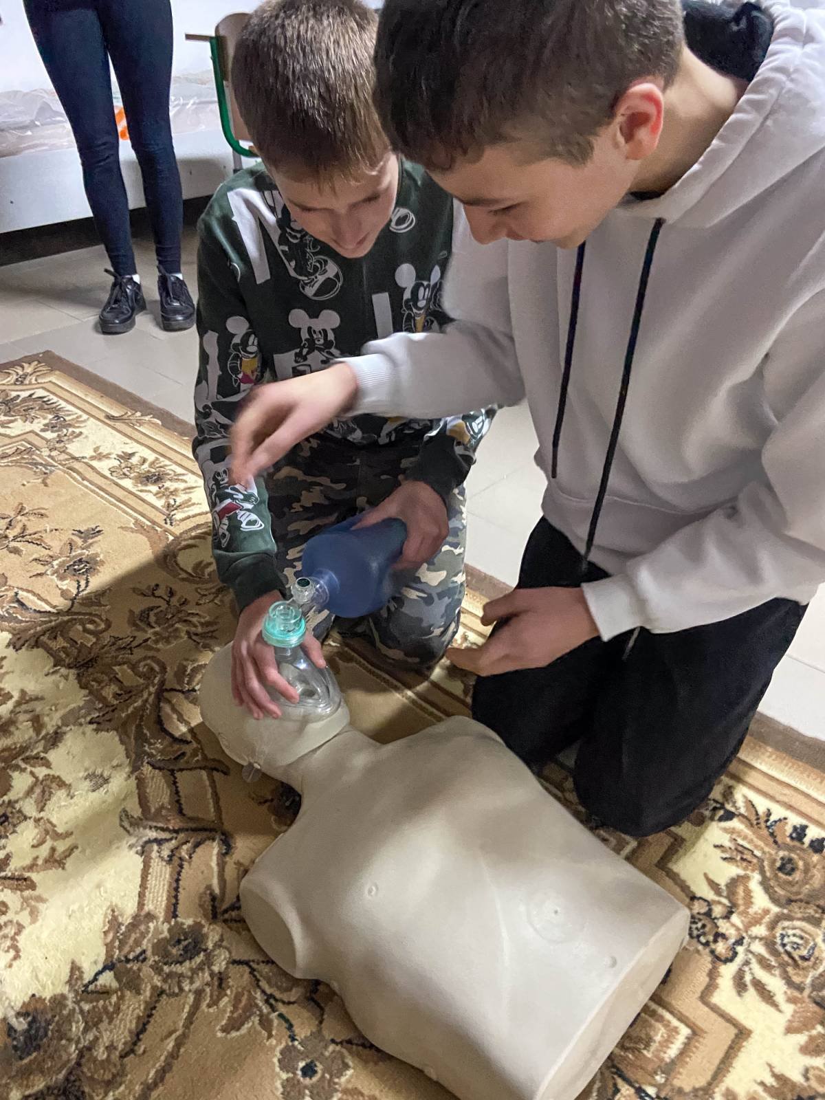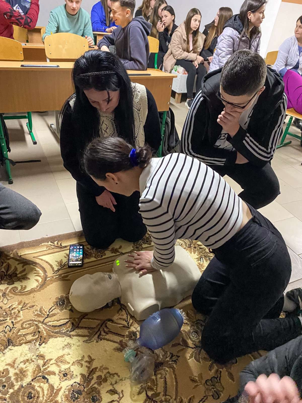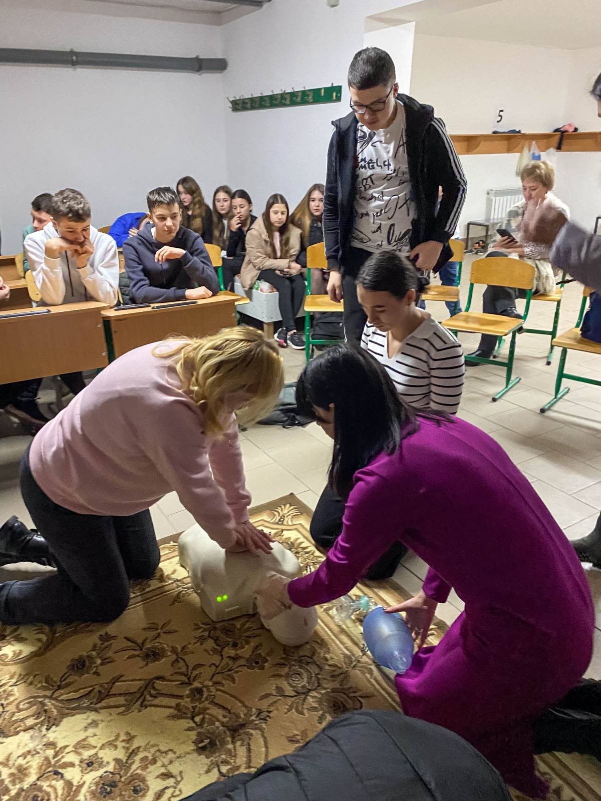 Основні теми заняття – критичні кровотечі і серцево-легенева реанімація. Старшокласники не лише отримали нові знання, а й мали можливість практично відпрацювати накладання кровоспинного турнікету, проведення непрямого масажу серця, дихальної реанімації.