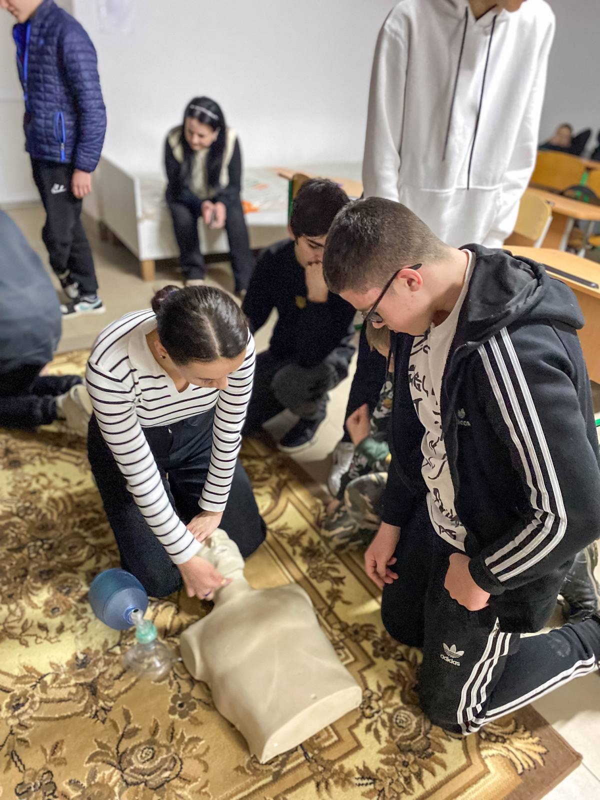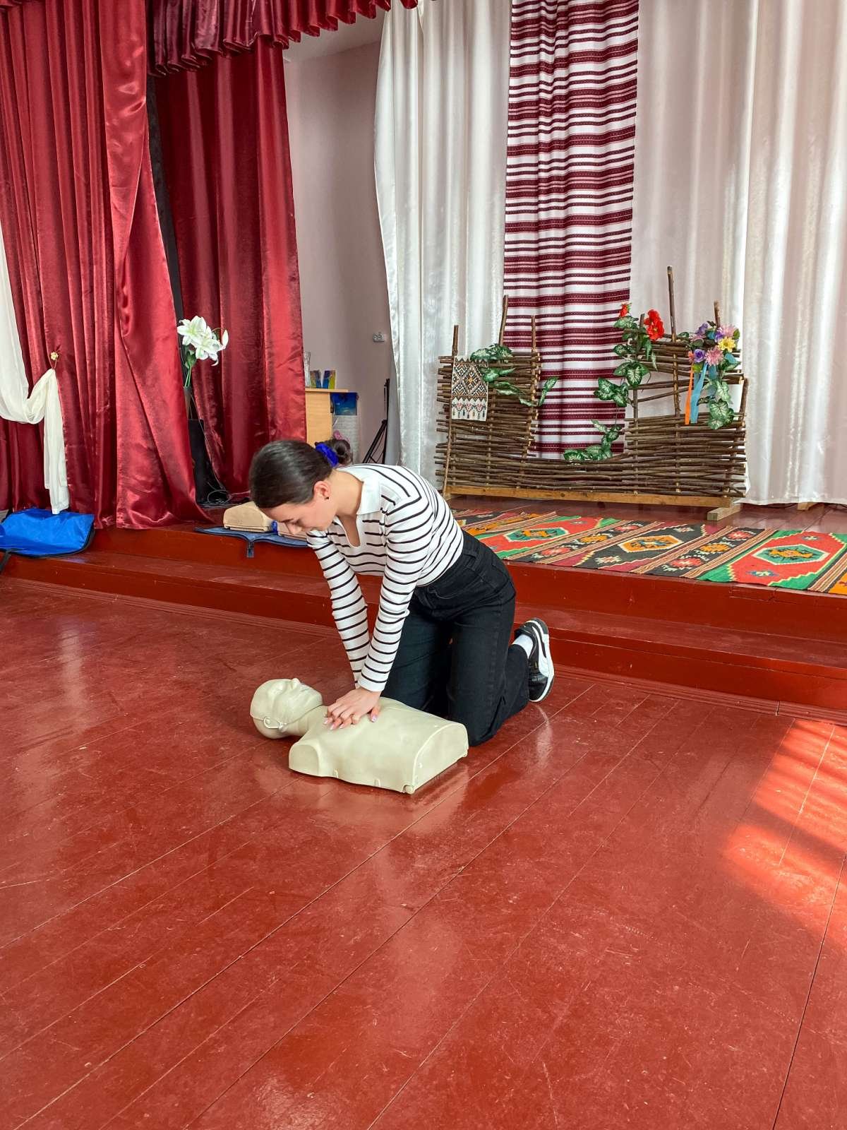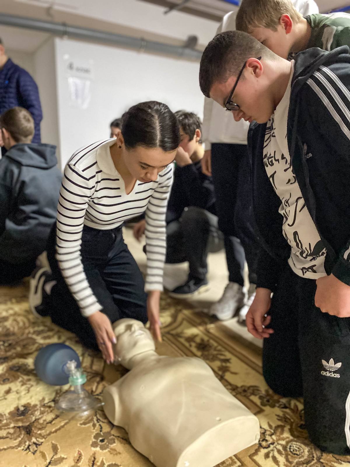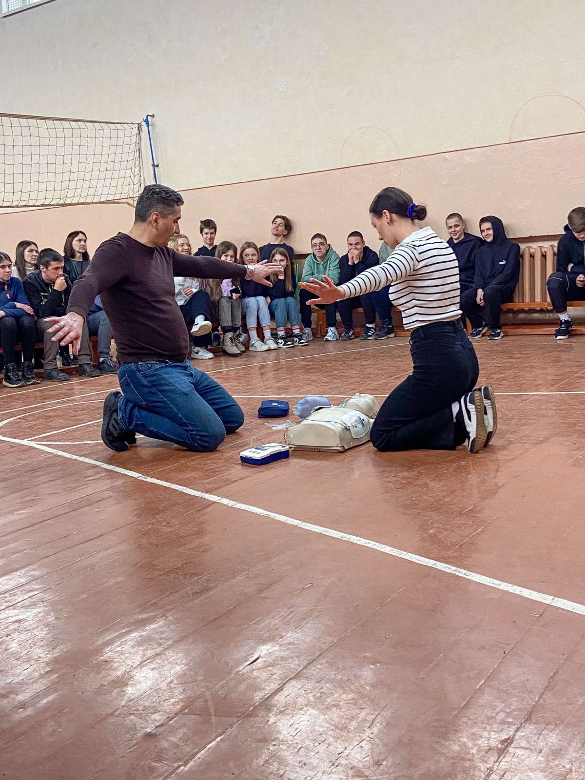 Основні теми заняття – критичні кровотечі і серцево-легенева реанімація. Старшокласники не лише отримали нові знання, а й мали можливість практично відпрацювати накладання кровоспинного турнікету, проведення непрямого масажу серця, дихальної реанімації.