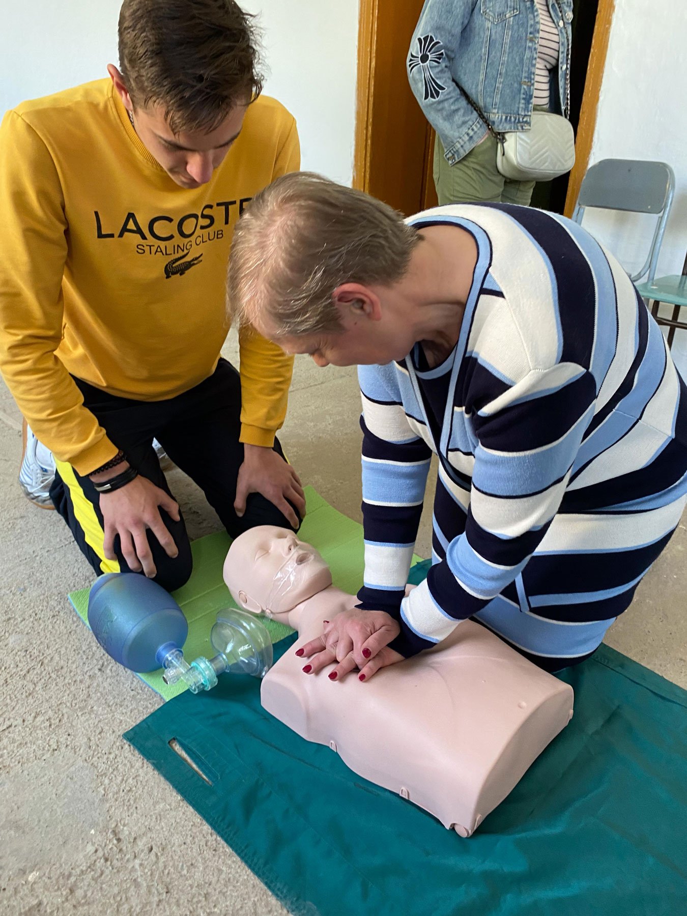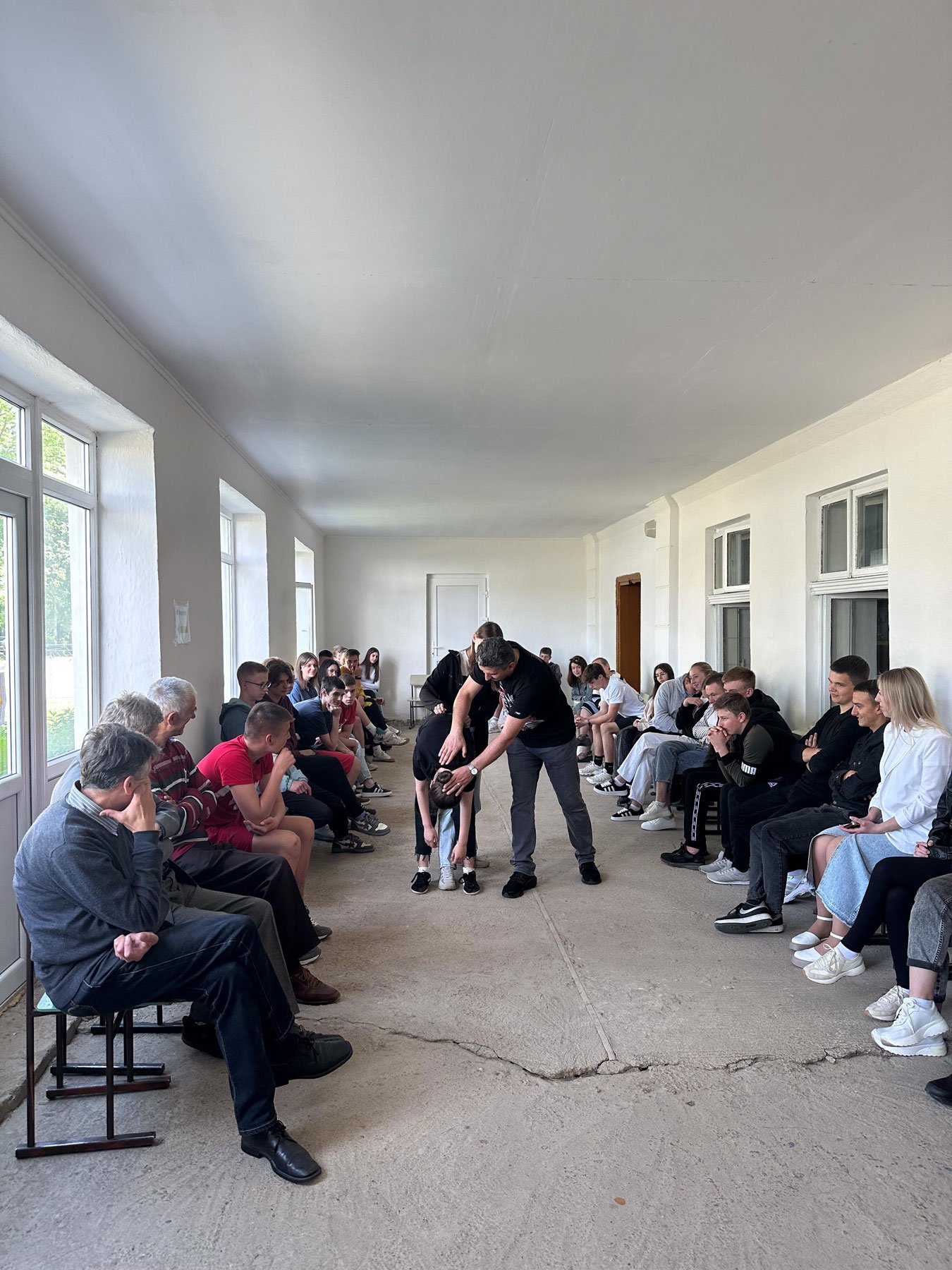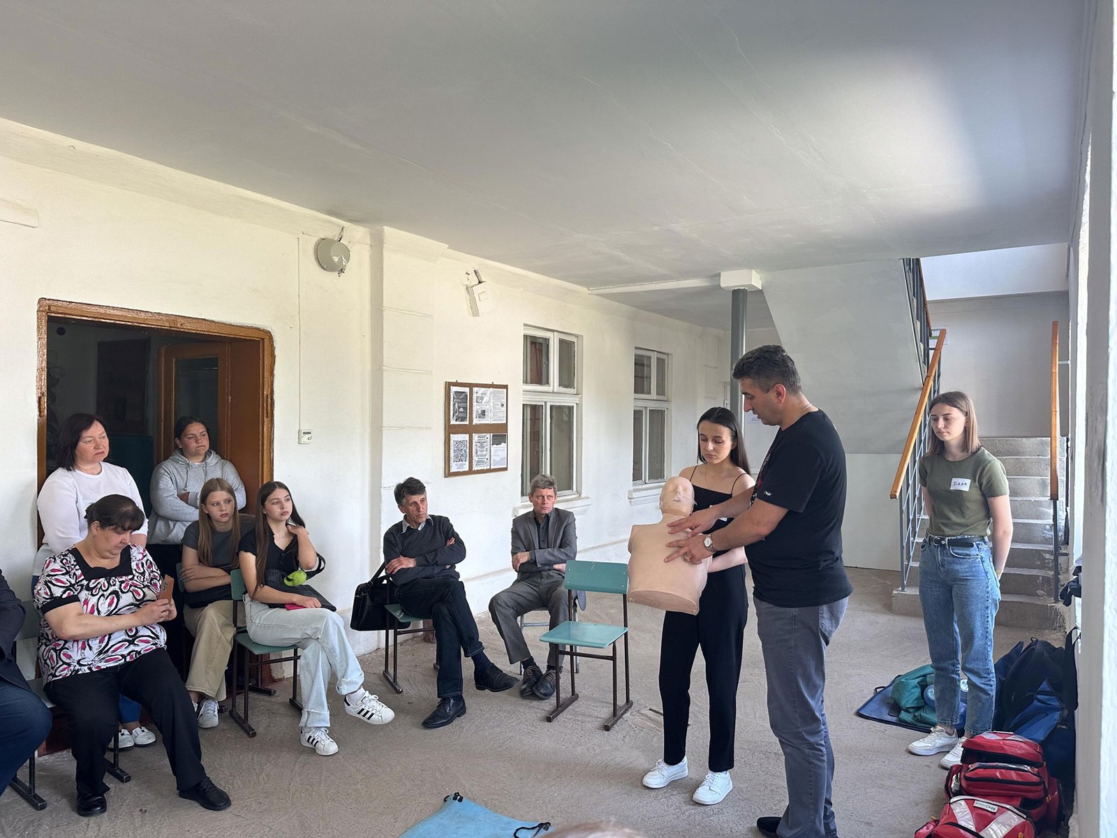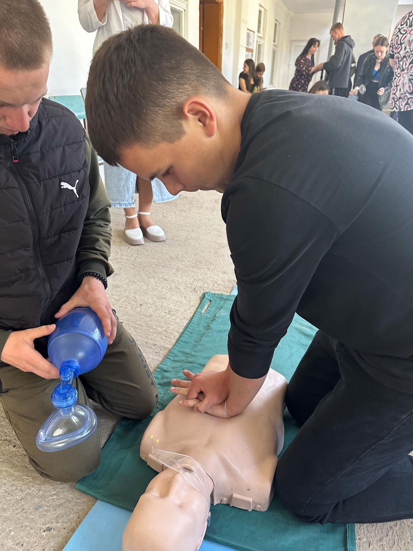 Близько пів сотні школярів і вчителів взяли участь у тренувальному занятті, яке провів викладач хірургічних дисциплін Петро Богданович Годованець з допомогою студентів-асистентів. Разом з слухачами відпрацьовували навички зупинки критичних кровотеч, серцевої та дихальної реанімації: непрямий масаж серця, штучна вентиляція легенів мішком Амбу, застосування автоматичного зовнішнього дефібрилятора, невідкладної допомоги при потраплянні стороннього тіла в дихальні шляхи.