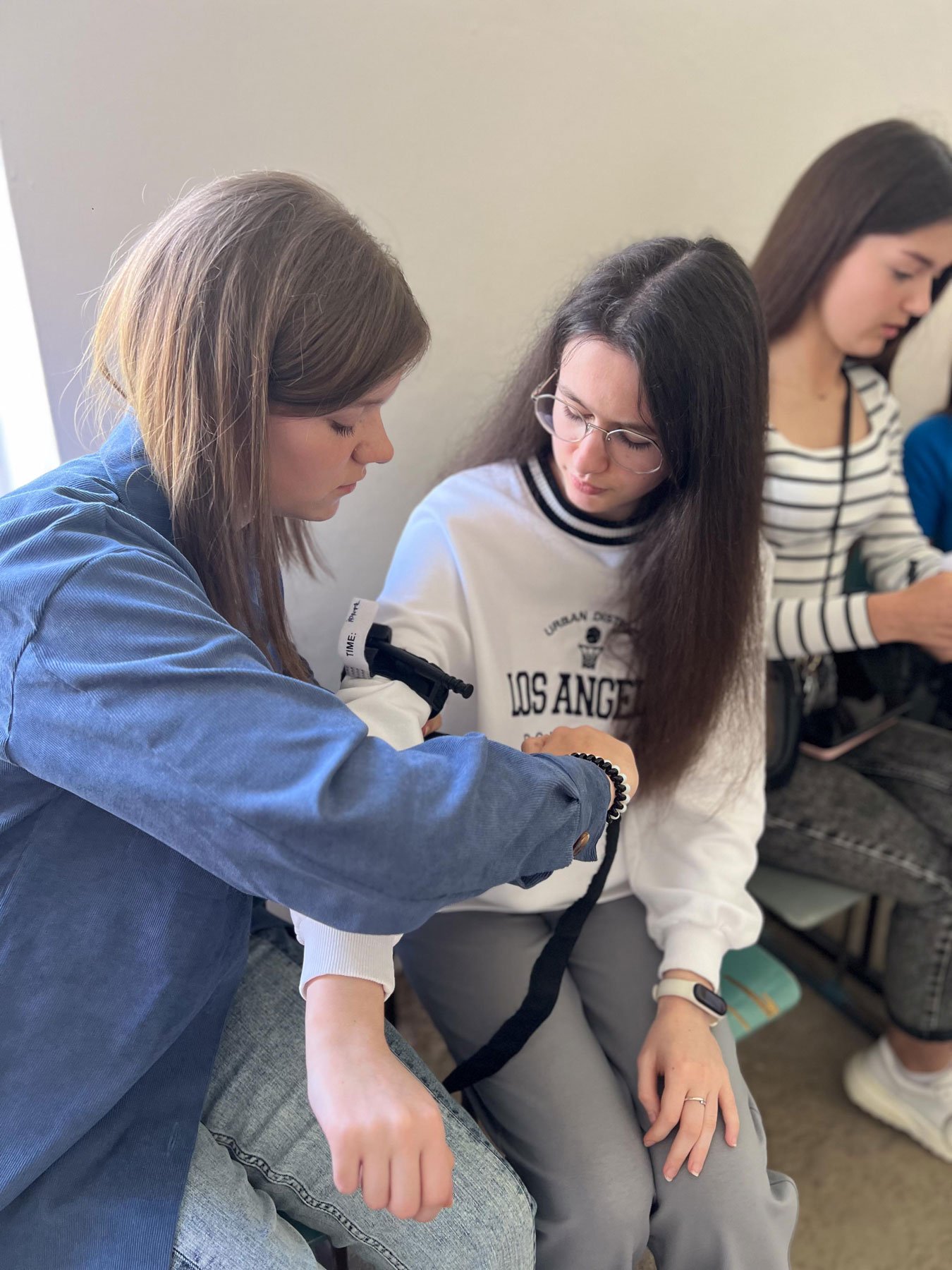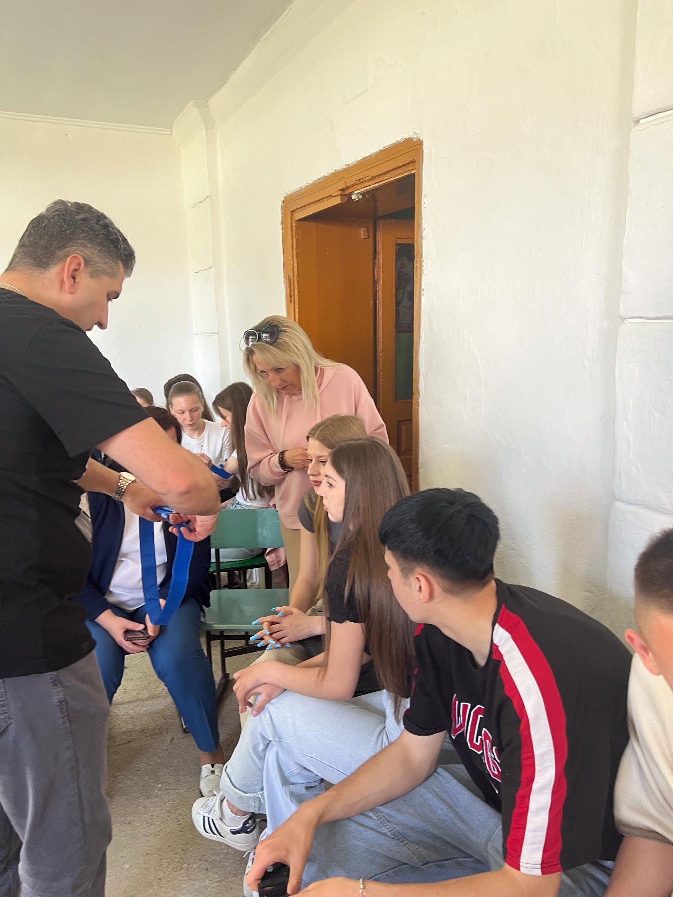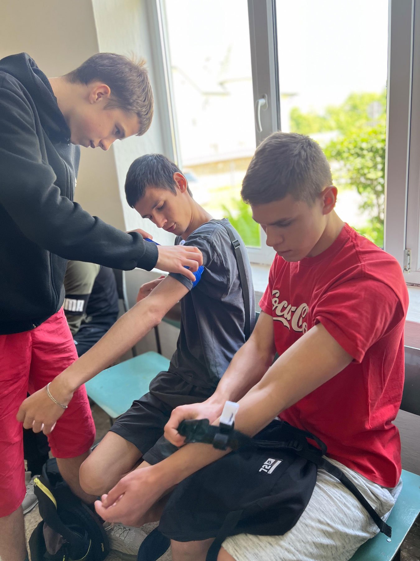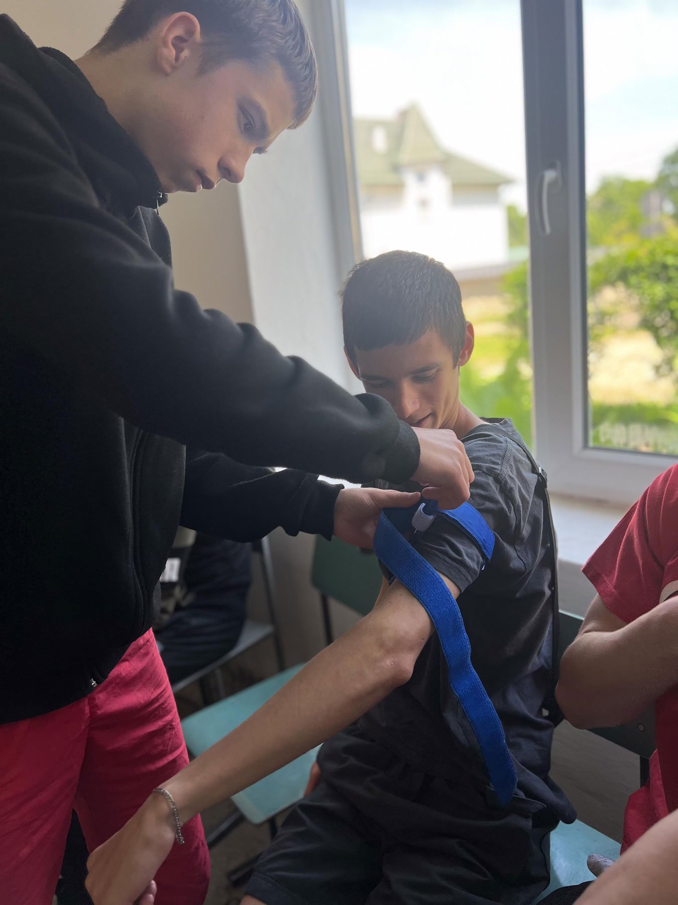 Серцево-легеневу реанімацію відпрацьовували на муляжах і фантомах, які бригада ІФМФК привезла з собою, а накладання кровоспинного турнікету школярі мали змогу проводити і на собі, і один на одному. Саме така практична складова тренінгу найбільше подобається його учасникам.
