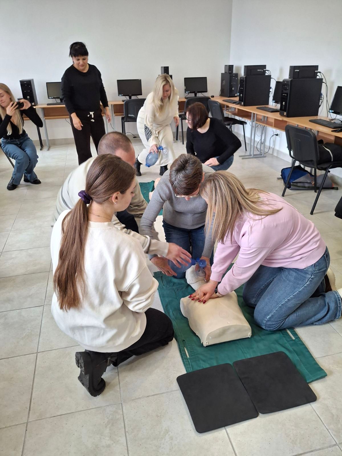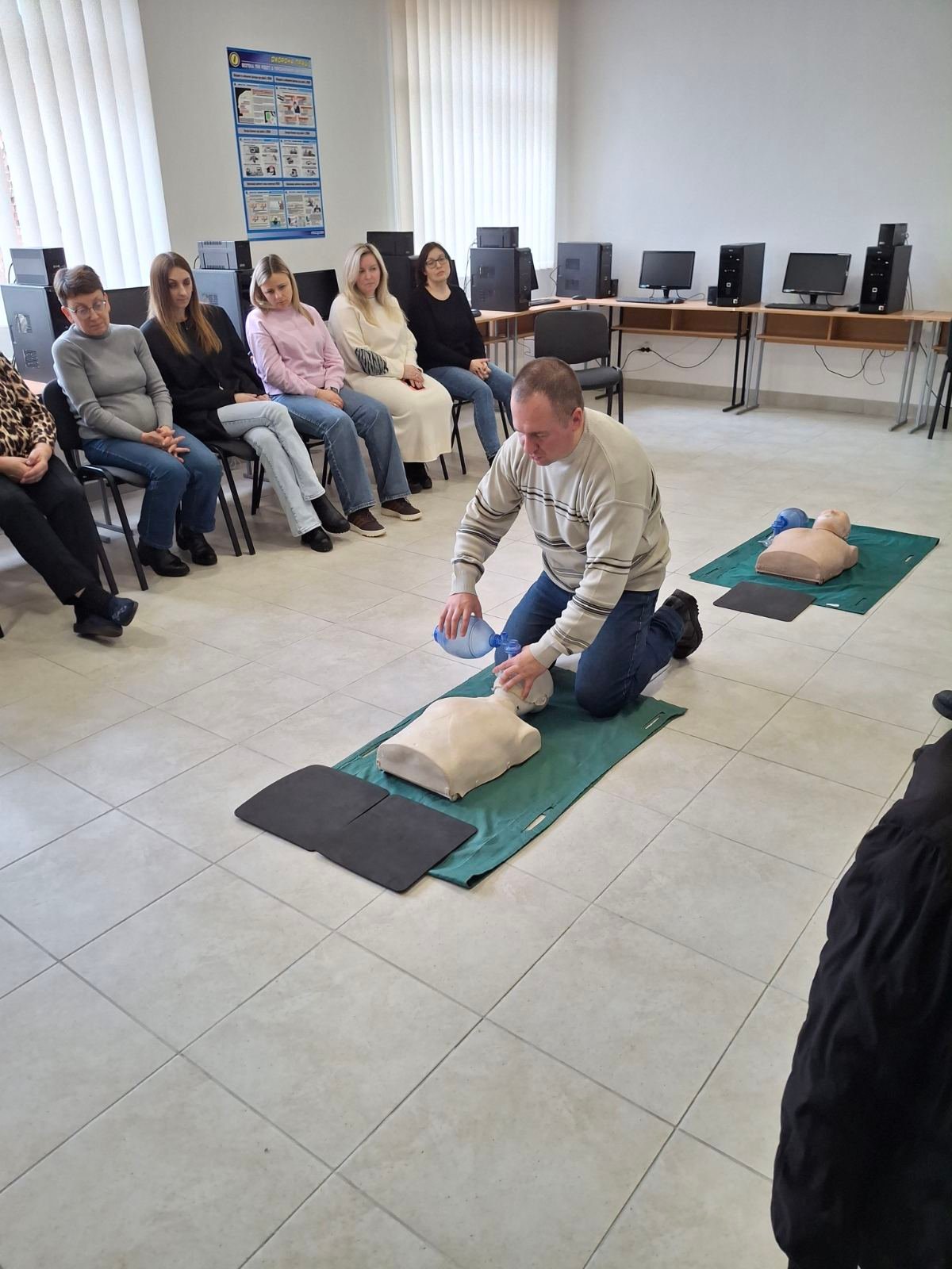 Також відпрацьовували техніку закритого масажу серця, штучного дихання за допомогою мішка Амбу, застосування автоматичного зовнішнього дефібрилятора.