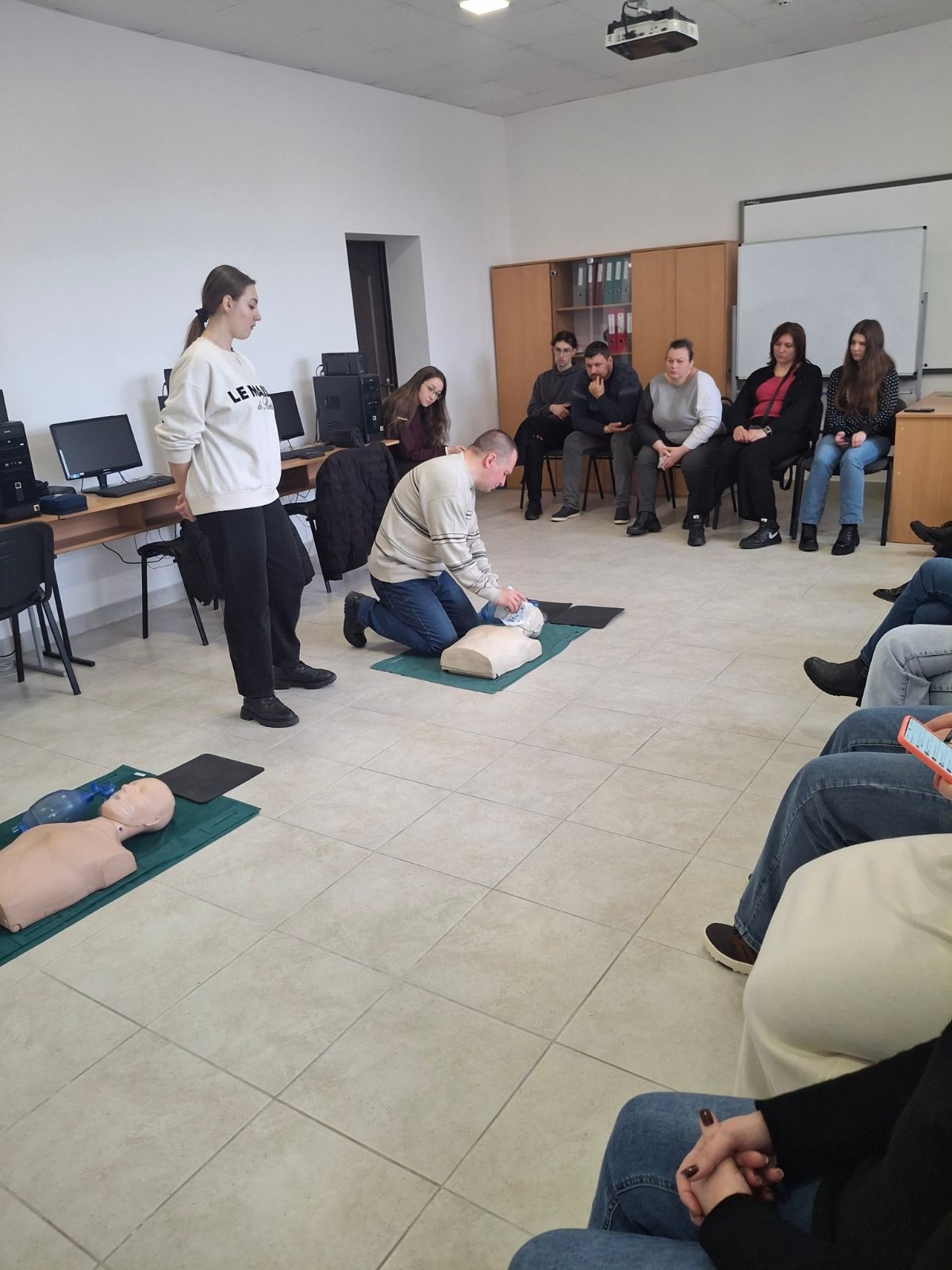 На базі Івано-Франківського центру професійно-технічної освіти державної служби зайнятості (вулиця Максимовича 15 - О) викладач циклової комісії хірургічних дисциплін Микола ВЕПРИНЯК та студентка ІV-го курсу ОПП Сестринська справа Оксана СОЛОМЧАК провели тренінг з домедичної допомоги.