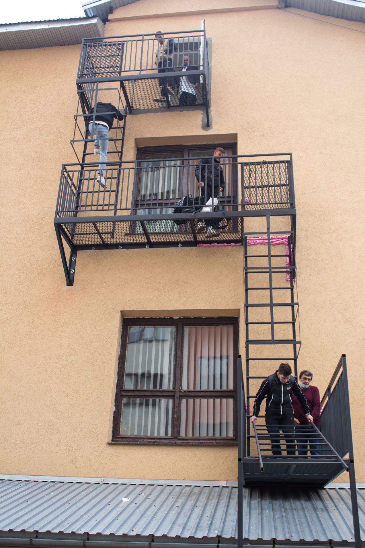 Насамперед зазначимо, що в Комунальному закладі фахової передвищої освіти «Івано-Франківський медичний фаховий коледж» Івано-Франківської обласної ради власними силами, без залучення бюджетних коштів облаштовано додатковий запасний вихід з третього поверху навчально-адміністративного корпусу коледжу для евакуації в надзвичайних ситуаціях. «Апробувати» його змогли студенти і працівники ІФМФК під час тренування з пожежної безпеки, які проходили у вигляді евакуації цим новооблаштованим шляхом – зовнішніми пожежними сходами.