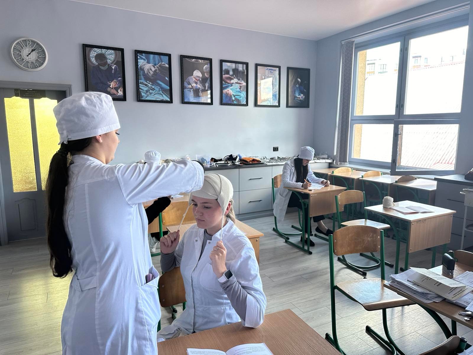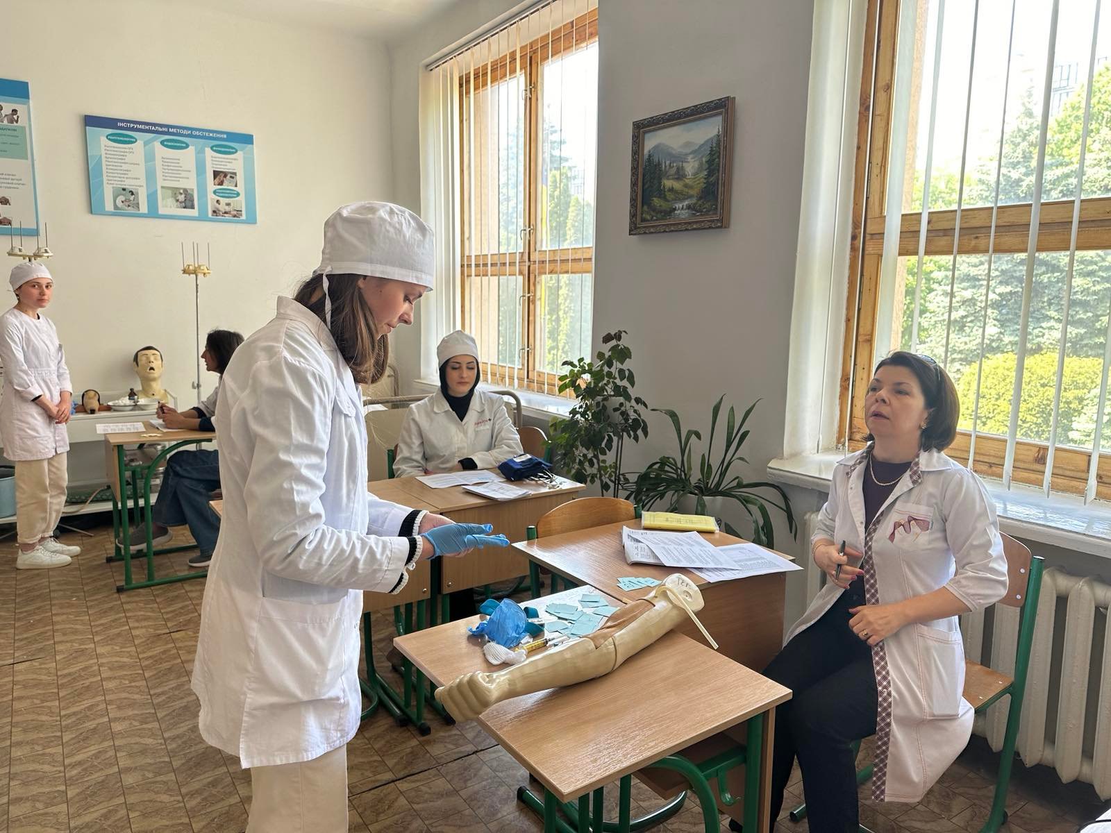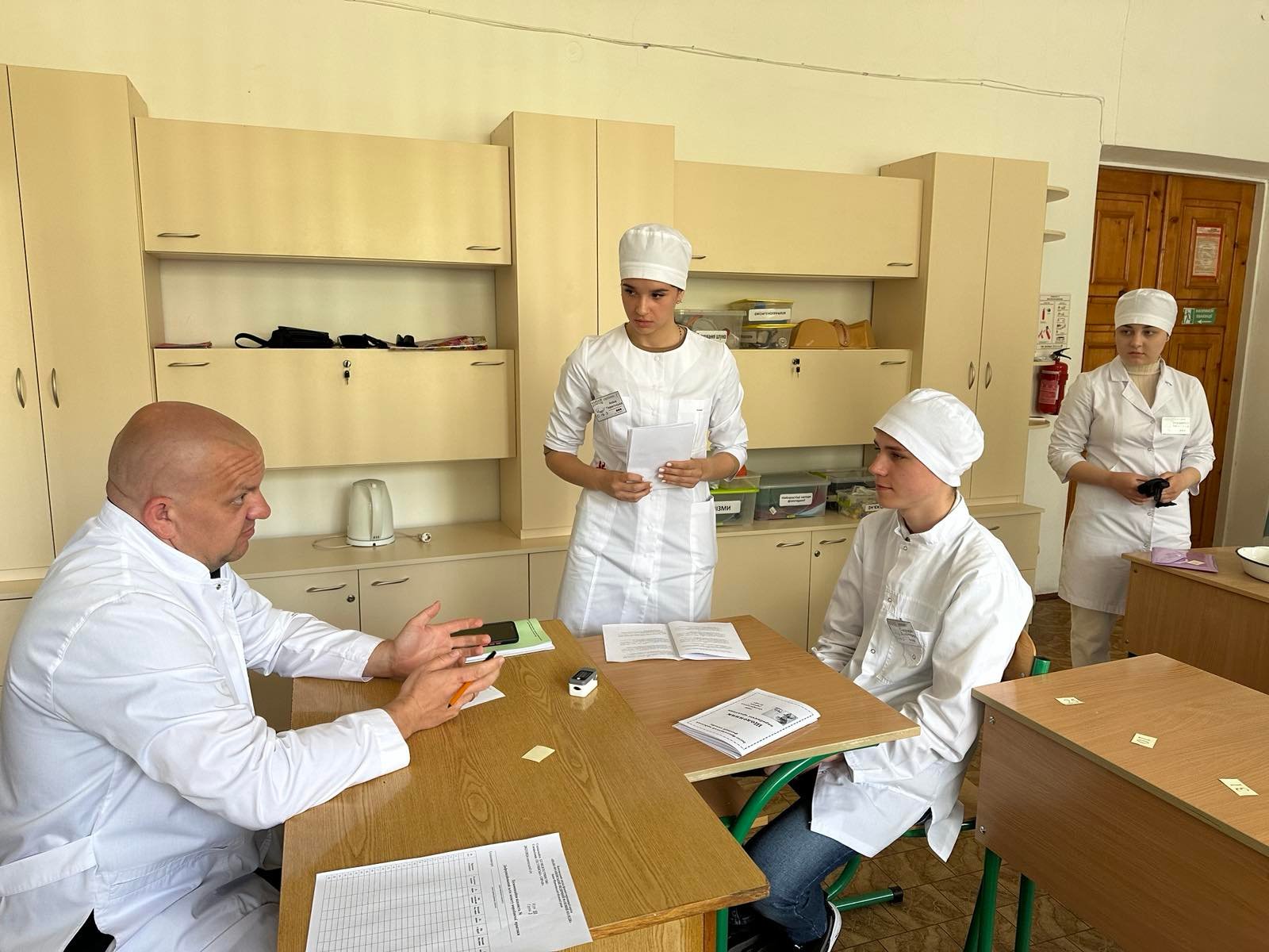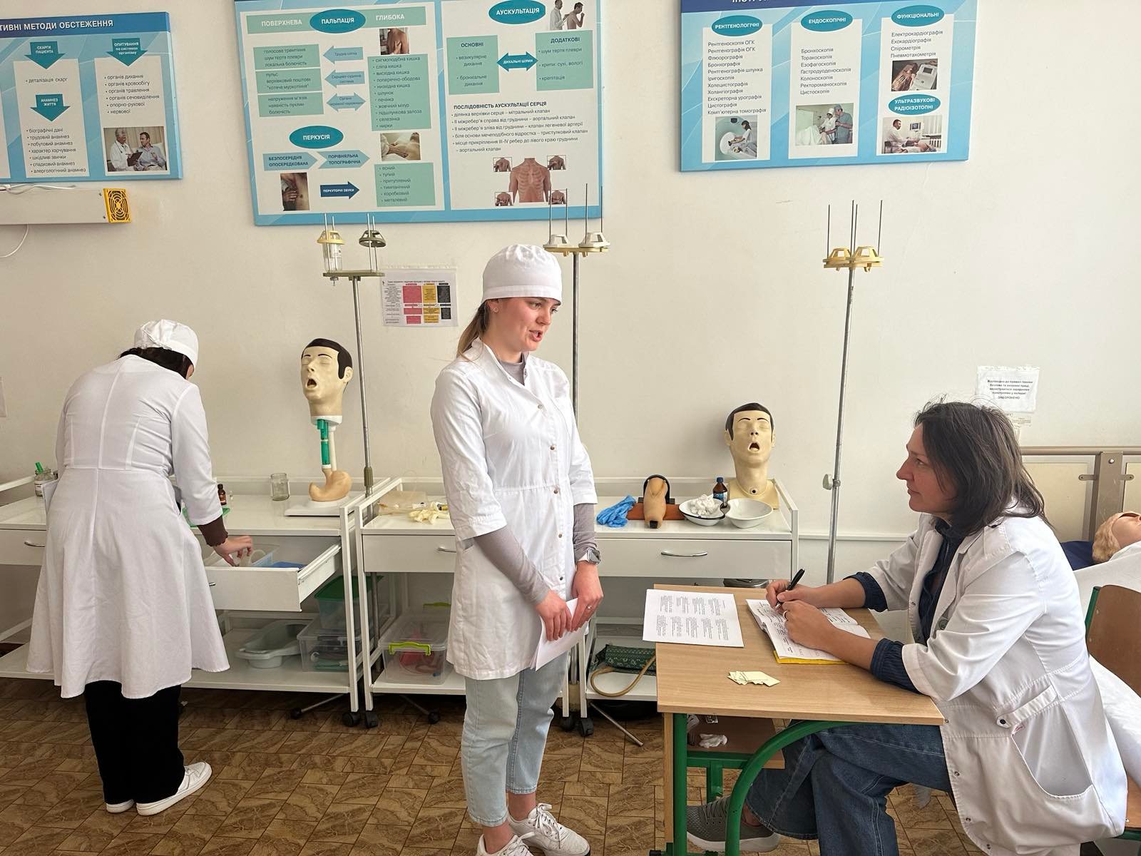 Зі щоденником виробничої практики та цифровим звітом студенти групи ІІІ-2 та ІІІ-3 першими прийшли на захист практики. У кабінетах хірургії, терапії а також медичному пункті вони здавали звіт з виробничої практики.