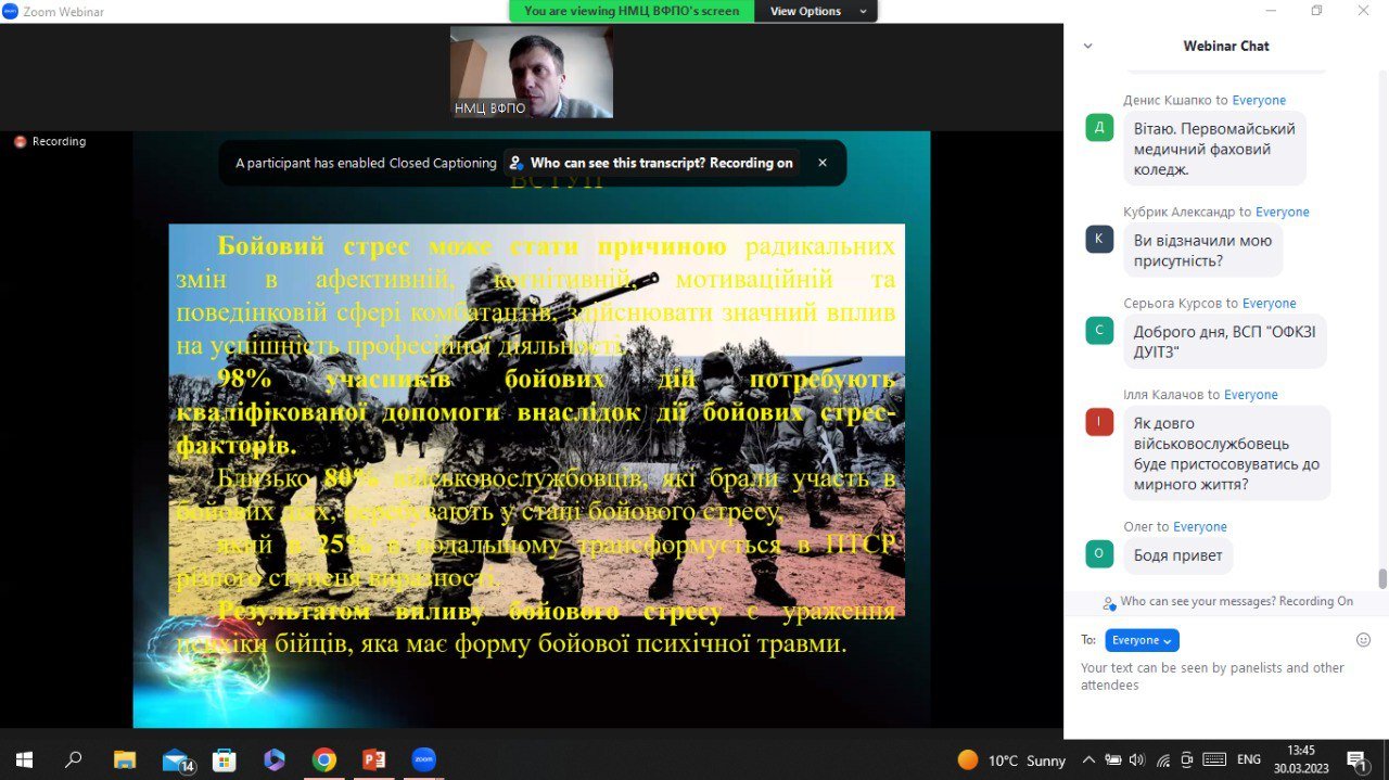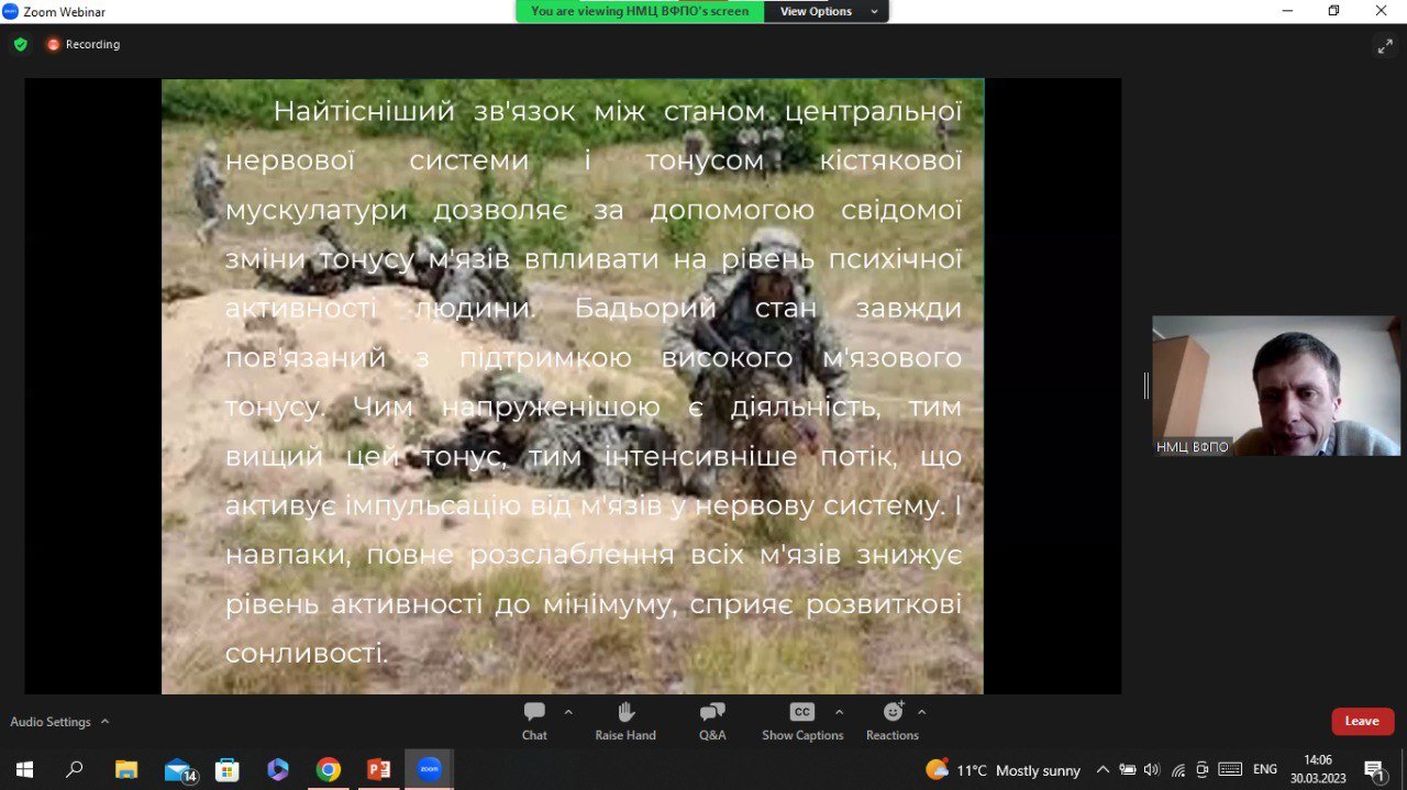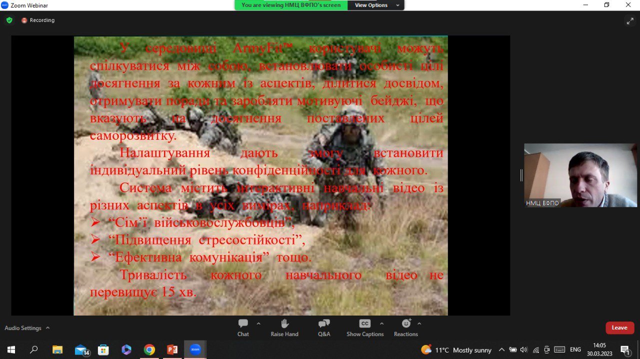 Науково-методичний центр вищої та фахової передвищої освіти передбачив проведення різних заходів 29 і 30 березня та 6 і 7 квітня. Спікерами на них виступають викладачі та практичні психологи закладів освіти Міністерства оборони України.