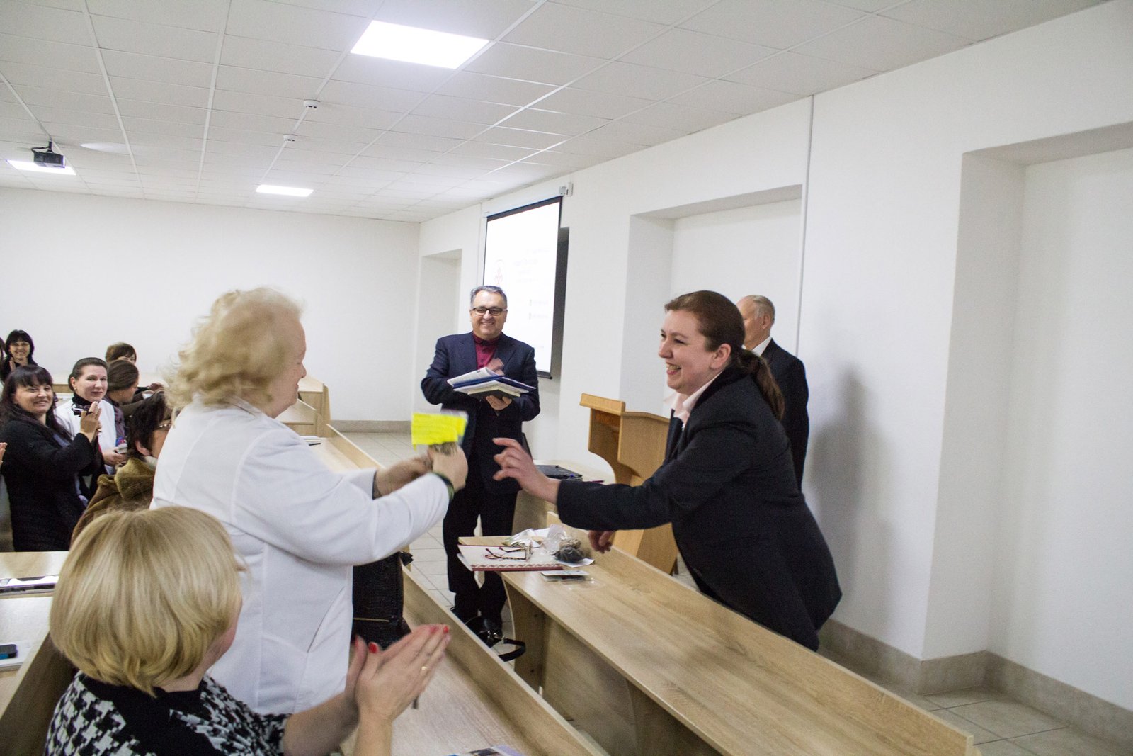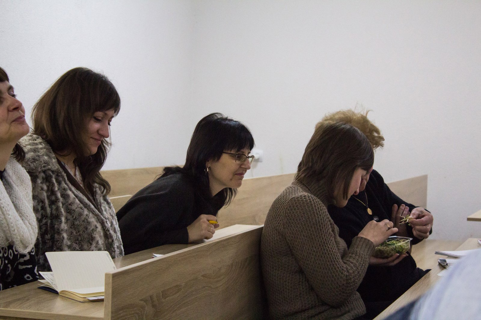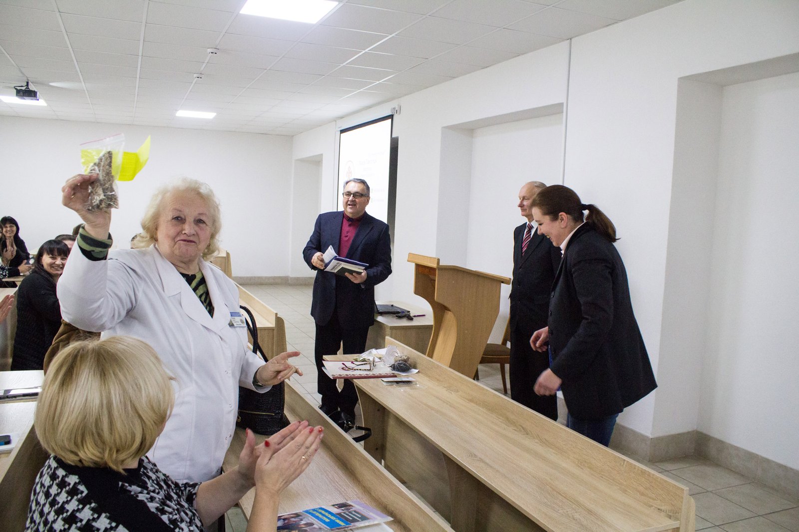 Не менш цікавим був виступ Марії Пахолок, відомого валеолога, фахівця з основ здоров’я, справжнього ентузіаста своєї справи. Змістовно насиченою була її мультимедійна презентація, яка торкалась пермакультури, індивідуальних програм оздоровлення, тестування стану здоров’я, лікарських трав, олій, проростків. Із собою Марія Пахолок принесла взірці чудодійних рослин, а також проінформувала присутніх про відзняті авторські відеофільми, які є в ютубі у вільному доступі. Щотижнево п. Марія проводить у місті Івано-Франківську школу здоров’я. Марія Пахолок подарувала для бібліотеки коледжу посібники з валеології.