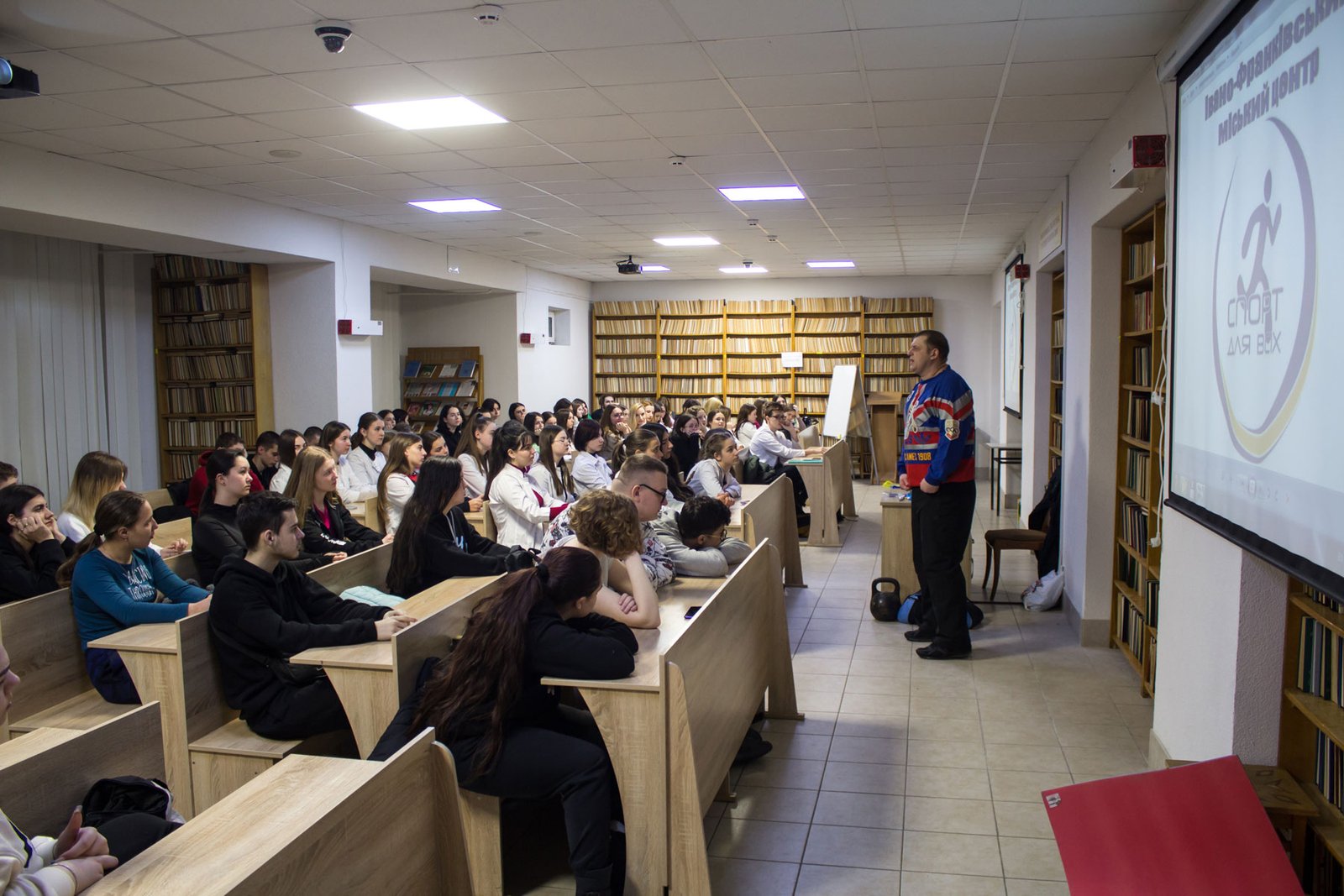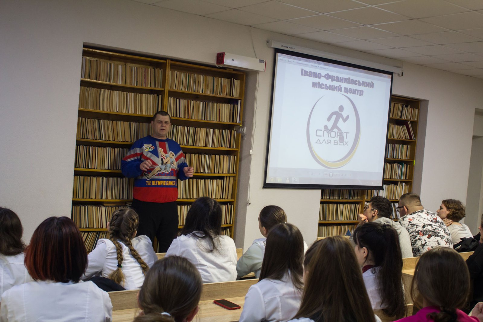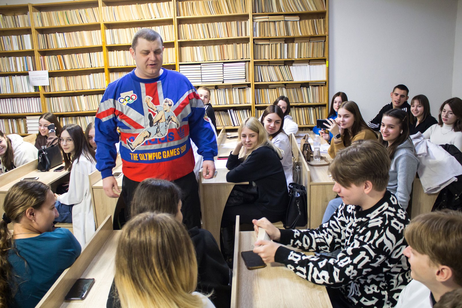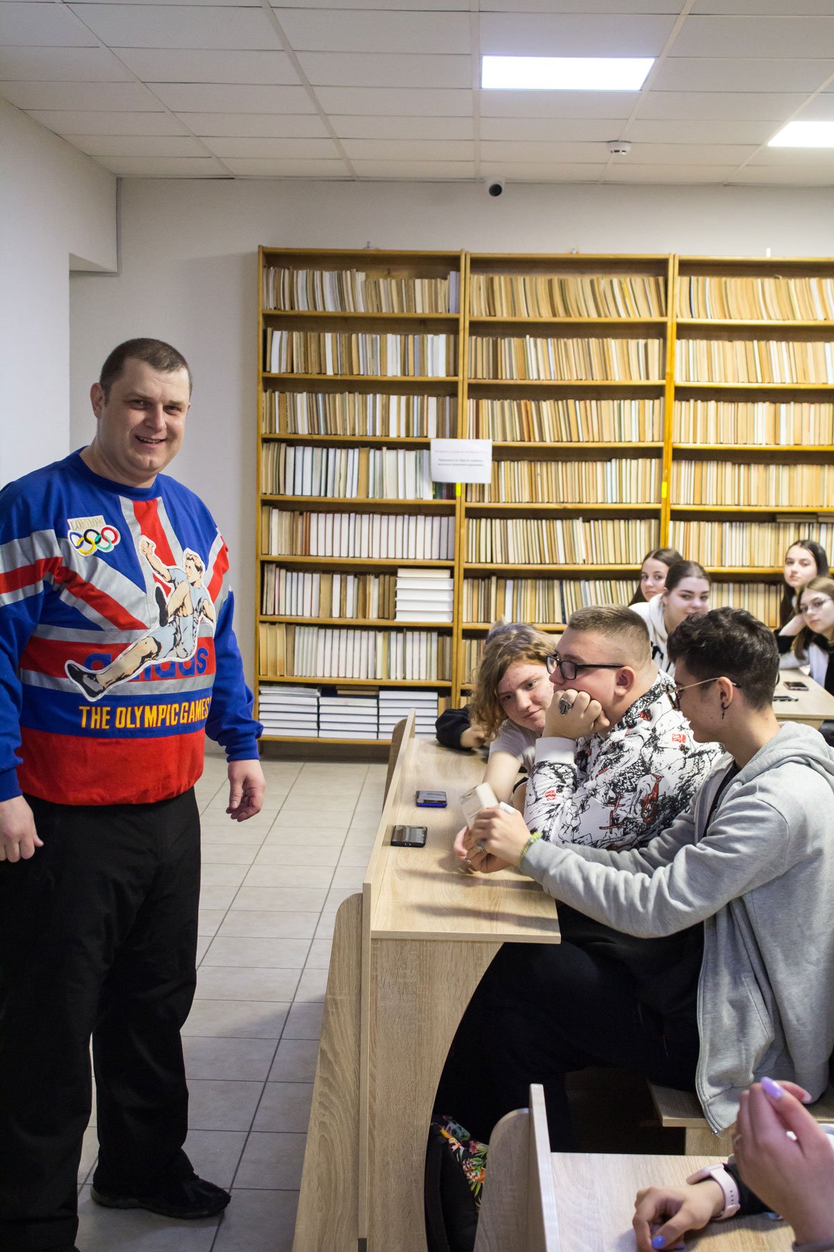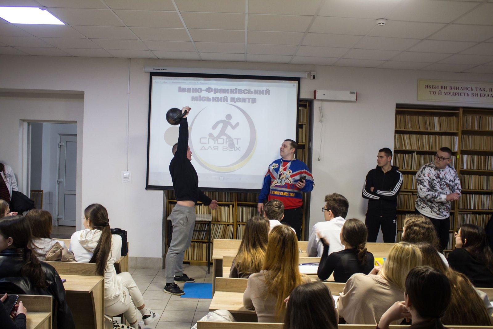 На другій парі відомий прикарпатський стронгмен, багаторазовий рекордсмен України Назарій Павлів розповів студентам про олімпійський рух і Олімпійські ігри, про прикарпатських олімпійців, поділився секретами активного і здорового способу життя, провів своєрідний майстерклас з силових видів спорту, де здобувачі освіти могли спробувати себе у підніманні гирь чи в інших вправах.