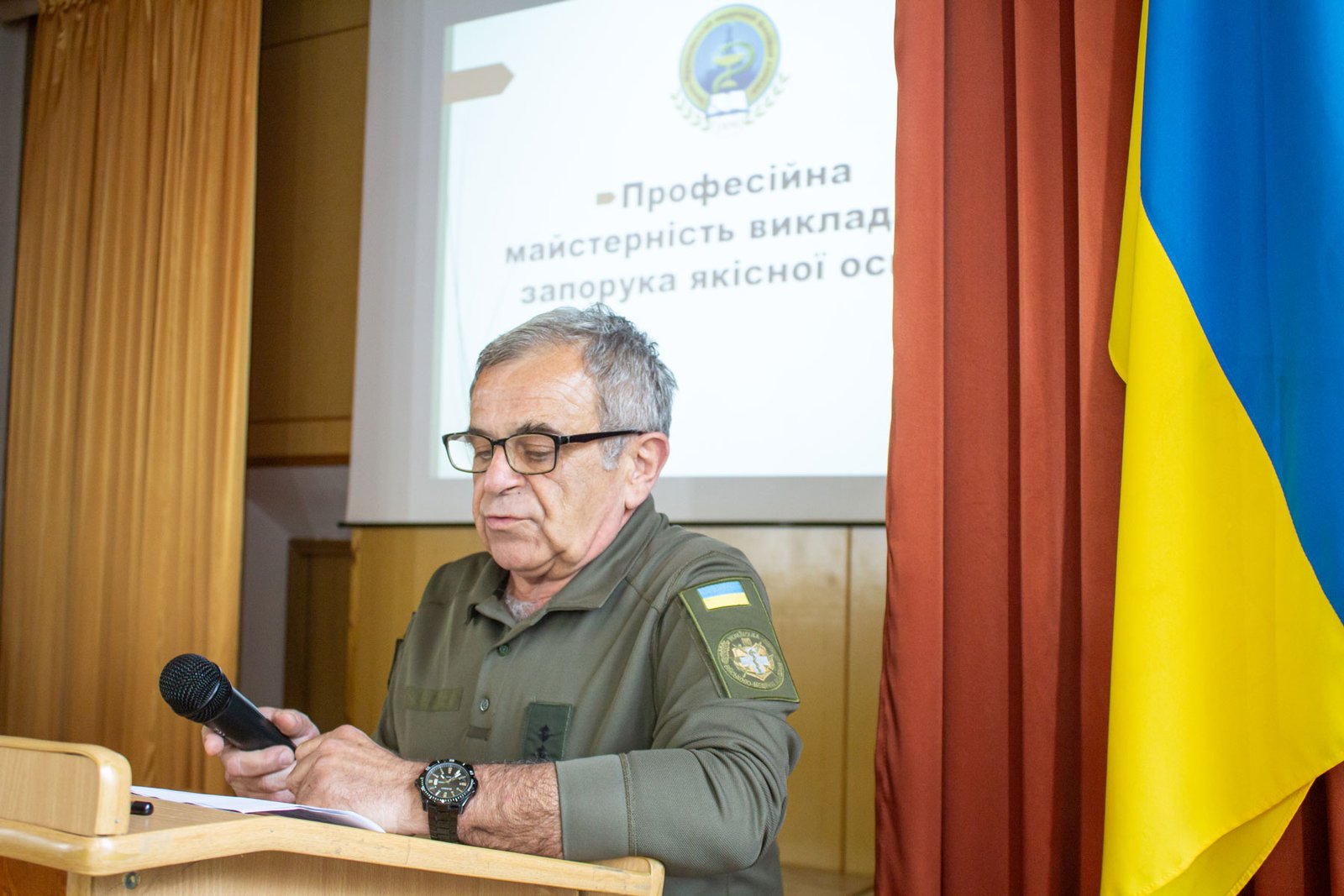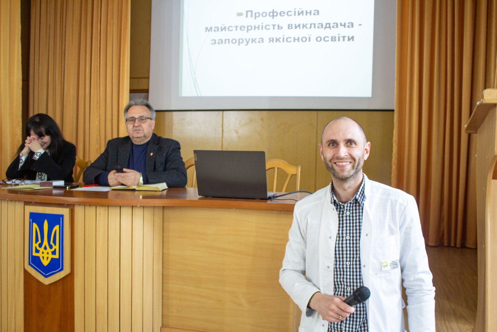 І розпочалося зібрання з приємної події – канцлер Івано-Франківсько-Галицької єпархії ПЦУ о. Іван Лапка від імені Предстоятеля Православної Церкви України Епіфанія вручив директору ІФМФК Володимиру Васильовичу Стасюку відзнаку святого великомученика і цілителя Пантелеймона. Така недержавна нагорода заснована ПЦУ «за збереження дару життя». А Володимир Васильович наголосив, що розцінює її як заслужену нагороду всього колективу коледжу.