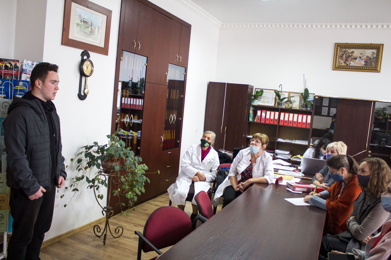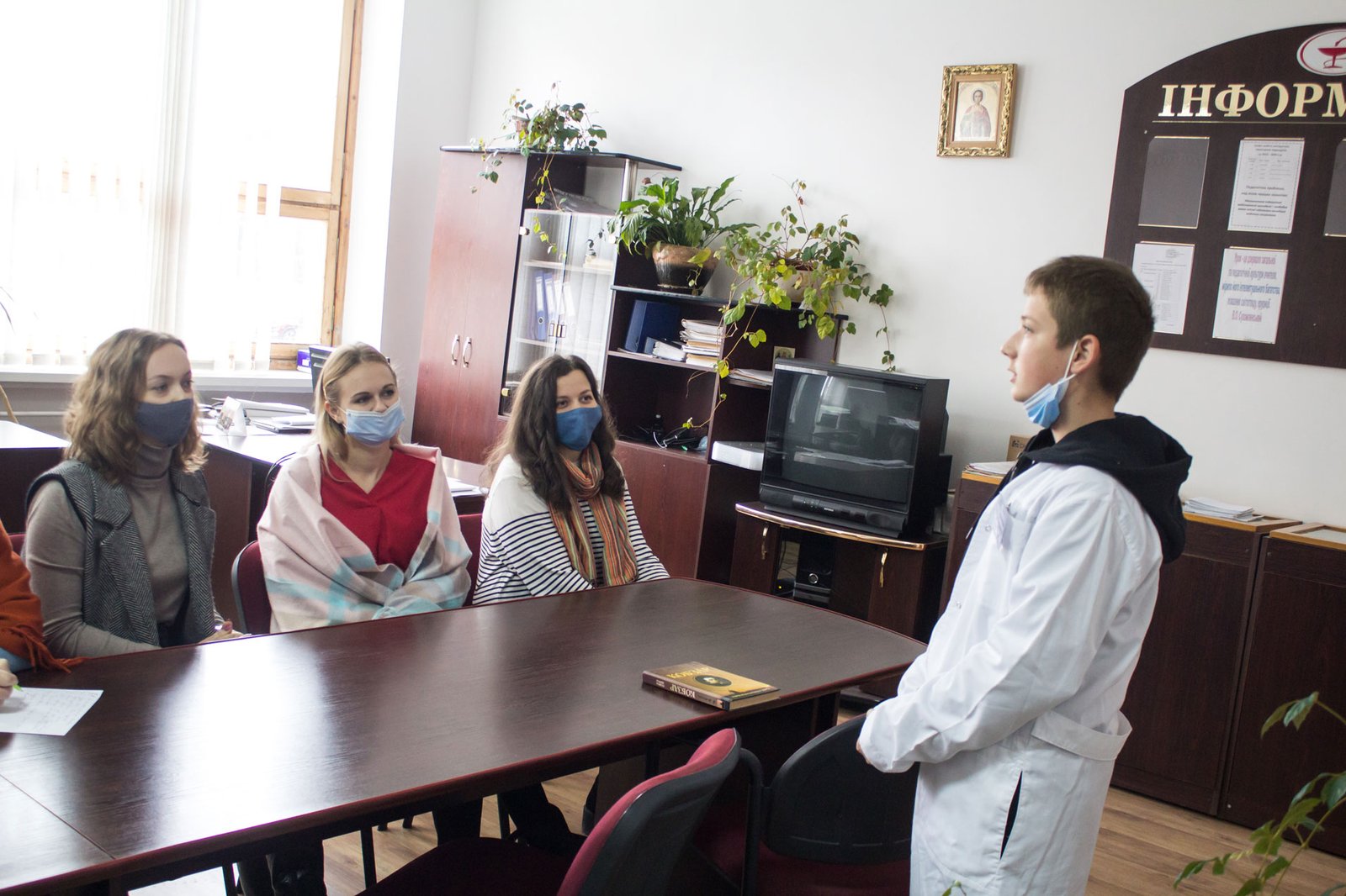А от загальноколеджний відбірковий конкурс проводився в очному форматі, однак з дотриманнях заходів протиепідемічної безпеки з метою запобігання поширенню гострої респіраторної хвороби COVID-19, спричиненої коронавірусом SARS-CoV-2. З огляду на те, що ще не запущена система опалення у коледжі, проходив він в методкабінеті.