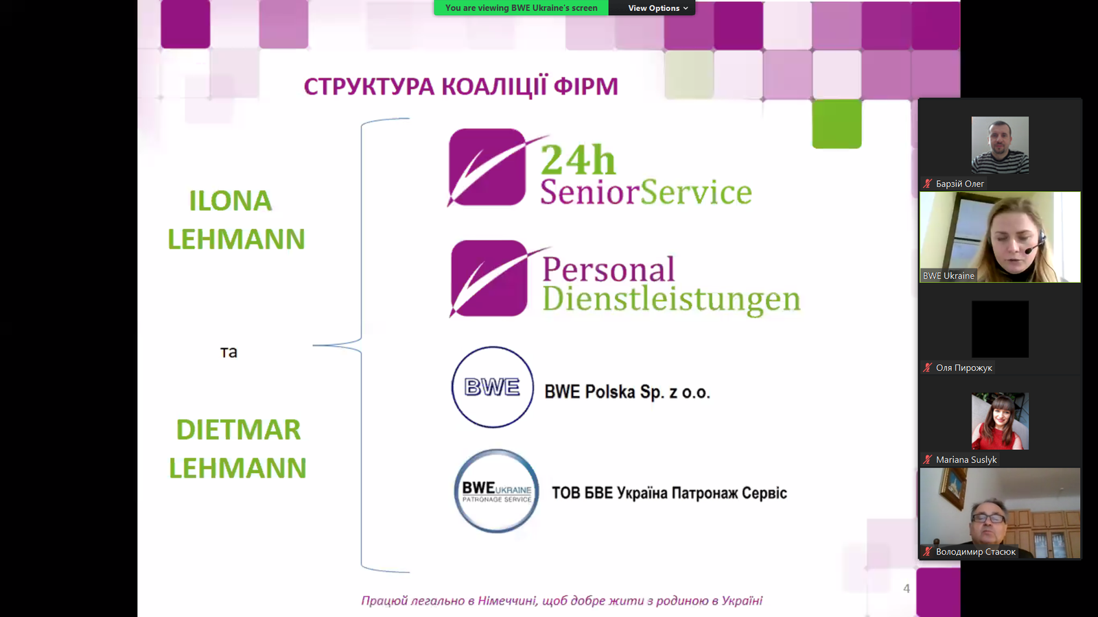Річ у тім, що лише в Німеччині є 3,5 мільйона осіб похилого віку, які потребують опіки. Та бракує медичного персоналу для догляду за ними – опікунів і особливо медсестер. Бо в таких закладах – так вимагає законодавство Німеччини – половина медсестер повинні бути дипломованими, сертифікованами саме в цій країні. Тож Програма Ausbildungsakademie BWE Ukraine зацікавлена в українських медсестрах, які відзначаються хорошим рівнем фахової підготовки, а тому надає допомогу у визнанні їхніх дипломів медсестер і працевлаштуванні в Німеччині.