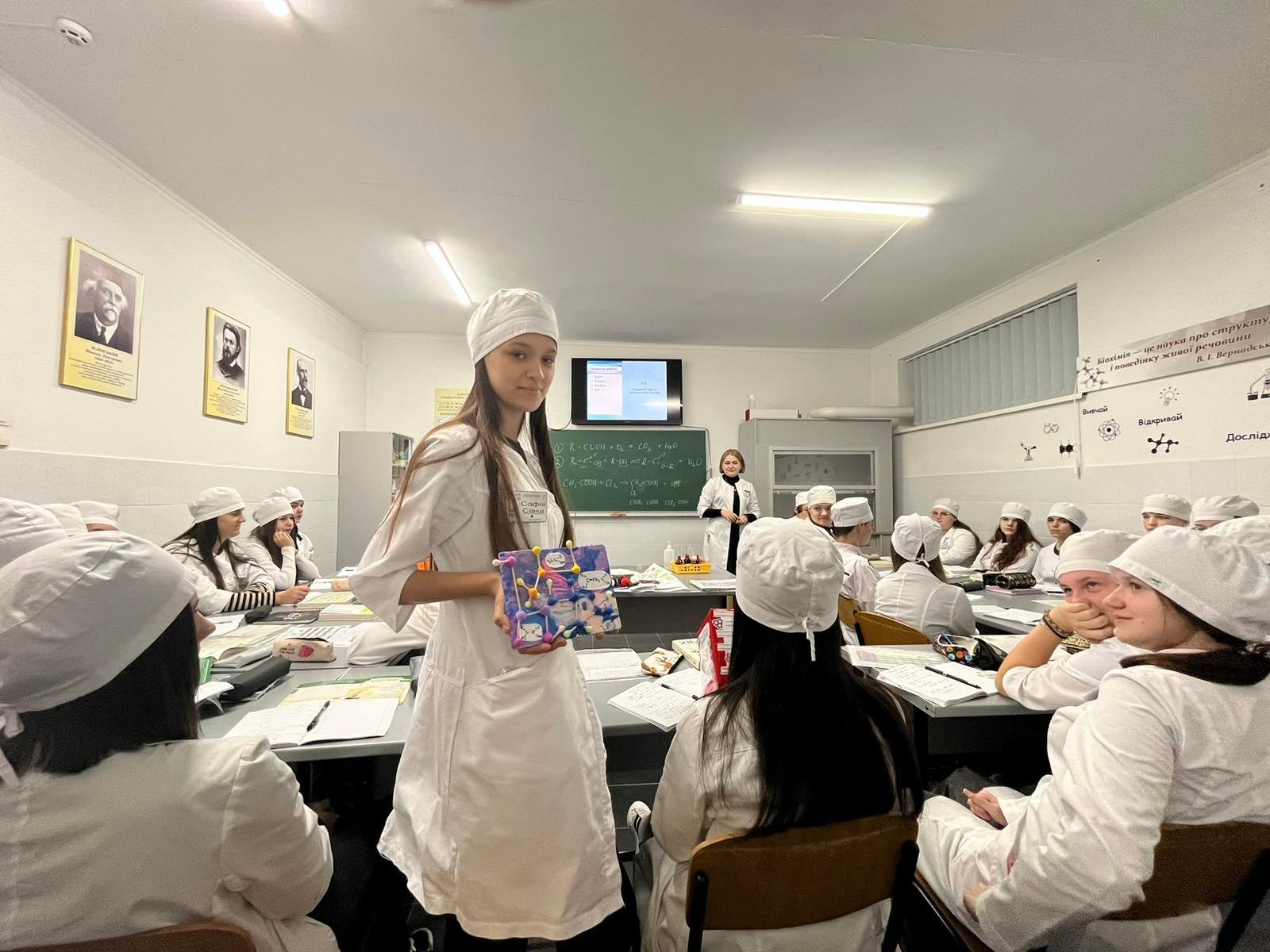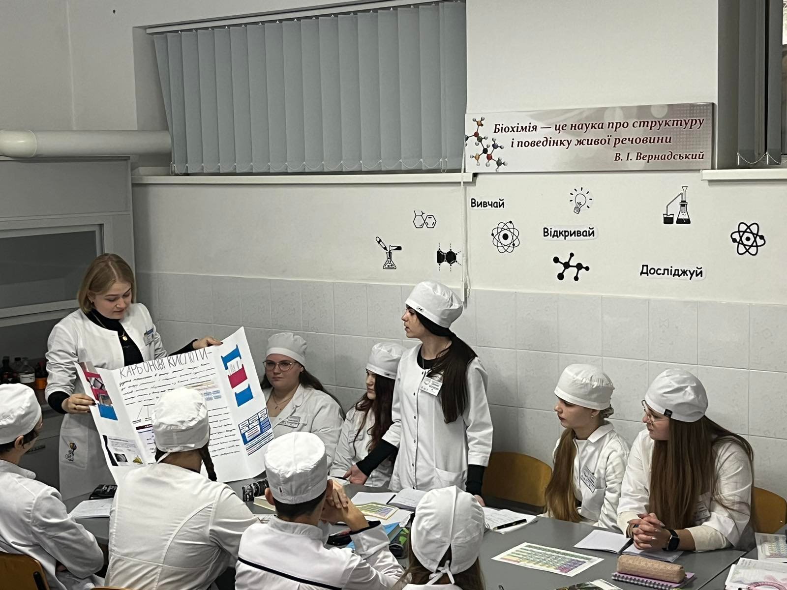 Здобувачі освіти мали змогу самостійно створити трьохвимірні моделі молекул, експериментально продемонструвати хімічні властивості кислот, провести власні дослідження і виконати цікаві проєкти. Як виявляється, хімія може бути цікавою і пізнавальною, що продемонструвала викладачка при висвітленні даної теми.
