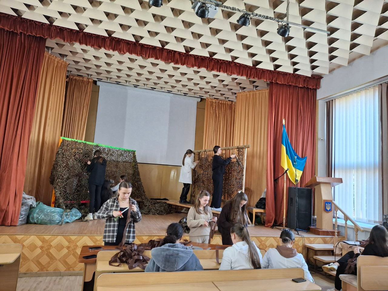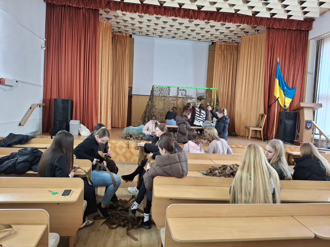 Волонтерська справа, до якої долучаються і студенти, і викладачі коледжу – плетіння маскувальних сіток разом з благодійною організацією «БФ «ДОБРО-ДІЇ» – ВЦ «Маскувальні феї». Раніше здобувачі освіти робили це в парафіяльно-гарнізонному храмі Різдва Христового ПЦУ, де настоятелем колишній випускник коледжу Михайло КУДЛА, а з листопада відкрито спеціальну локацію в ІФМФК – в актовій залі під час перерв чи у вільний від навчання час можна долучитися до такої ініціативи.