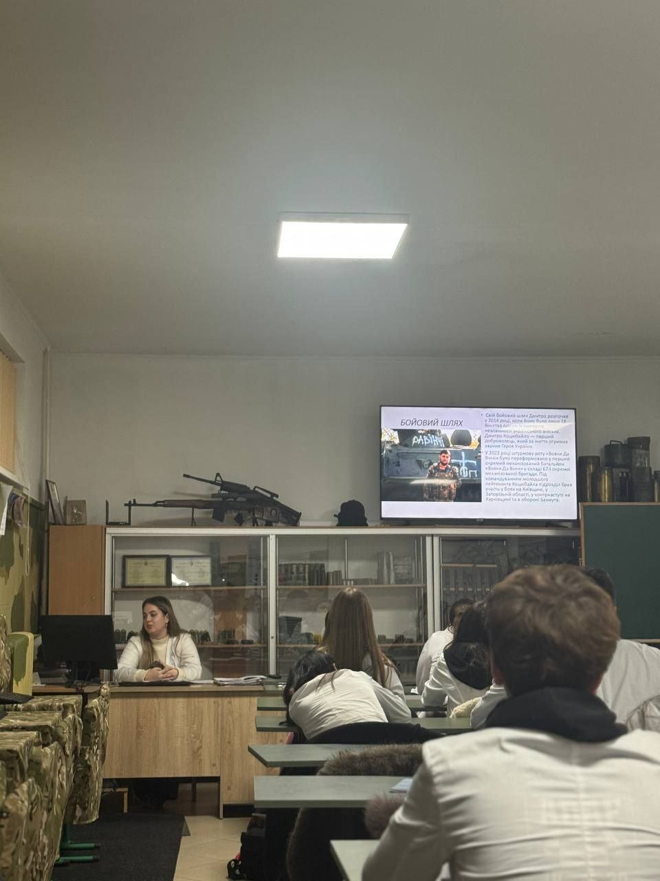 Завдяки викладачам циклу військово-медичної підготовки, фізичного виховання і захисту України та заступниці директора з виховної роботи Наталії Мальованчук у навчальних групах на різних курсах відбулися інформації про захисників України на парах із захисту України та ВМП.
