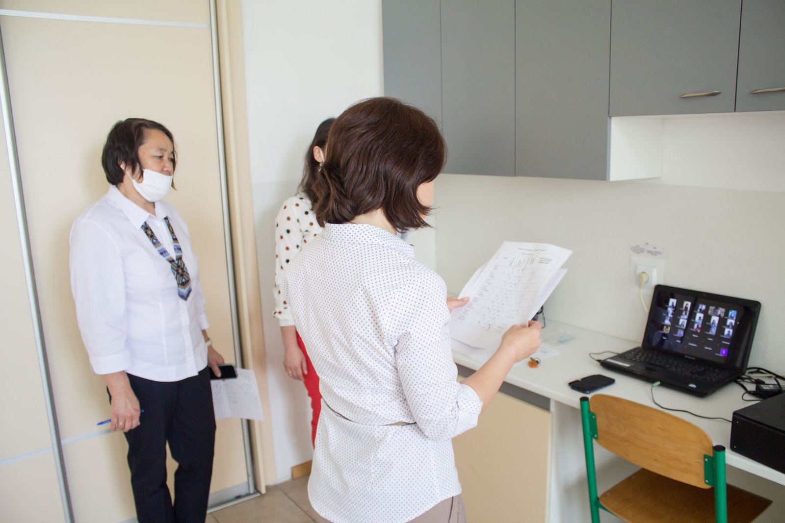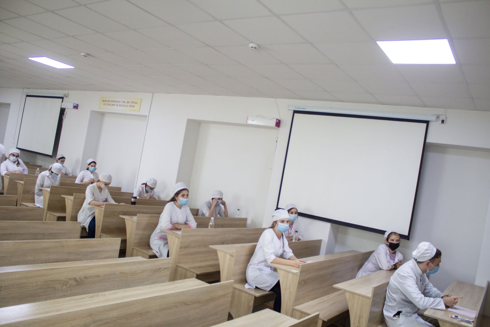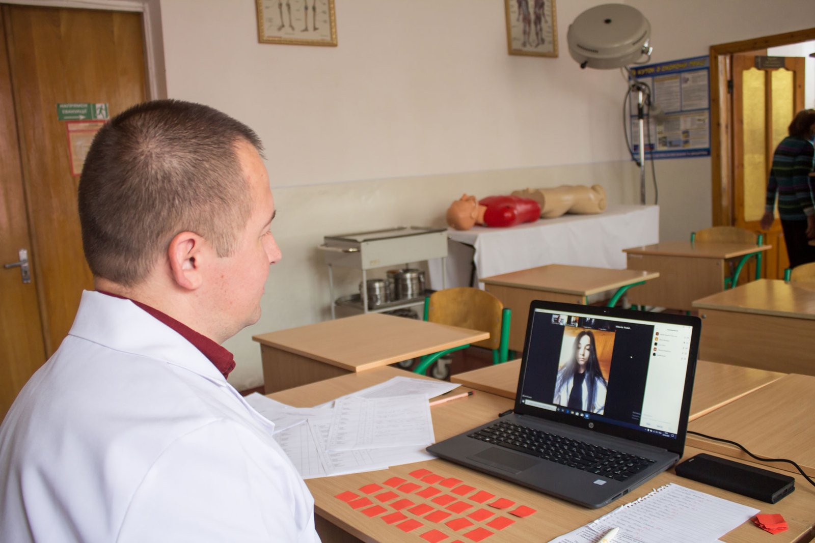 ...Незвично, коли між очима викладачів і студентів – екрани комп’ютерів. Викладачі приймають іспит з навчальних кабінетів коледжу, а студенти знаходяться вдома. За інтер’єром навіть можна здогадатися, що це кухня чи вітальня (де кому зручно). Але вдома – не означає в спортивному костюмі чи піжамі. Всі в білих халатах, шапочках, дехто з бейджиками. А дехто навіть в масках, і тоді викладач зазначає, що можна маску зняти, бо це ж вдома.