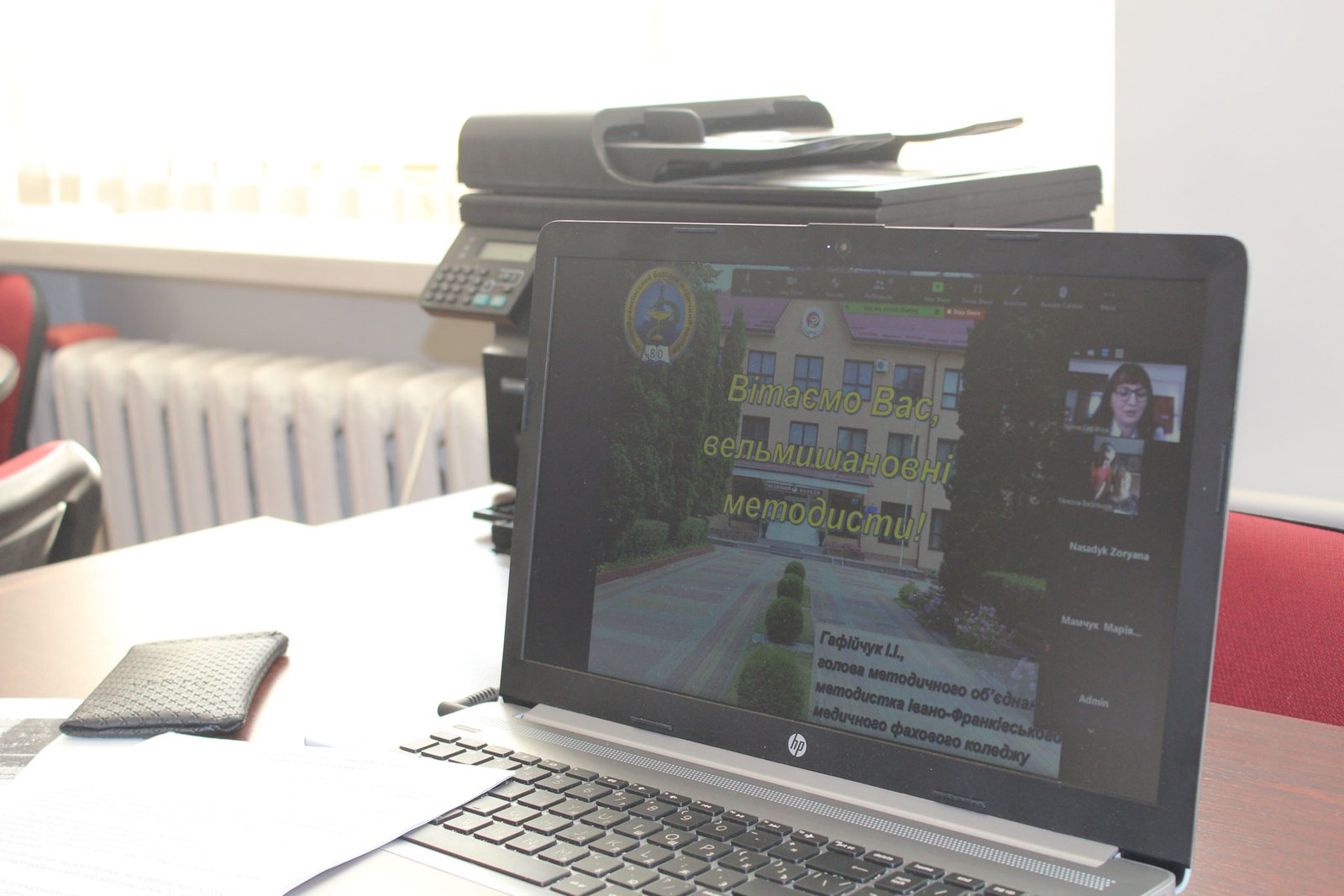 У зв’язку з пандемію коронавірусу перше засідання обласного методичного об’єднання методистів закладів фахової передвищої освіти довелося провести в онлайн-форматі на платформі Zoom. Проходило воно на базі Івано-Франківського медичного фахового коледжу (Івано-Франківського базового медичного коледжу), адже головою цього методоб’єднання 8 жовтня ц. р. обрана методистка ІФМФК Ірина Іванівна Гафійчук. У засіданні також взяли участь заступниця директора з навчально-методичної роботи Олександра Денисівна Воєвода, заступниця директора з виховної роботи Наталія Валеріївна Мальованчук, методистка коледжу Наталія Андріївна Римар. Учасники засідання обговорювали проблеми дистанційного навчання і підвищення кваліфікації.