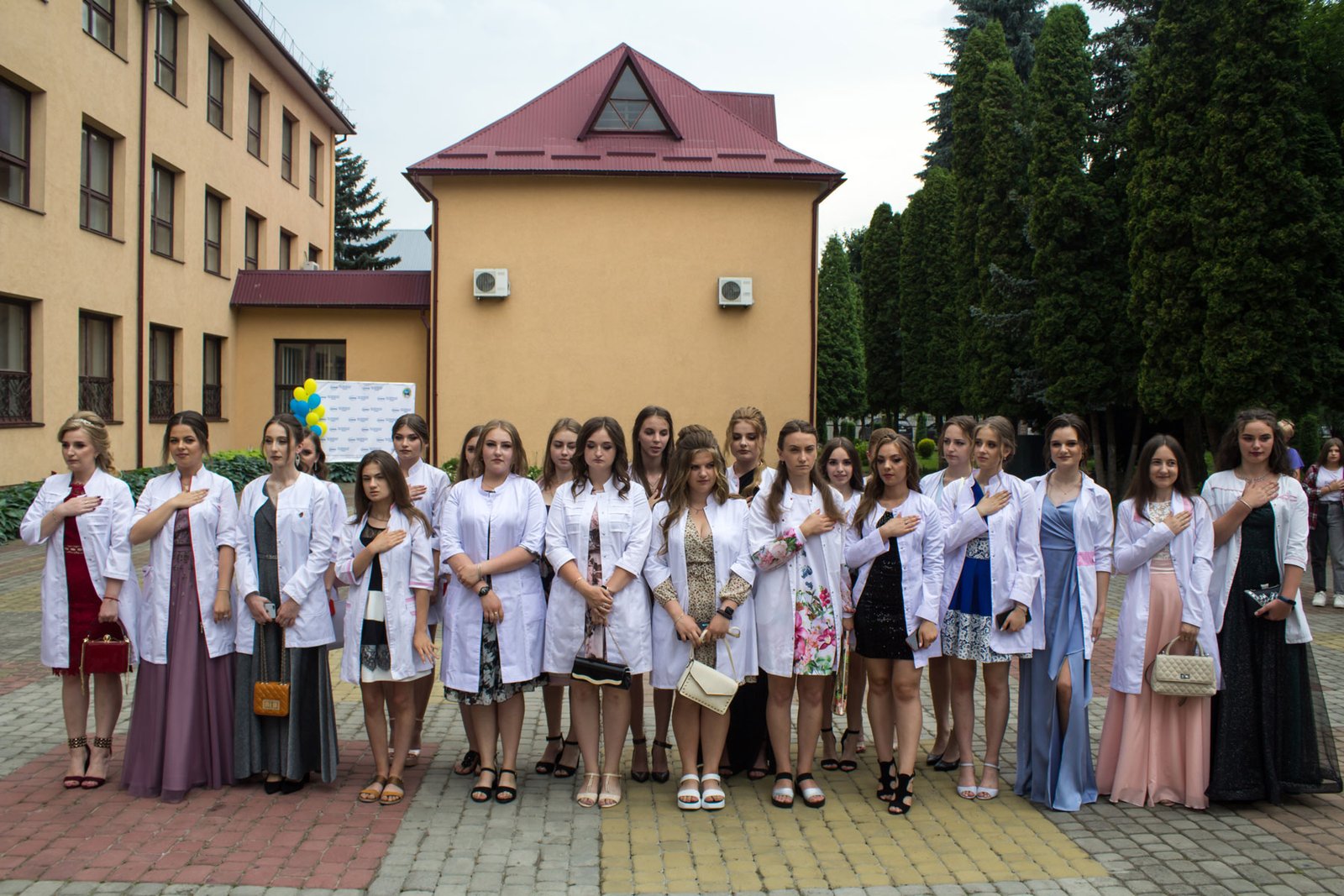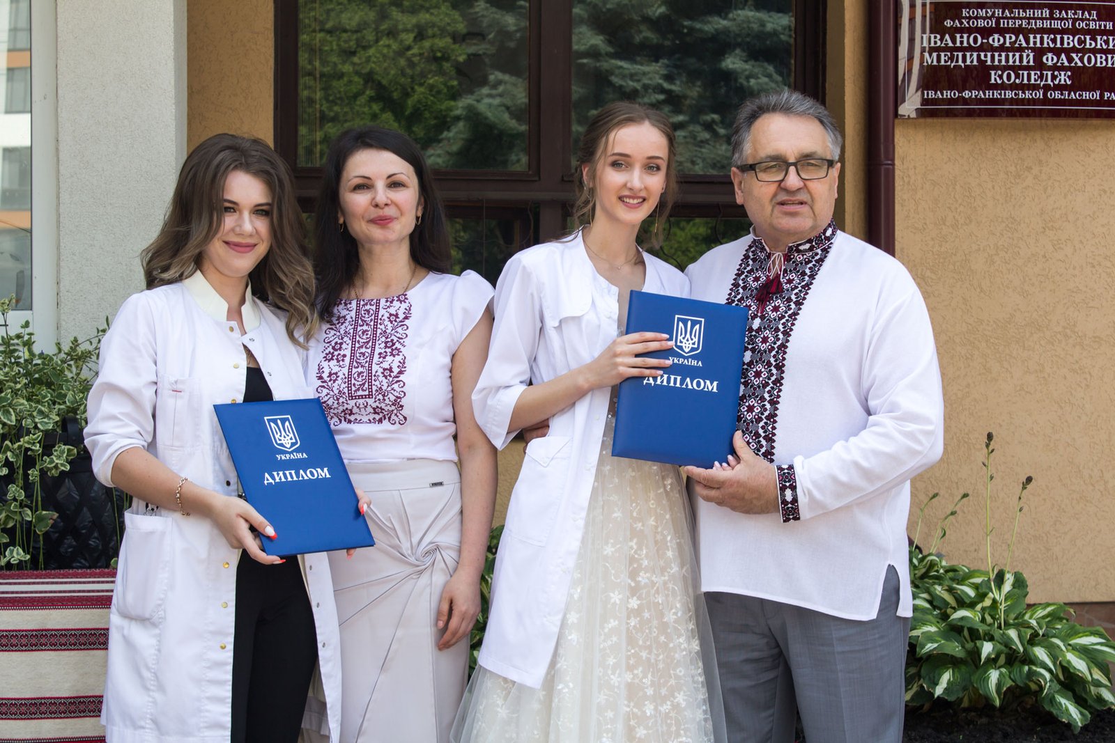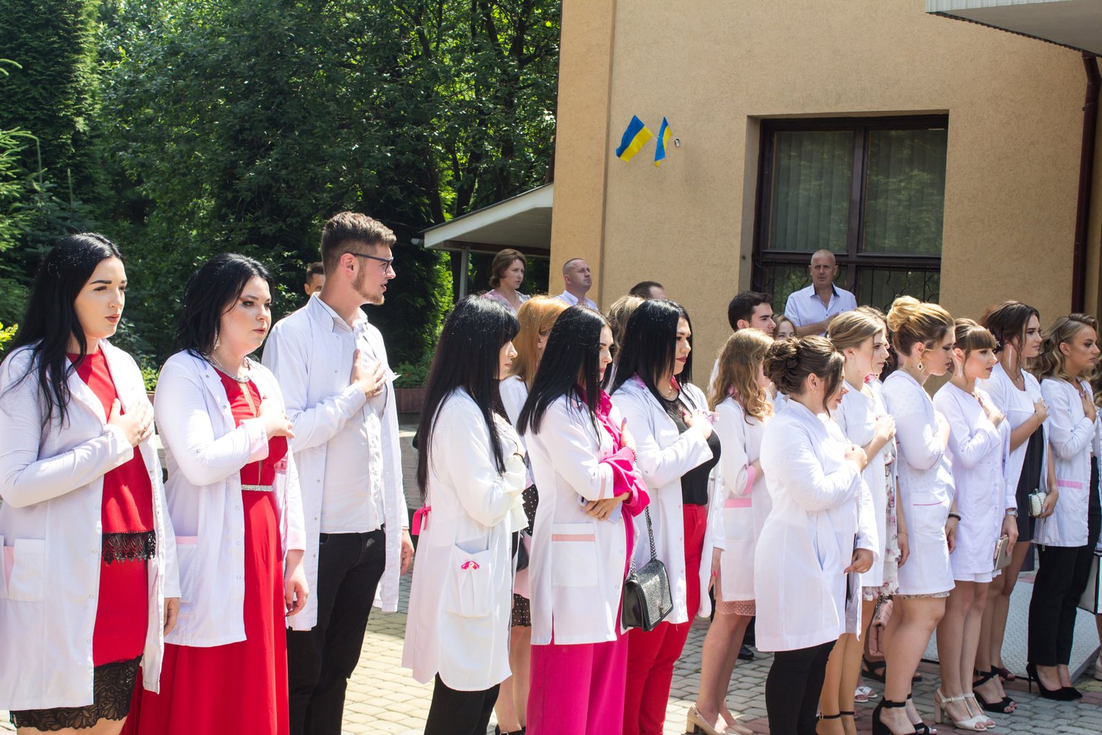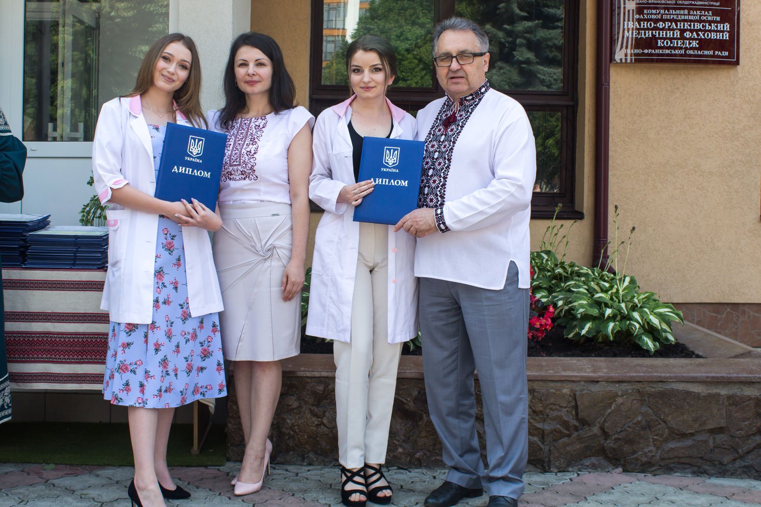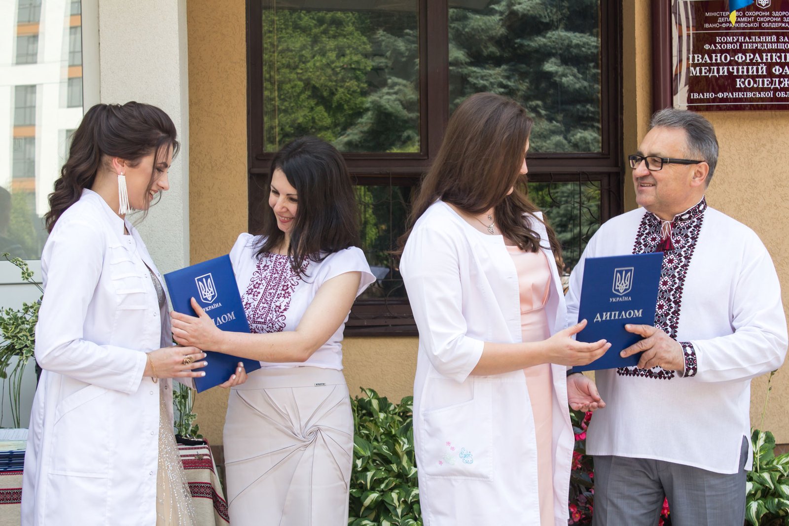 Згадували посвяту у першокурсники без двох місяців чотири роки тому – на подвір’ї перед навчальним корпусом і у білих халатах. Сьогодні на свято випускного теж зібралися не в залі і теж поверх ошатного вбрання одягли білі халати, як символ майбутньої професії. Це особливий день і для випускників, і для їхніх батьків, і для викладачів.
