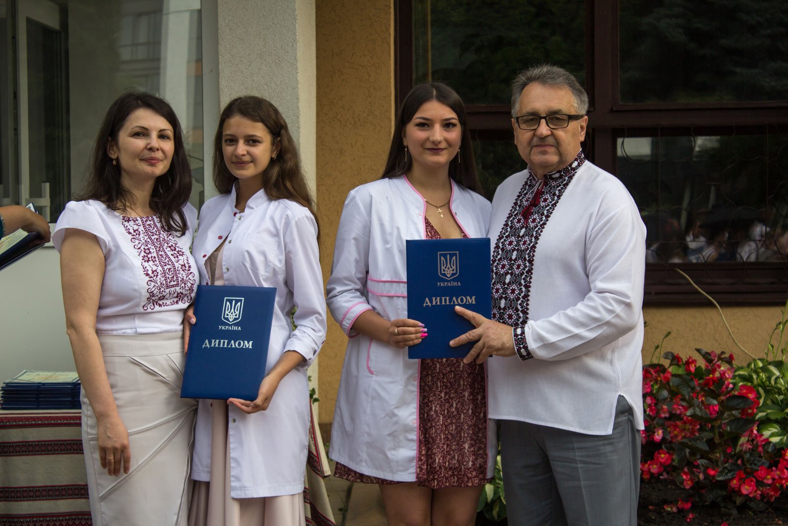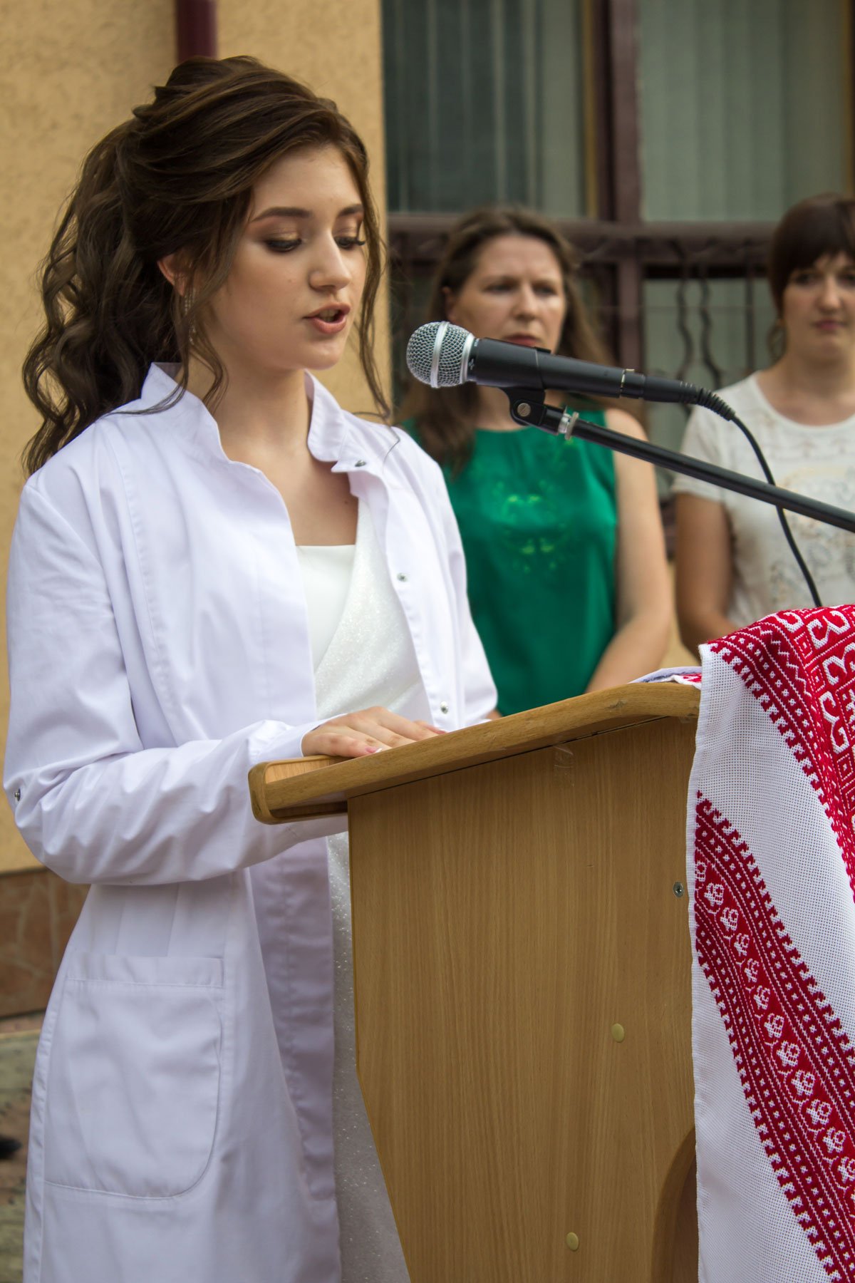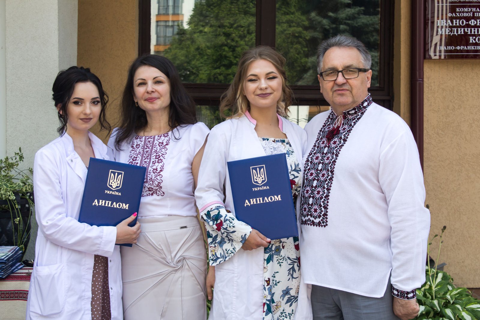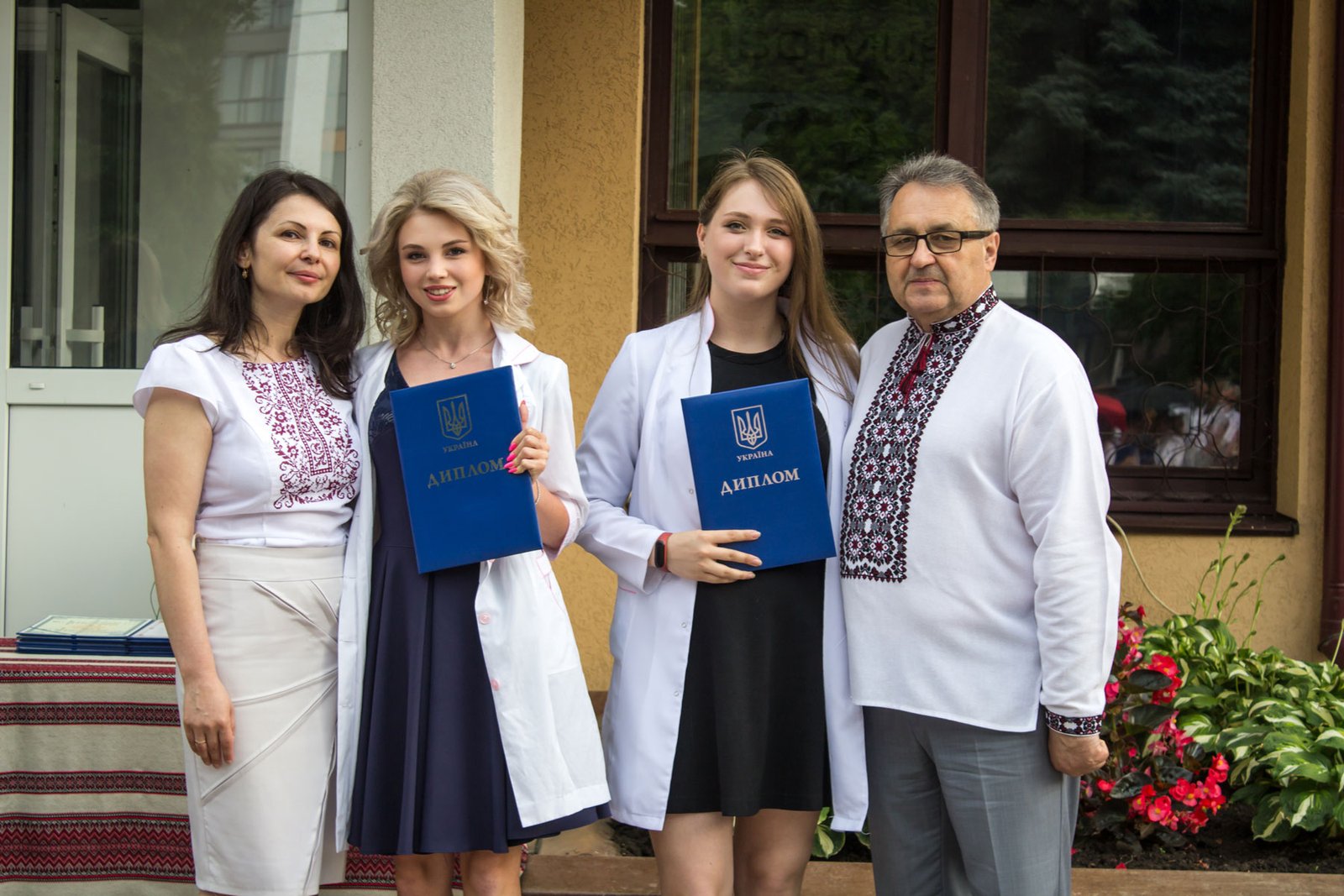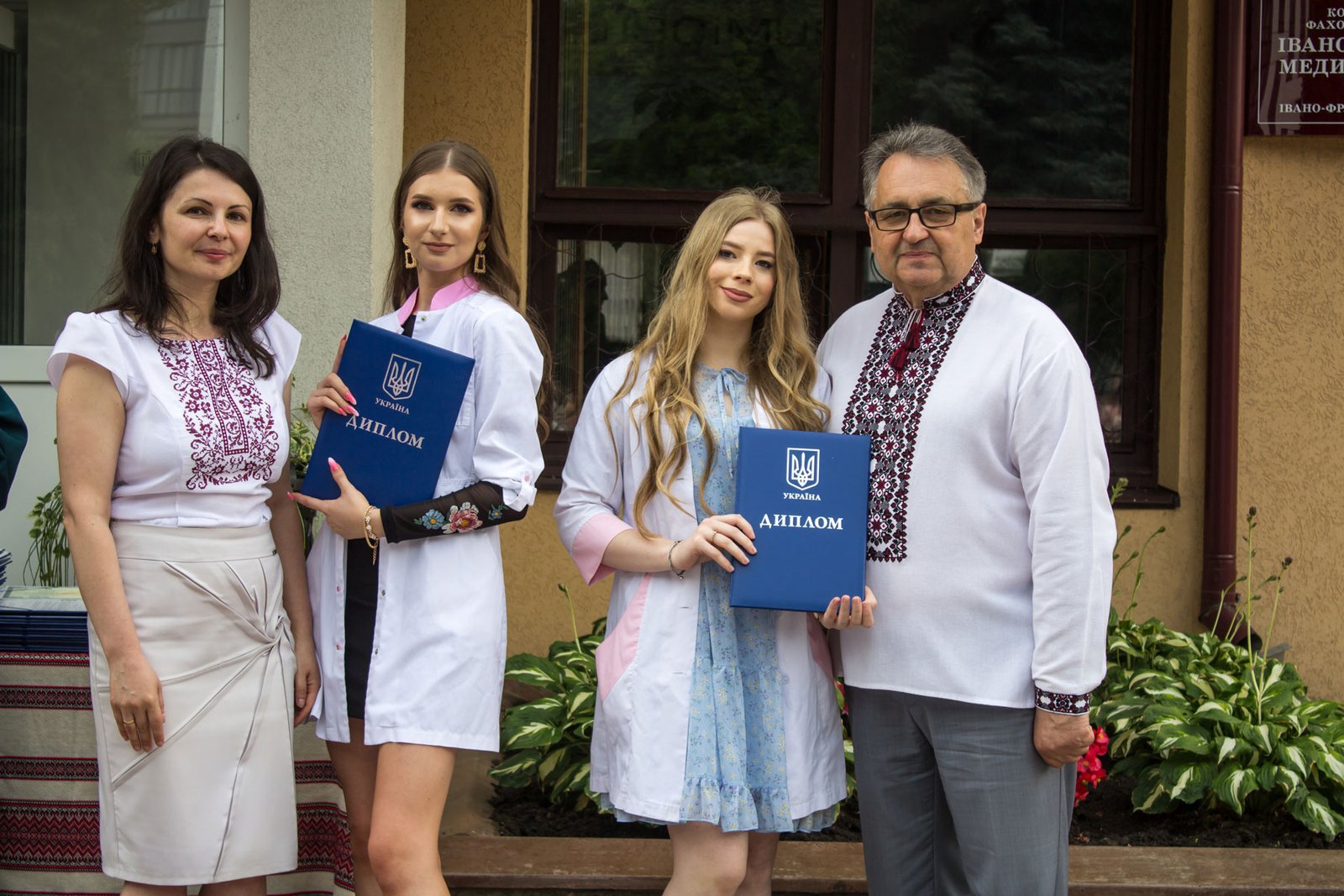 Згадували посвяту у першокурсники без двох місяців чотири роки тому – на подвір’ї перед навчальним корпусом і у білих халатах. Сьогодні на свято випускного теж зібралися не в залі і теж поверх ошатного вбрання одягли білі халати, як символ майбутньої професії. Це особливий день і для випускників, і для їхніх батьків, і для викладачів.
