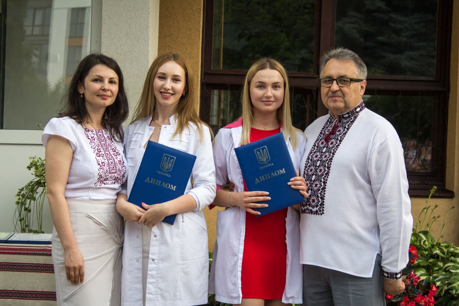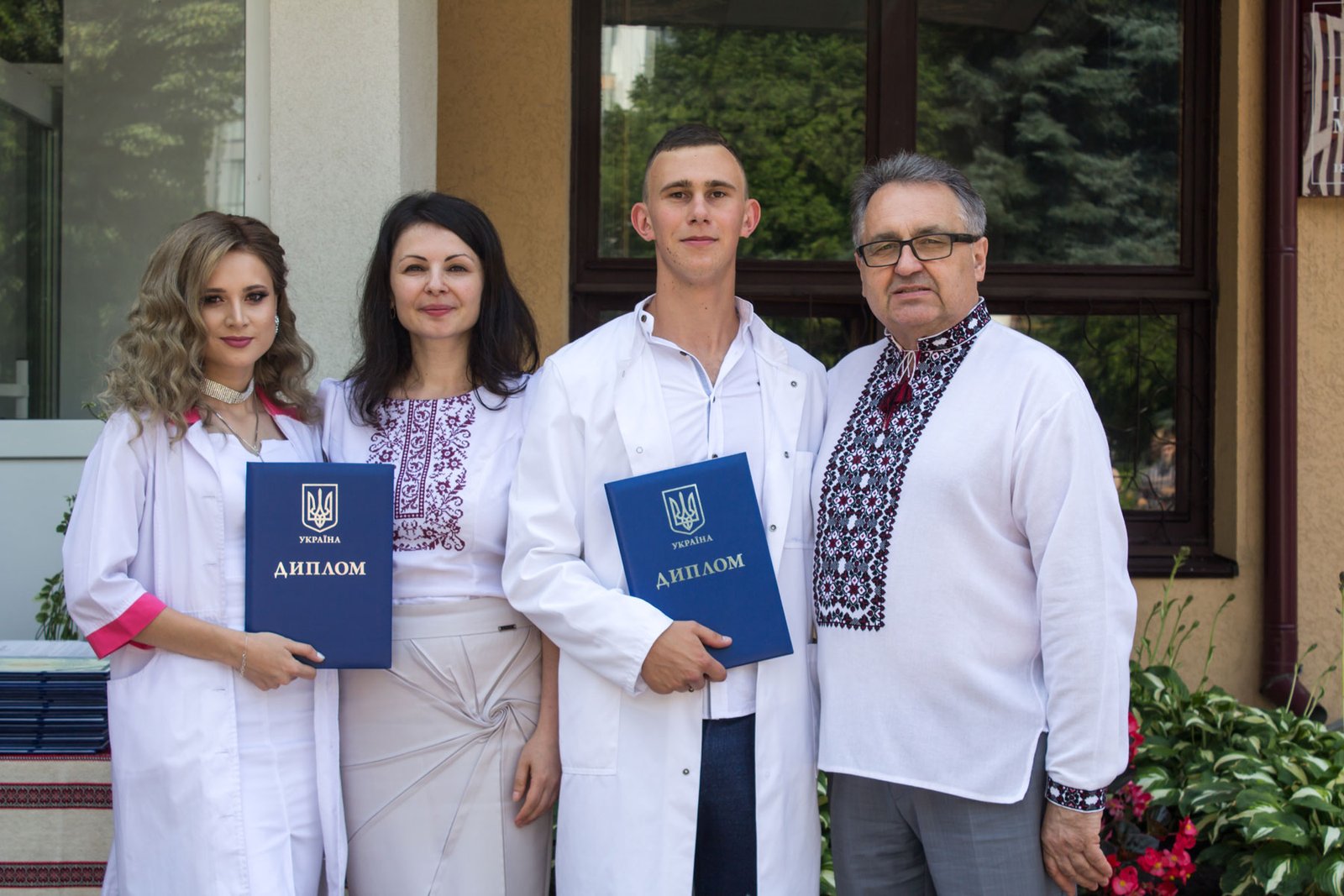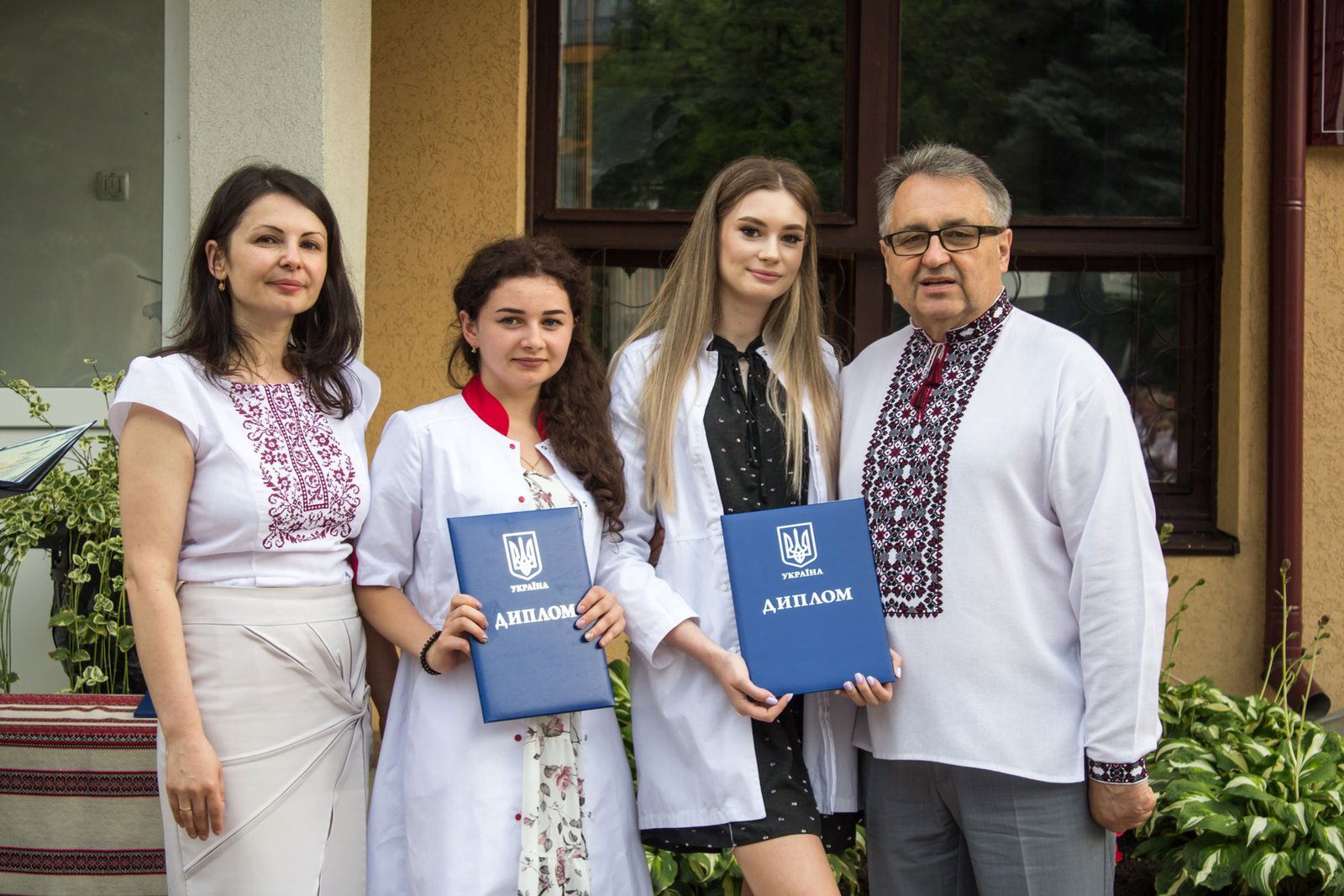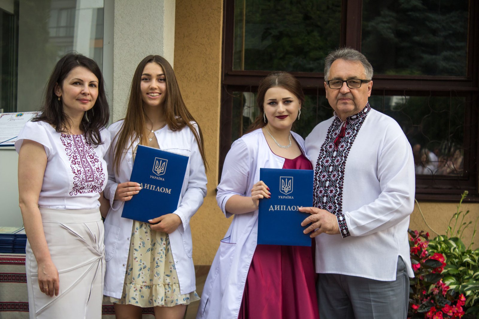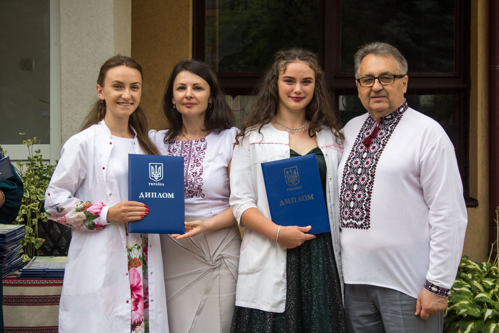 Згадували посвяту у першокурсники без двох місяців чотири роки тому – на подвір’ї перед навчальним корпусом і у білих халатах. Сьогодні на свято випускного теж зібралися не в залі і теж поверх ошатного вбрання одягли білі халати, як символ майбутньої професії. Це особливий день і для випускників, і для їхніх батьків, і для викладачів.