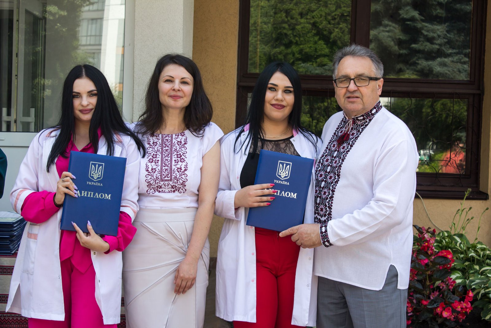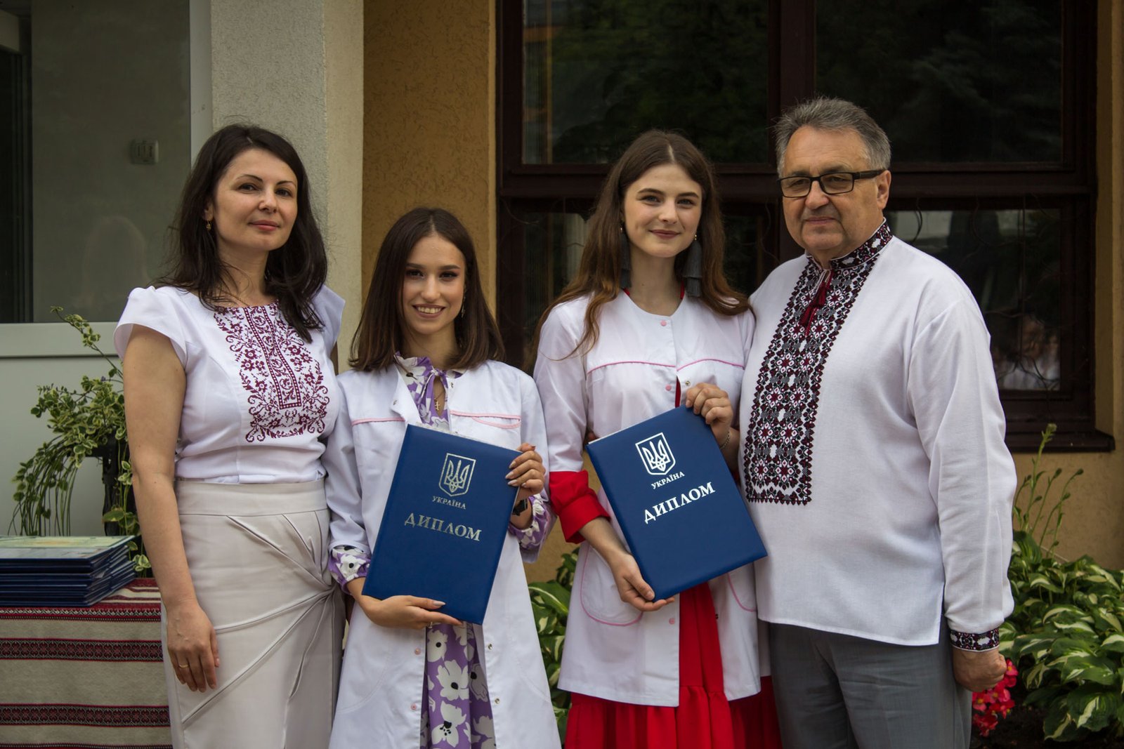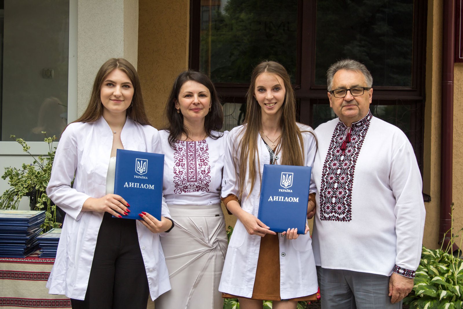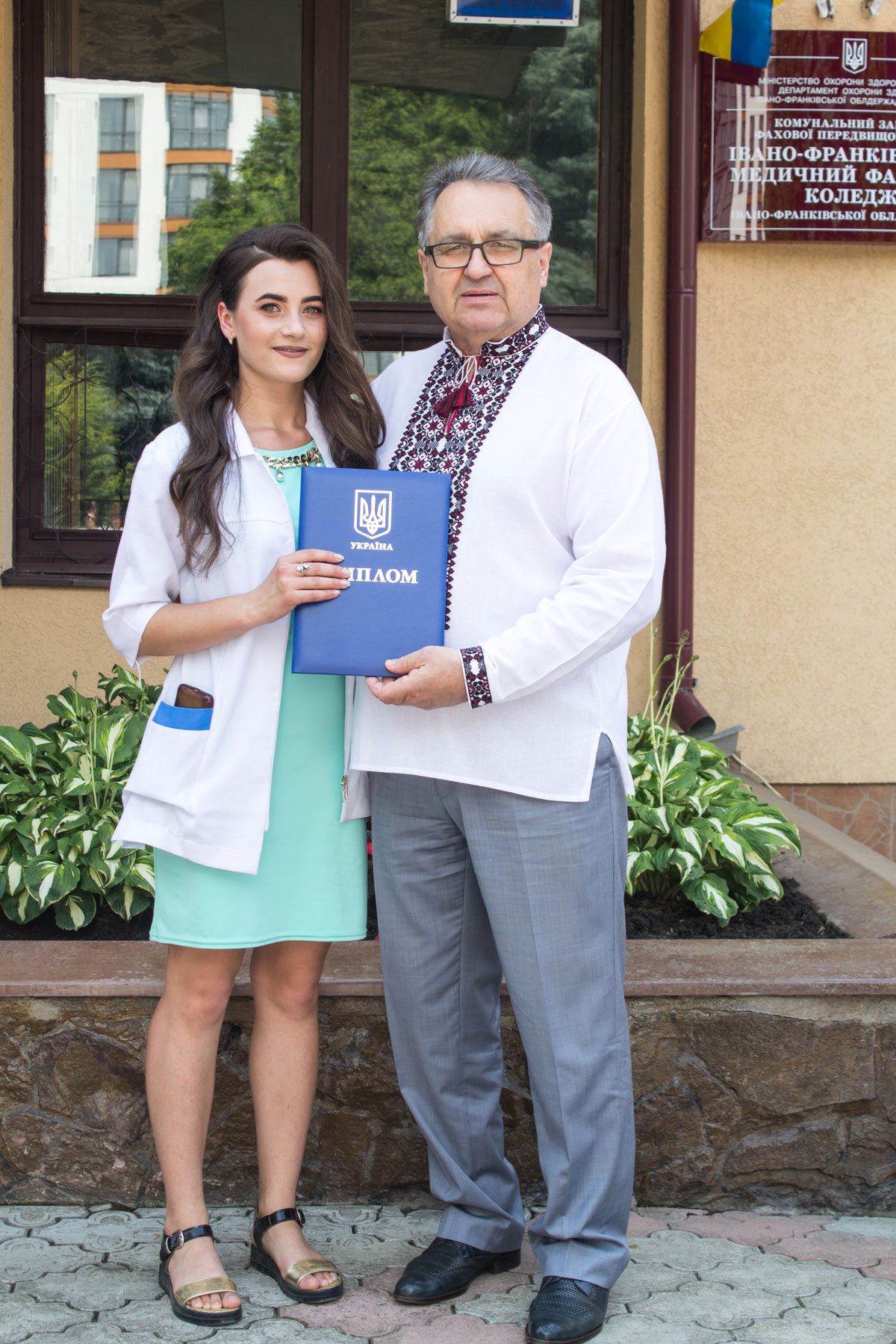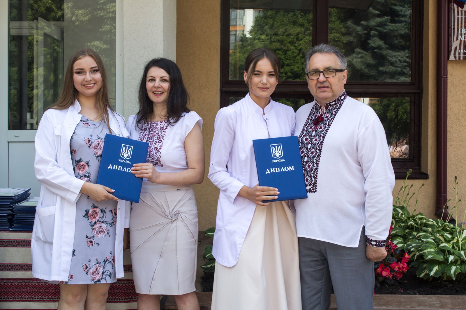 Згадували посвяту у першокурсники без двох місяців чотири роки тому – на подвір’ї перед навчальним корпусом і у білих халатах. Сьогодні на свято випускного теж зібралися не в залі і теж поверх ошатного вбрання одягли білі халати, як символ майбутньої професії. Це особливий день і для випускників, і для їхніх батьків, і для викладачів.