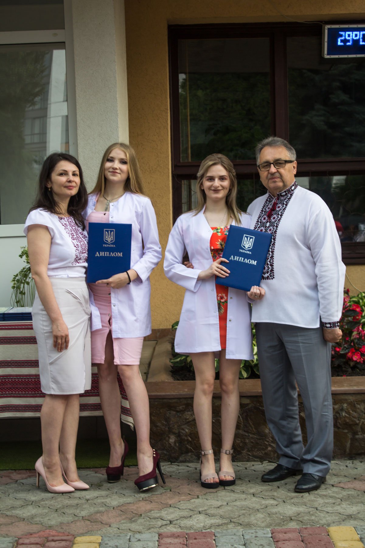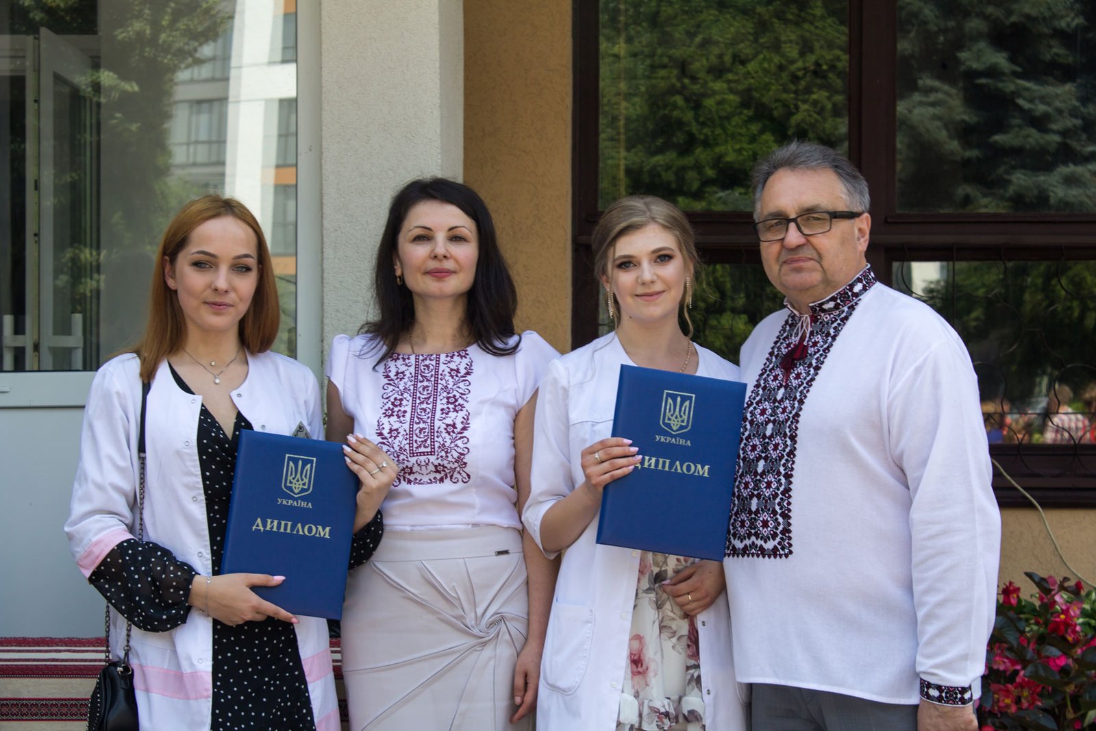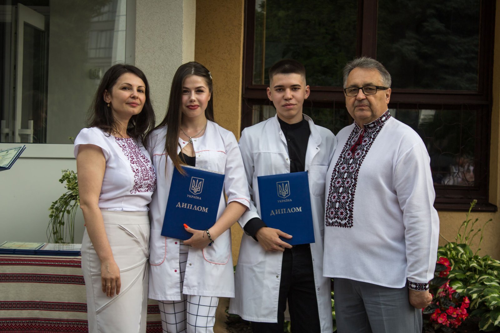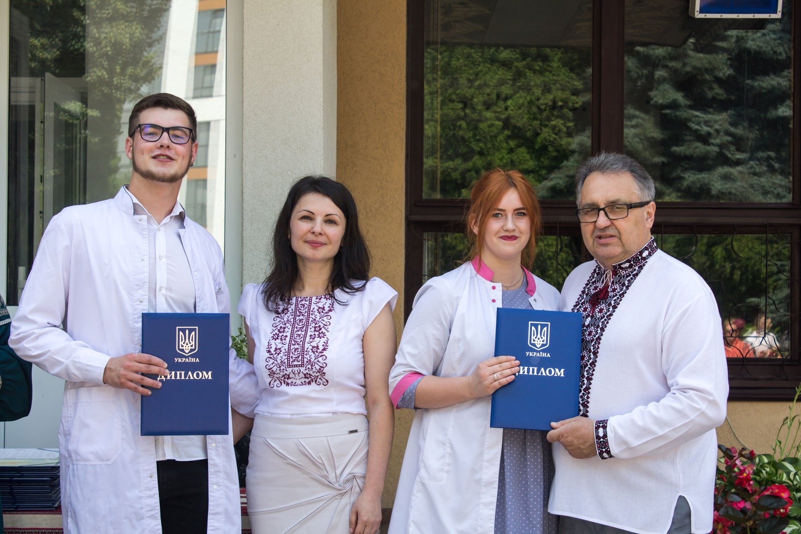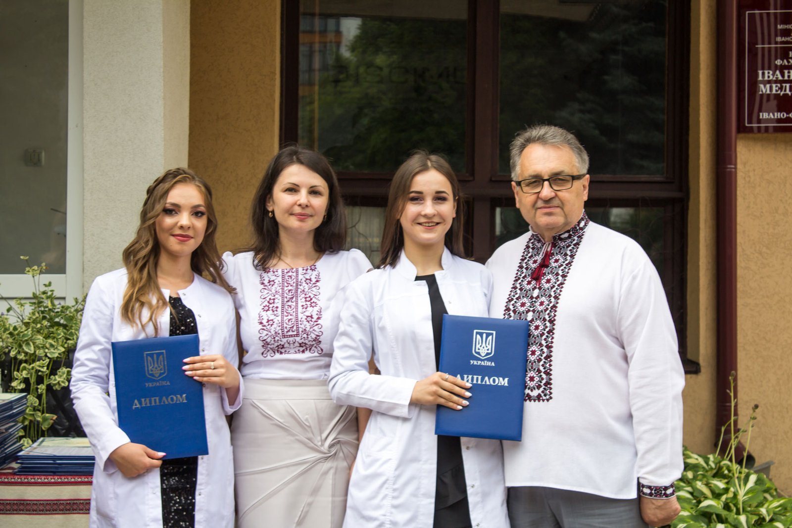 Згадували посвяту у першокурсники без двох місяців чотири роки тому – на подвір’ї перед навчальним корпусом і у білих халатах. Сьогодні на свято випускного теж зібралися не в залі і теж поверх ошатного вбрання одягли білі халати, як символ майбутньої професії. Це особливий день і для випускників, і для їхніх батьків, і для викладачів.