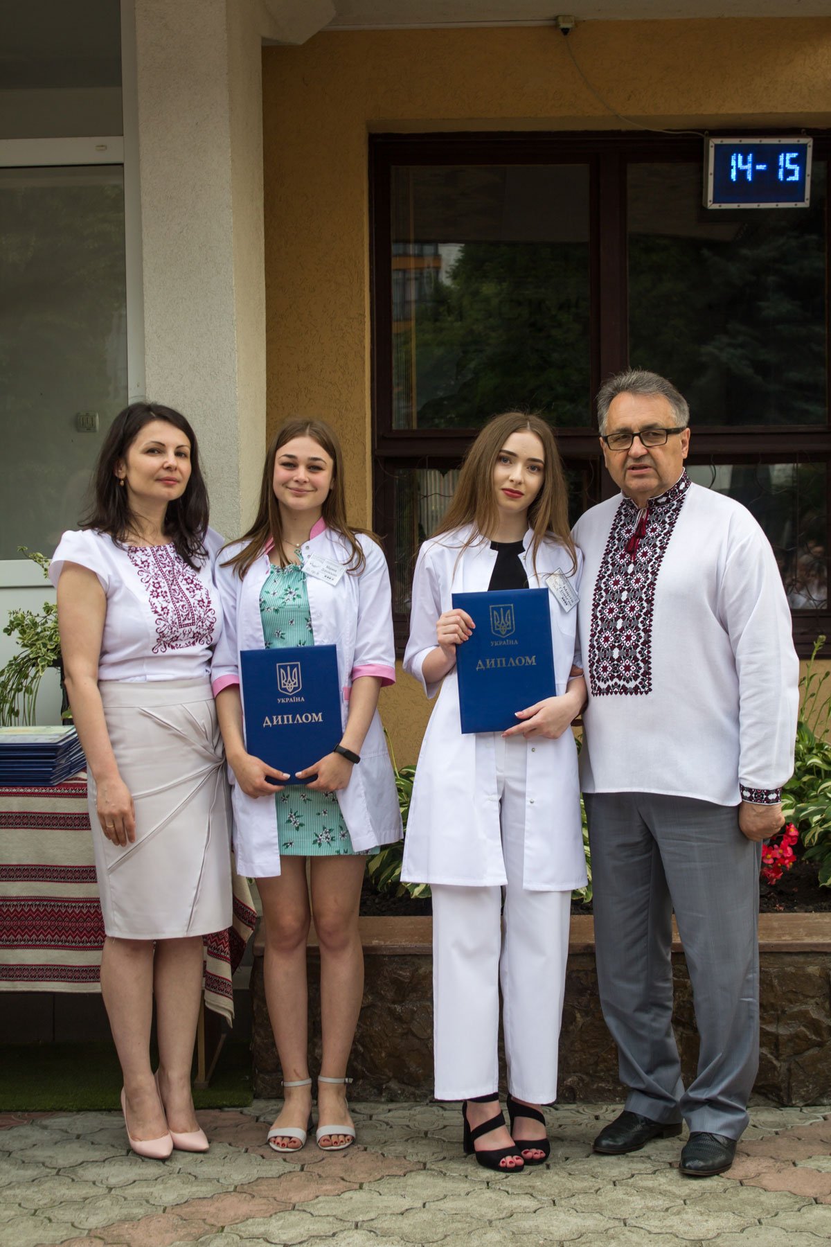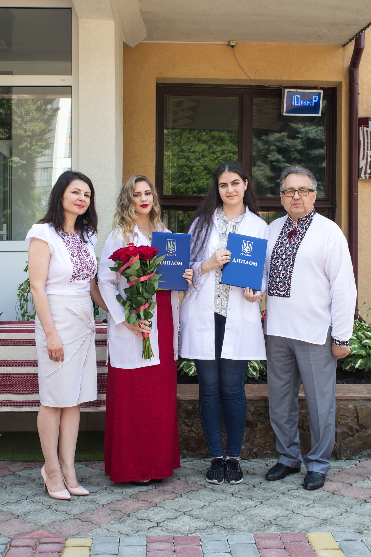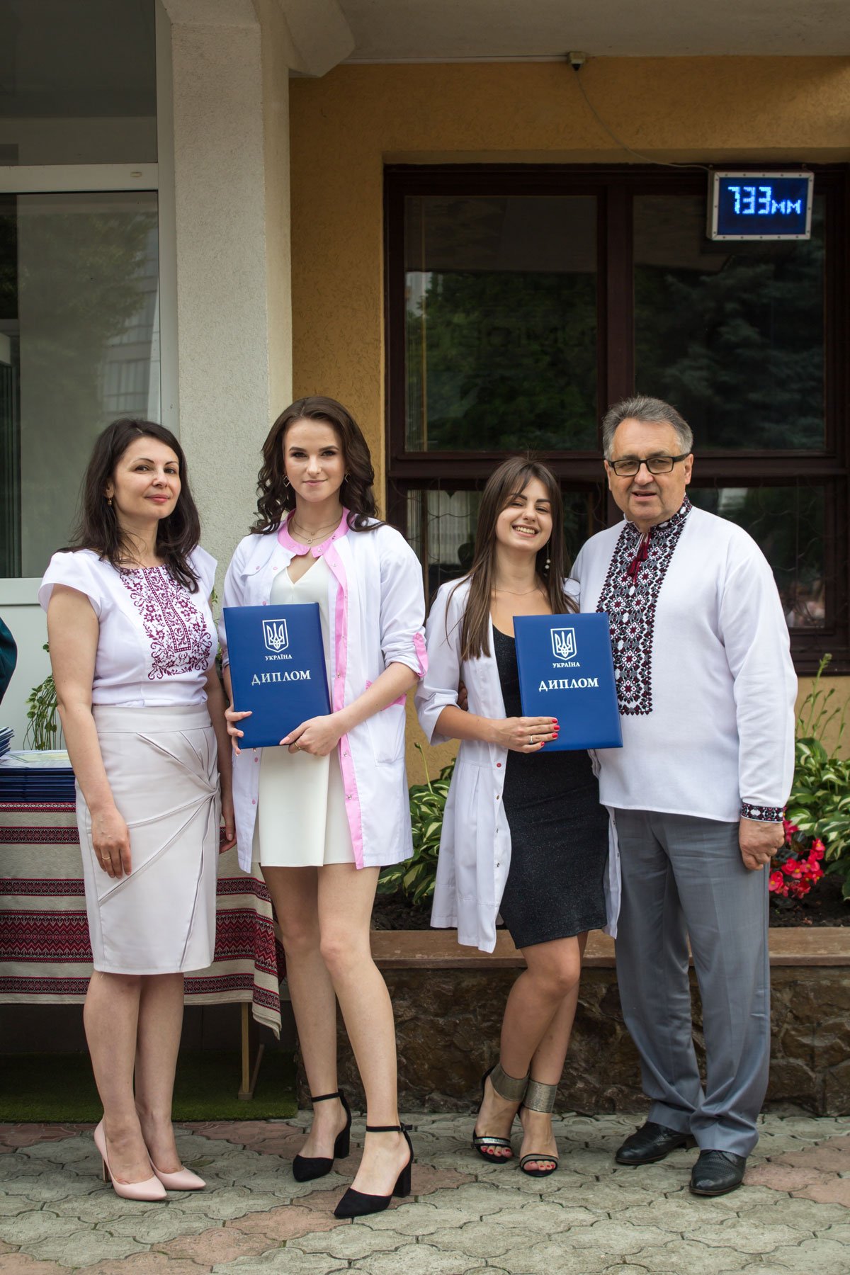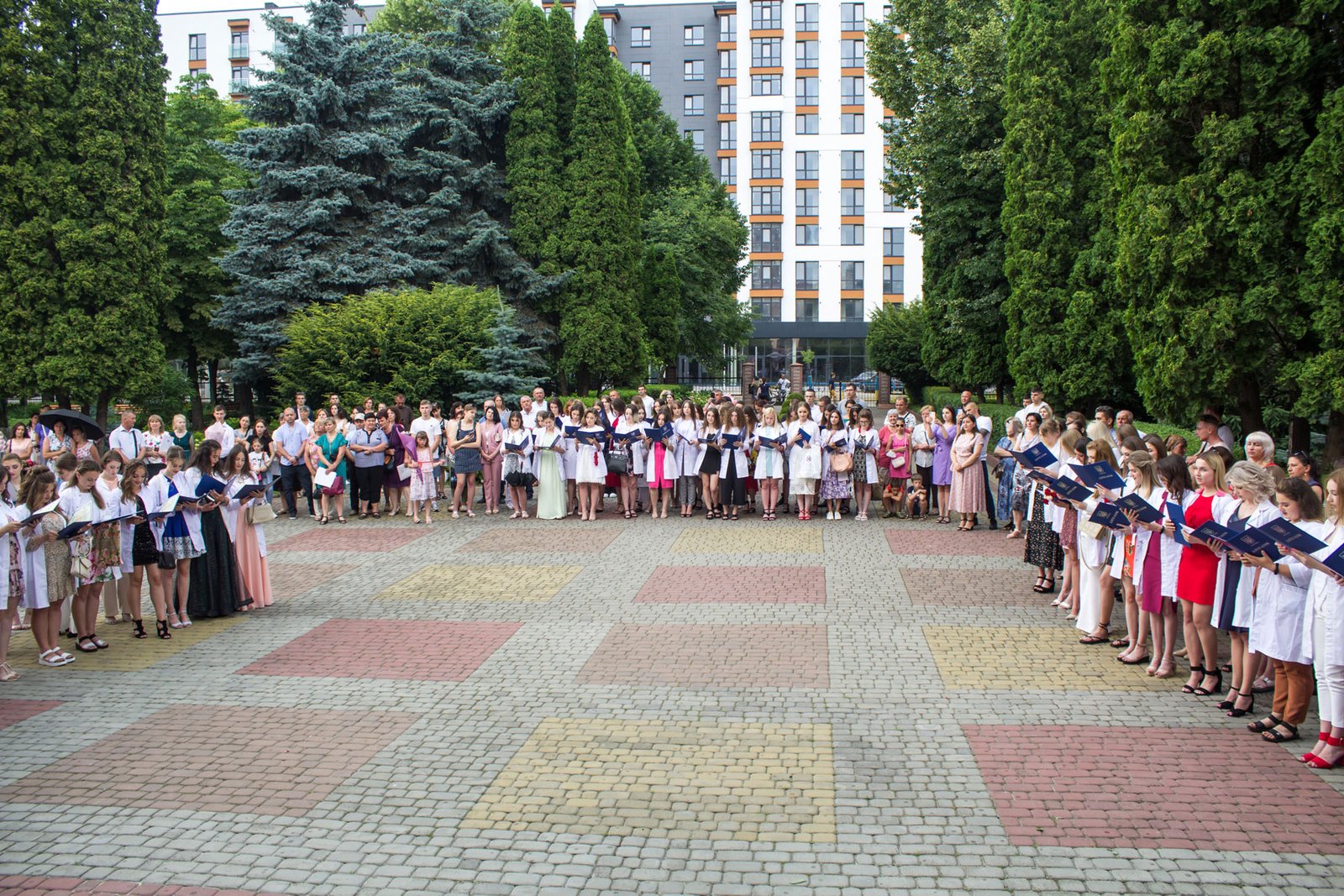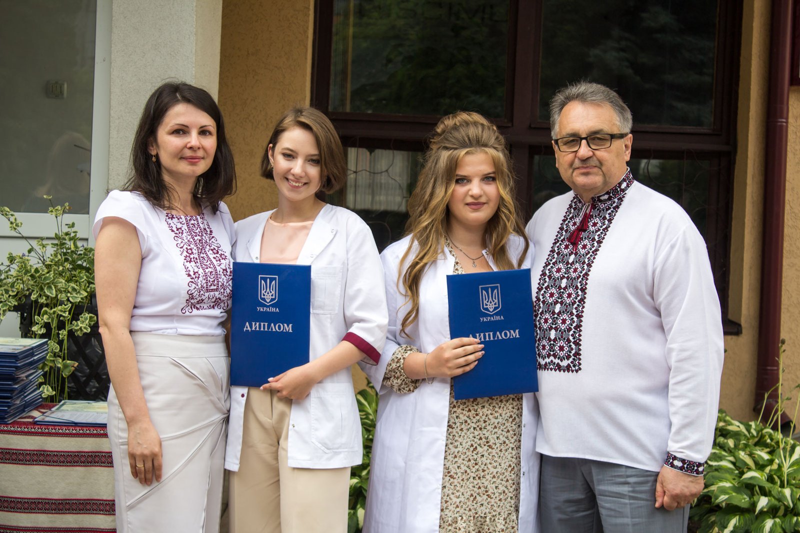 Згадували посвяту у першокурсники без двох місяців чотири роки тому – на подвір’ї перед навчальним корпусом і у білих халатах. Сьогодні на свято випускного теж зібралися не в залі і теж поверх ошатного вбрання одягли білі халати, як символ майбутньої професії. Це особливий день і для випускників, і для їхніх батьків, і для викладачів.