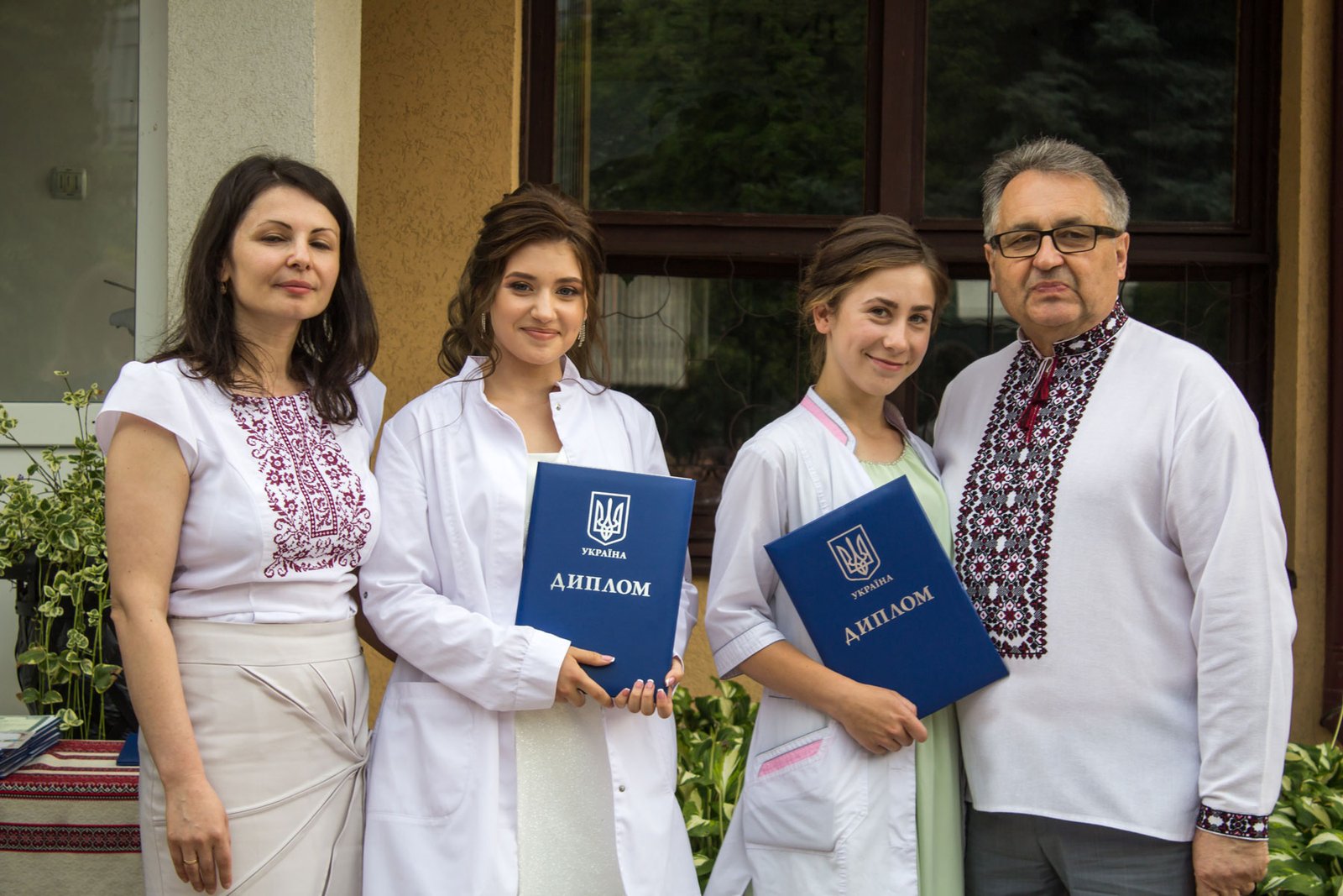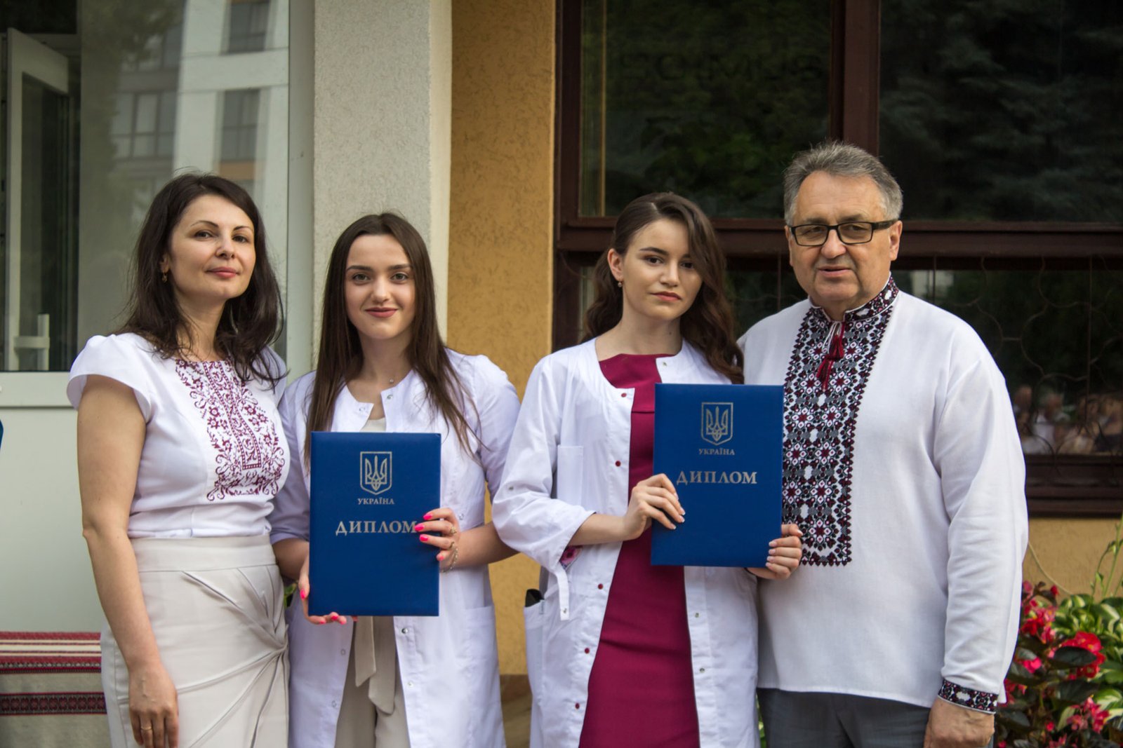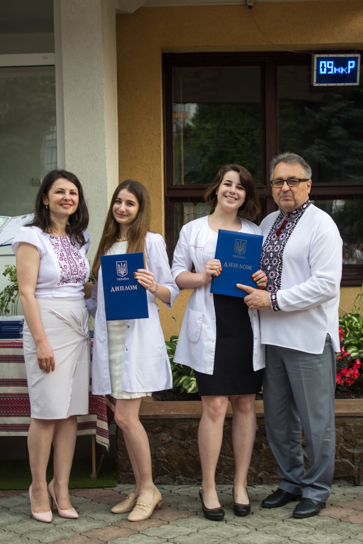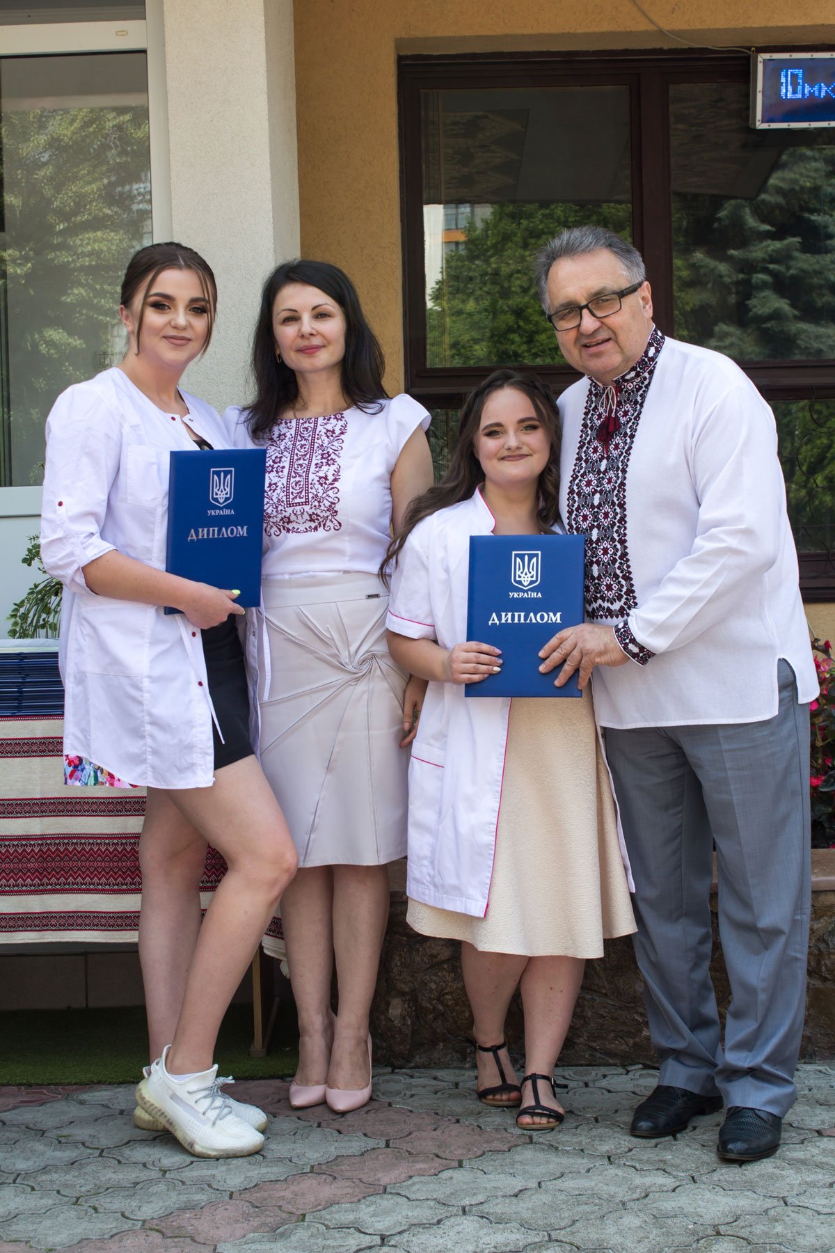Згадували посвяту у першокурсники без двох місяців чотири роки тому – на подвір’ї перед навчальним корпусом і у білих халатах. Сьогодні на свято випускного теж зібралися не в залі і теж поверх ошатного вбрання одягли білі халати, як символ майбутньої професії. Це особливий день і для випускників, і для їхніх батьків, і для викладачів.
