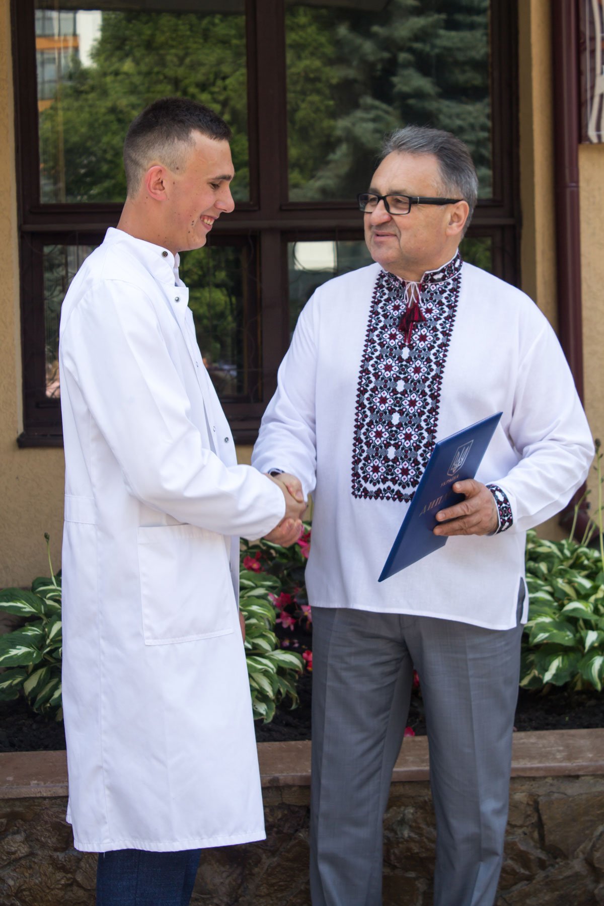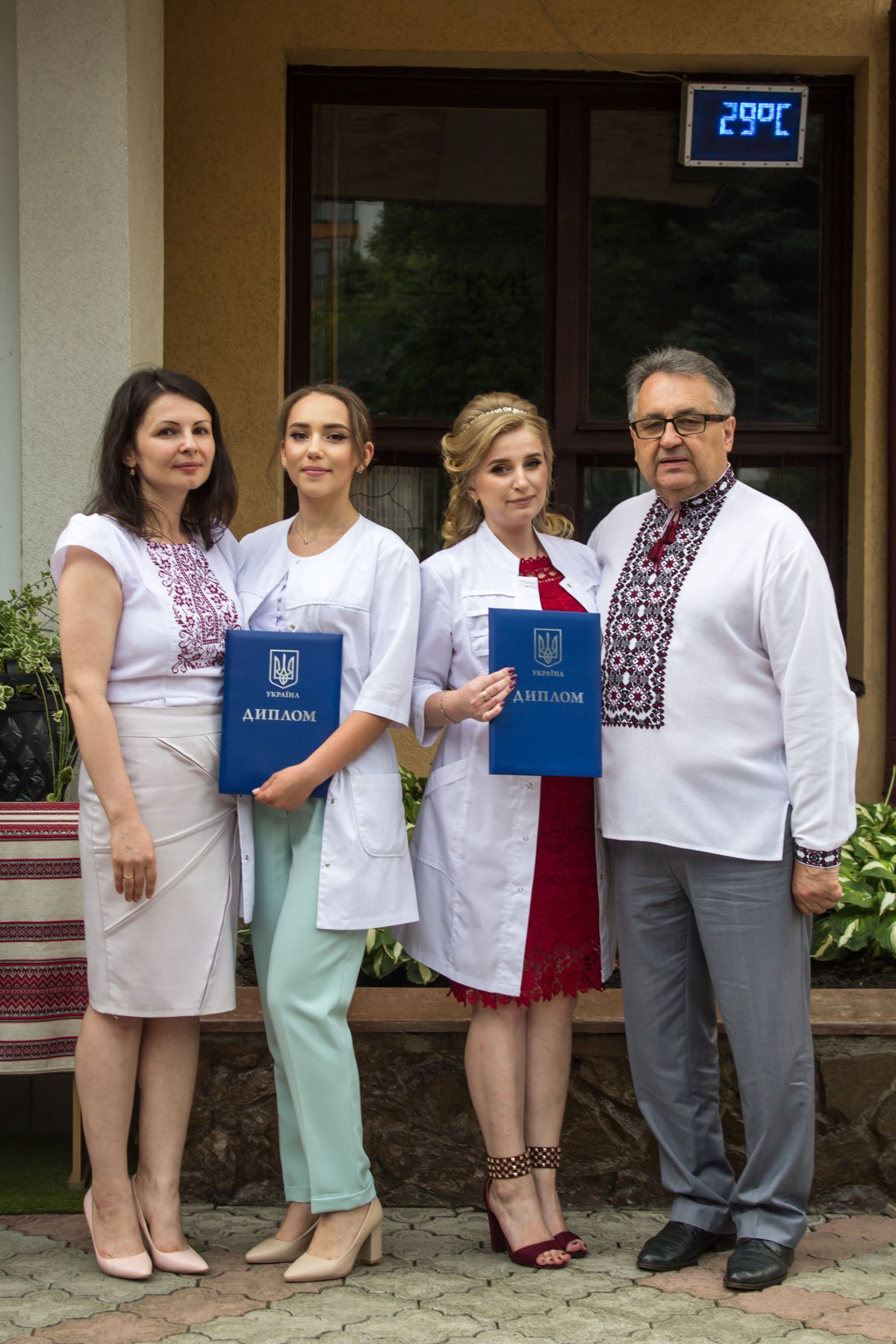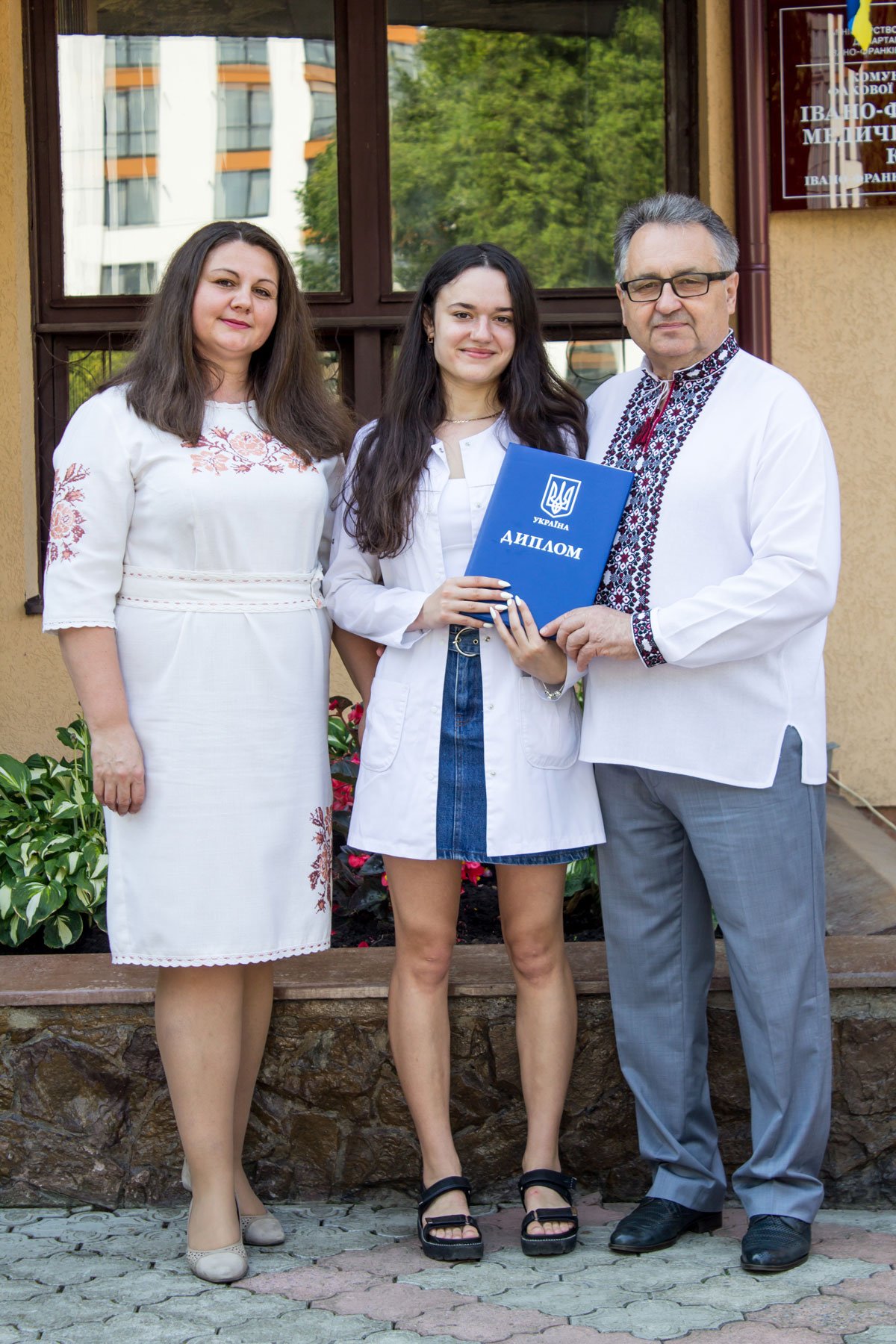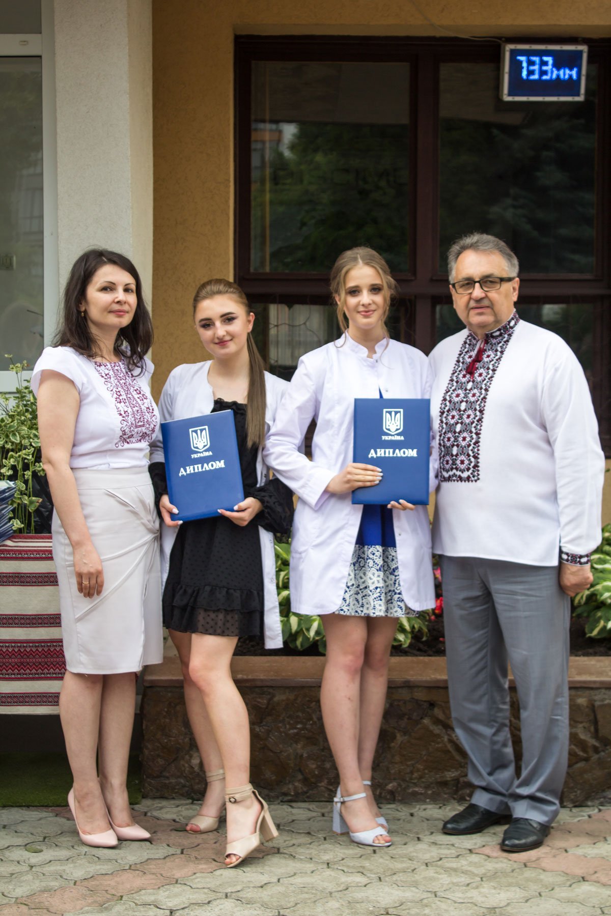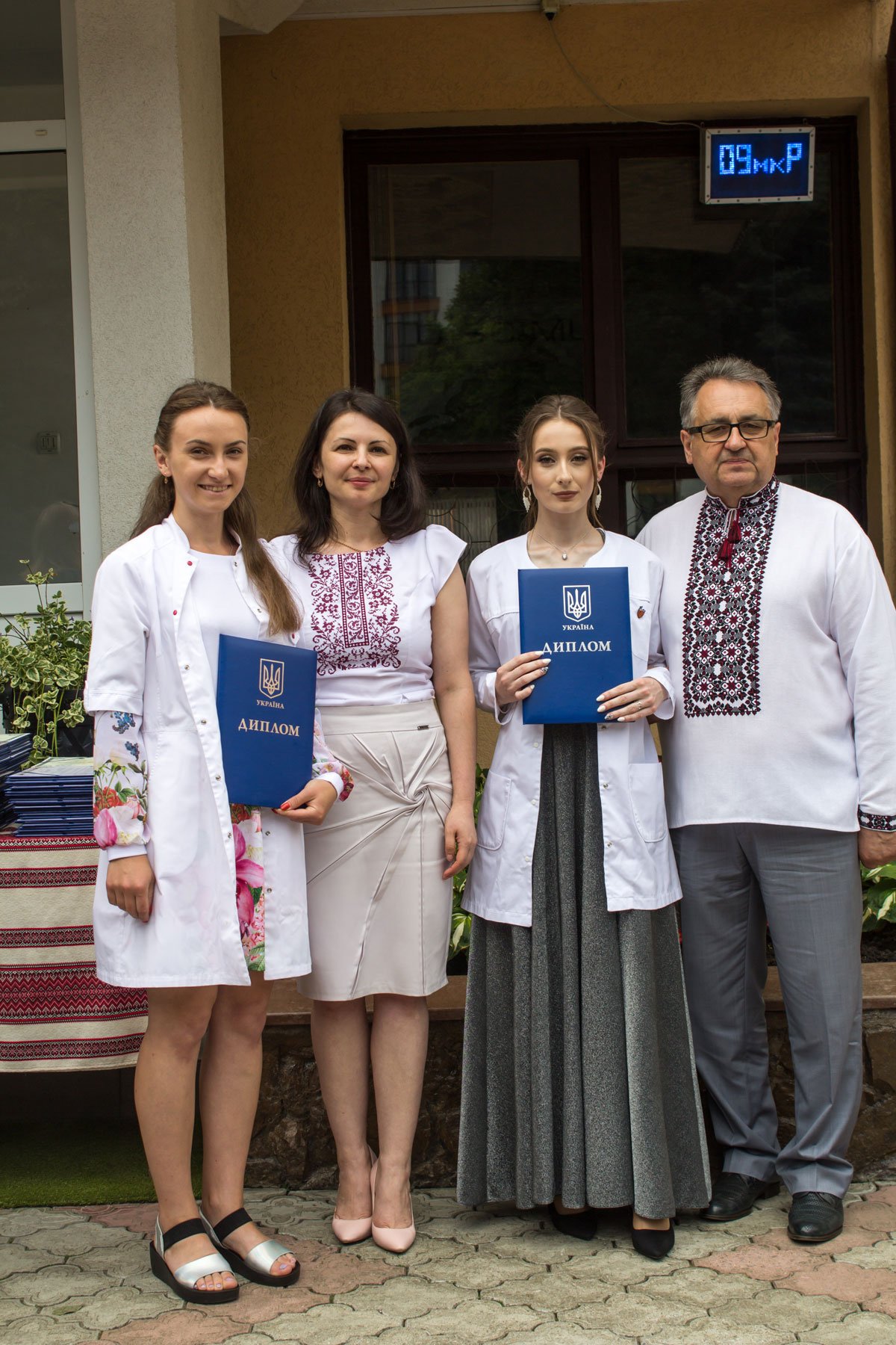 Згадували посвяту у першокурсники без двох місяців чотири роки тому – на подвір’ї перед навчальним корпусом і у білих халатах. Сьогодні на свято випускного теж зібралися не в залі і теж поверх ошатного вбрання одягли білі халати, як символ майбутньої професії. Це особливий день і для випускників, і для їхніх батьків, і для викладачів.